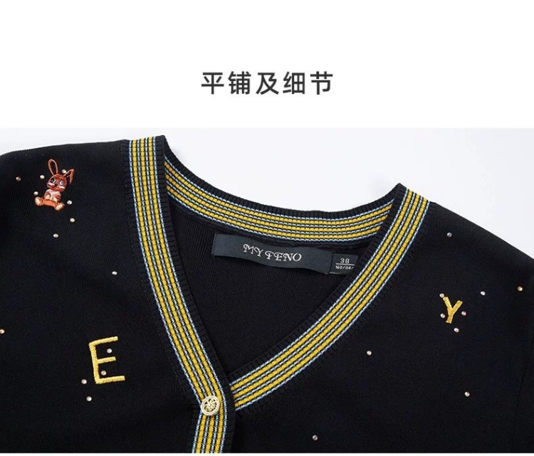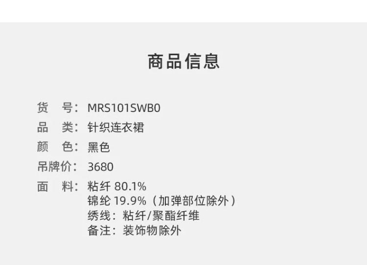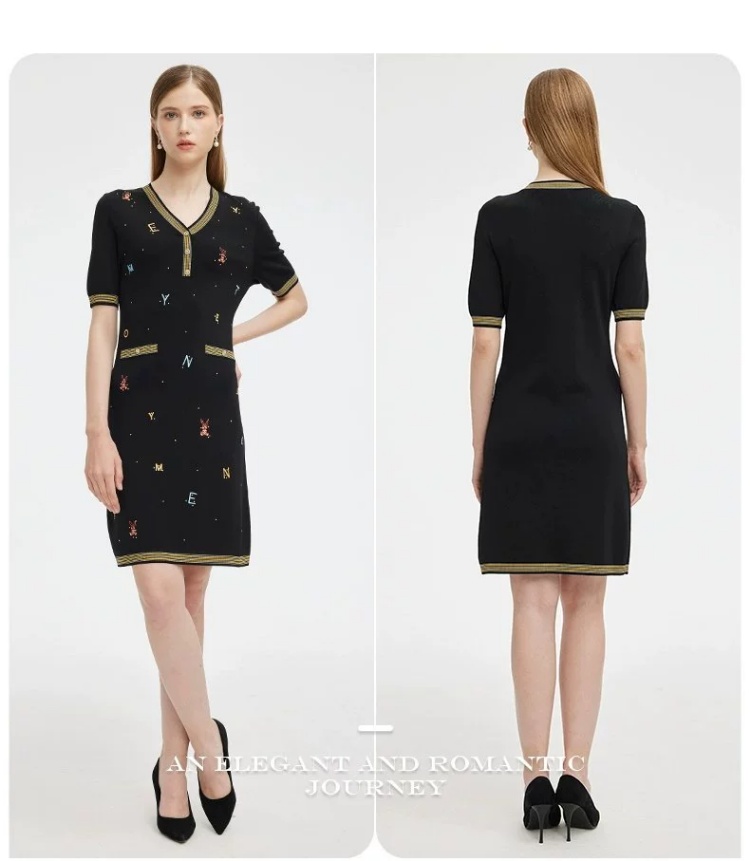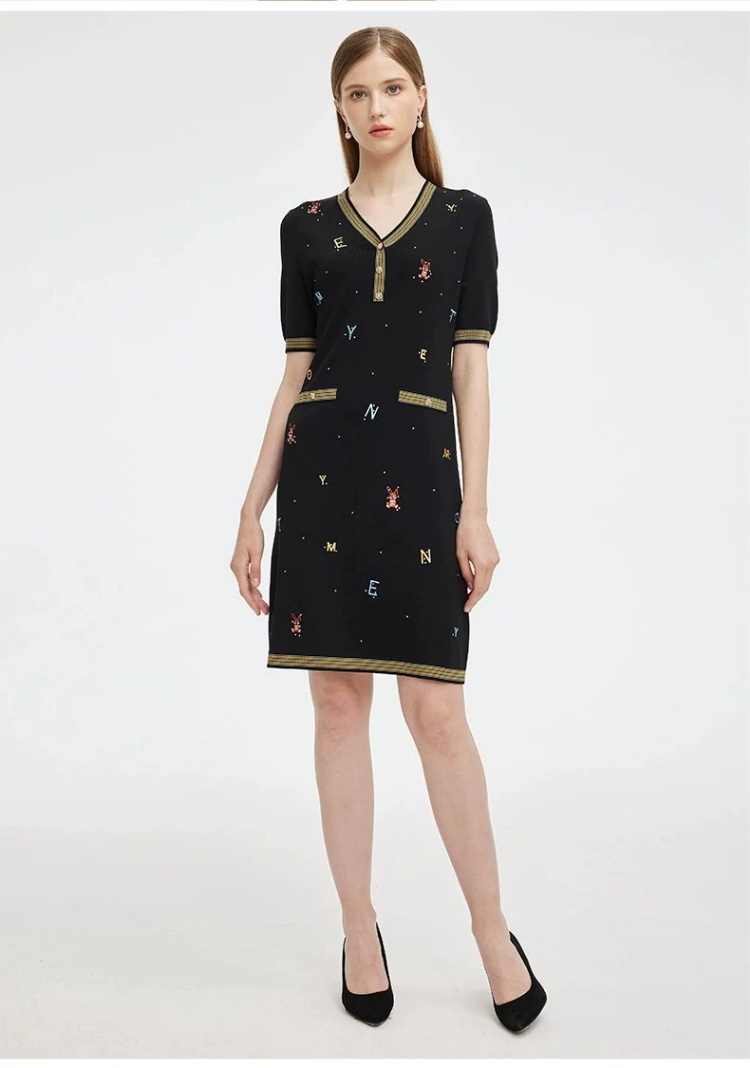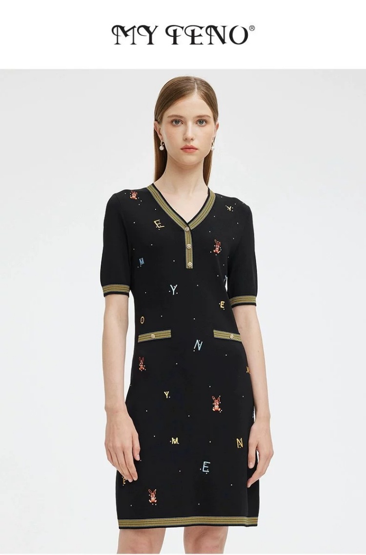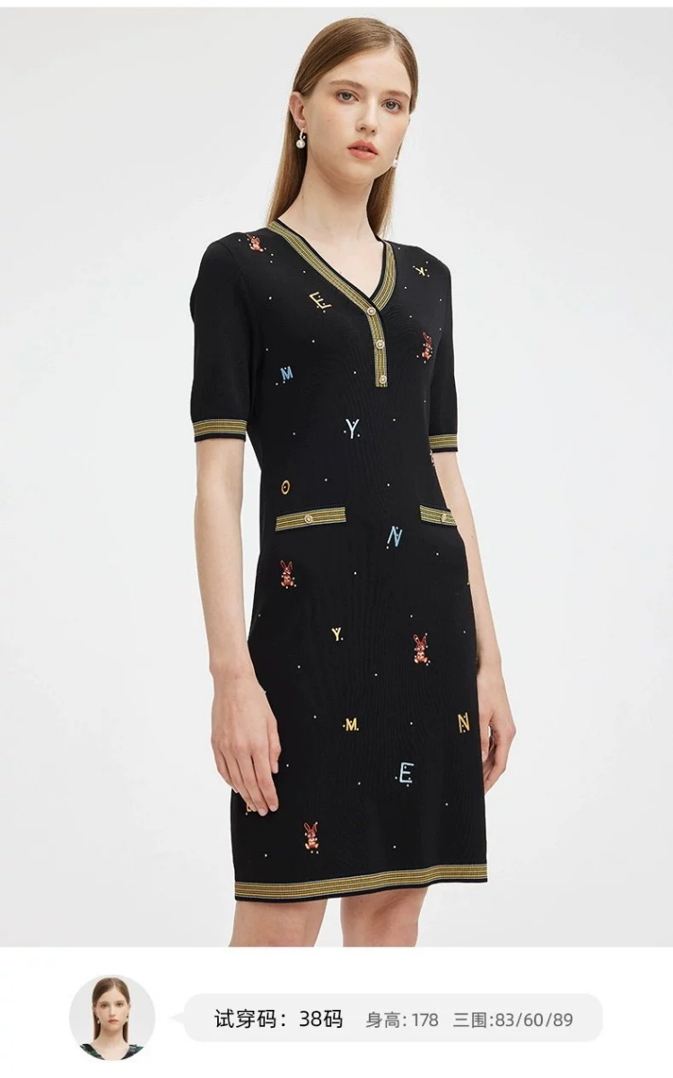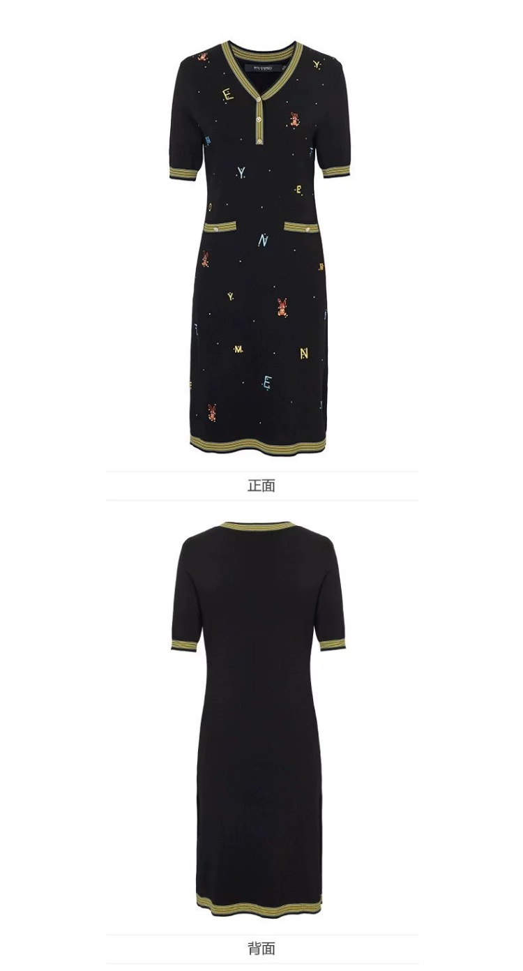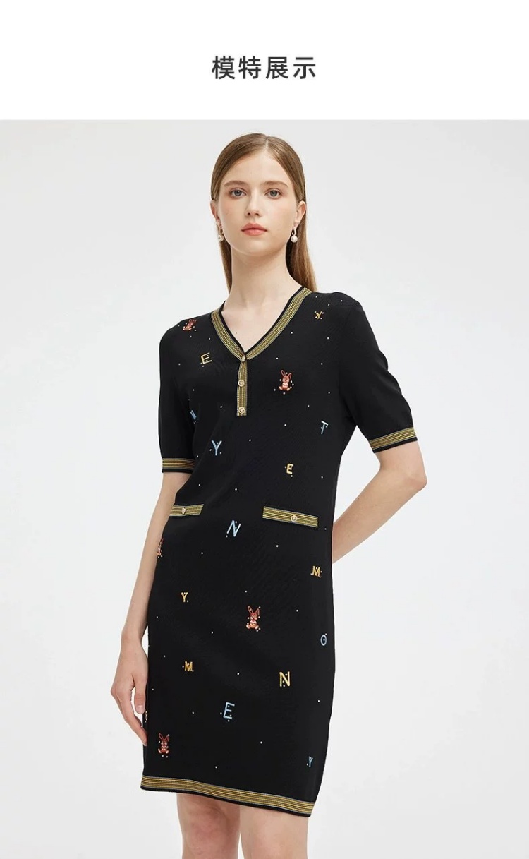 S1M1马天奴 黑色刺绣针织裙V领连衣裙MRS101SWB0