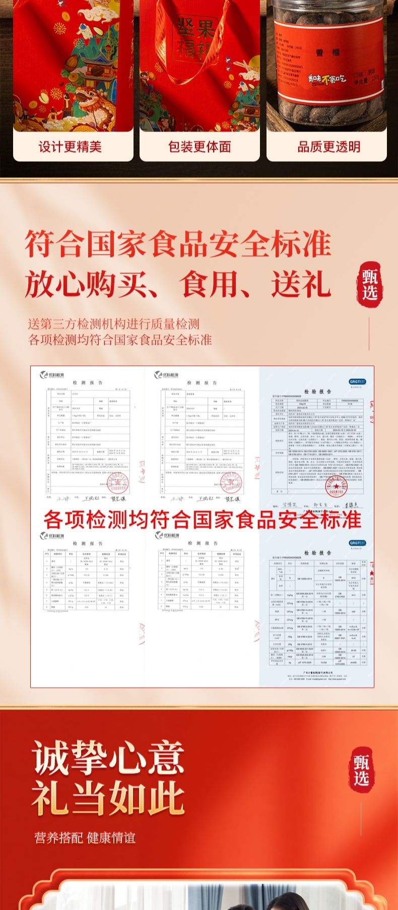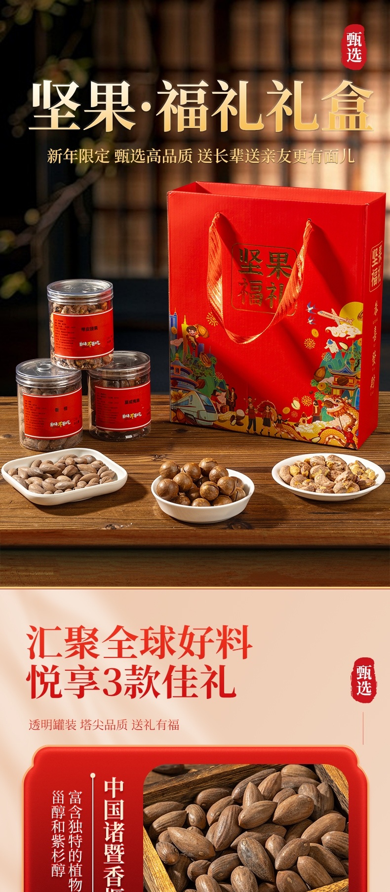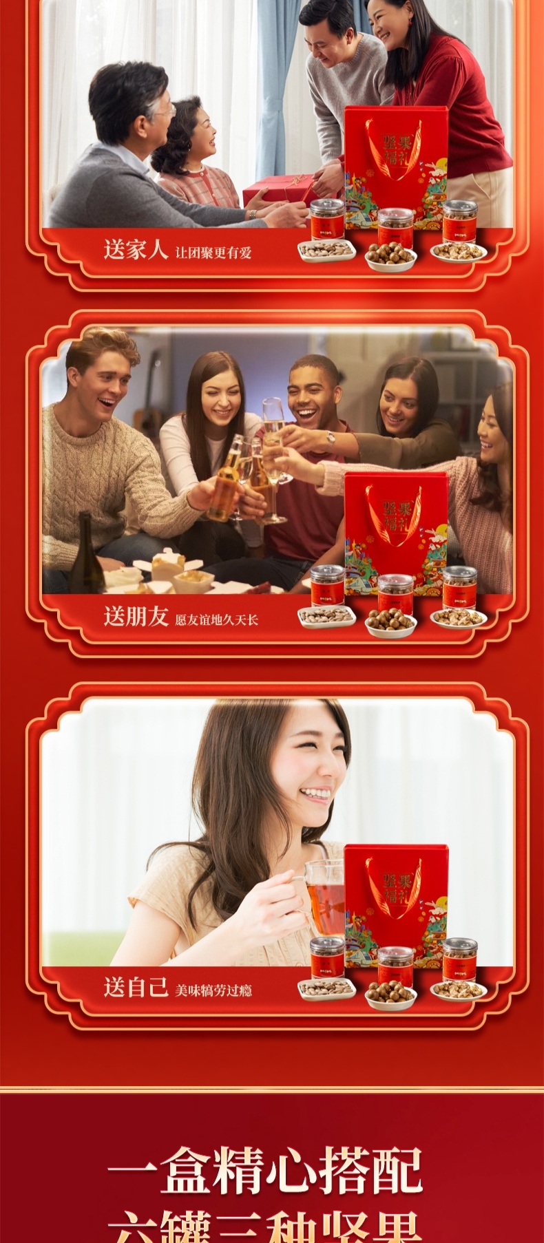 璟小棠 坚果【夏威夷果+腰果+香榧】中国红主题包装,真空密封罐装设计,采用当季鲜采,坚持手工筛选,剔除坏果,权威检测,安心保障