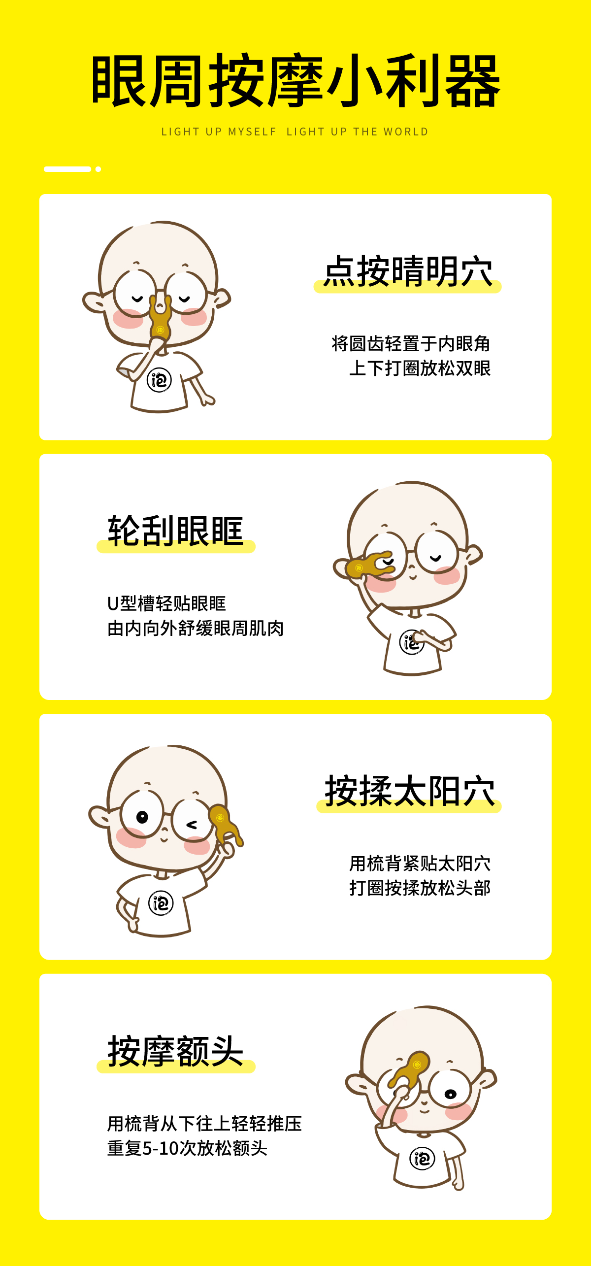 【晚安小灯泡眼周按摩小青蛙 护眼利器】实木按摩梳 贴合眼周/提拉下颌/按摩肩颈