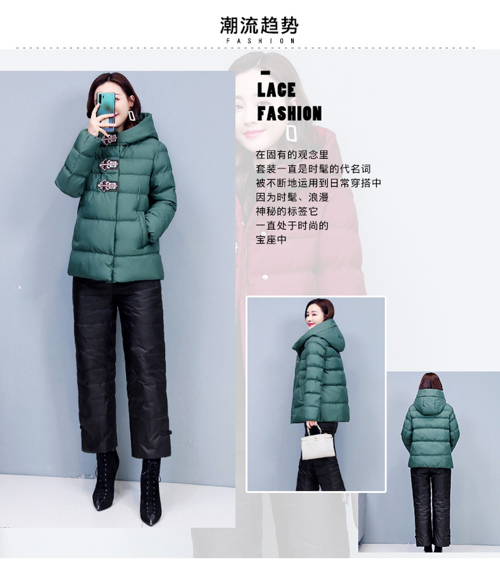WZNH-ASG2067时尚气质保暖连帽修身羽绒棉棉衣两件套