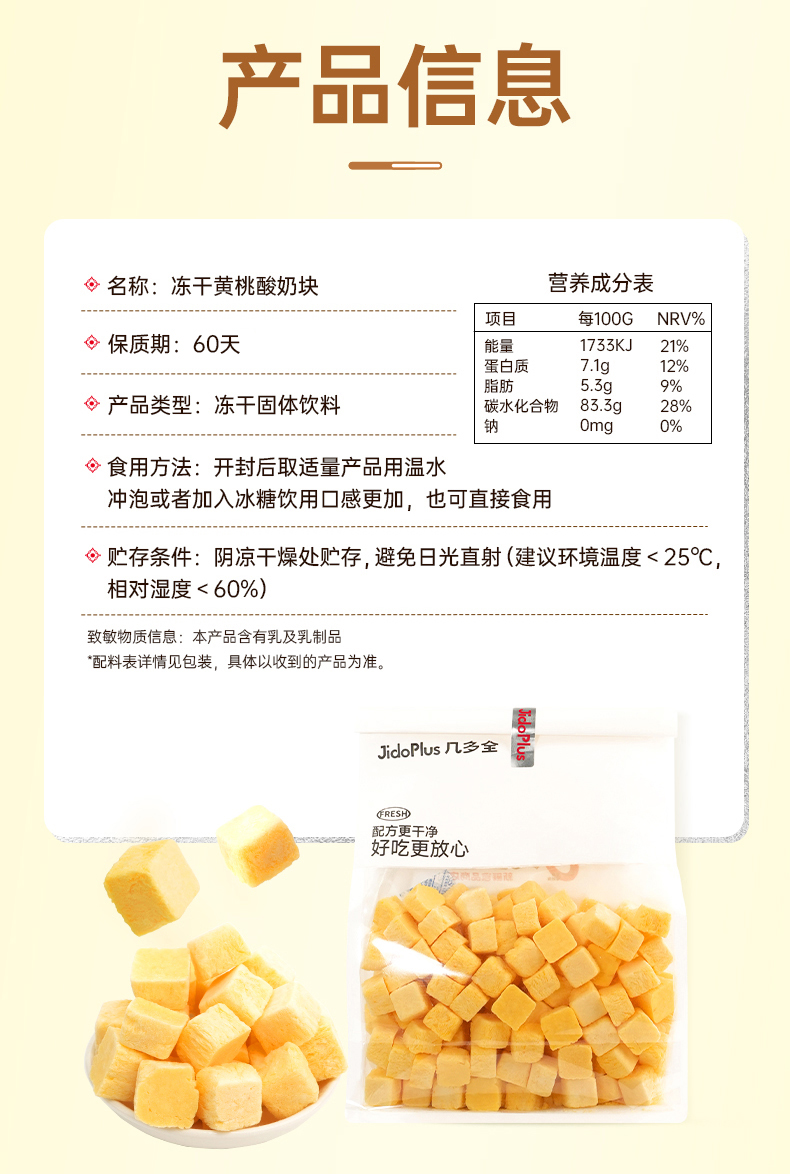 【鲜食】黄桃酸奶块 250g