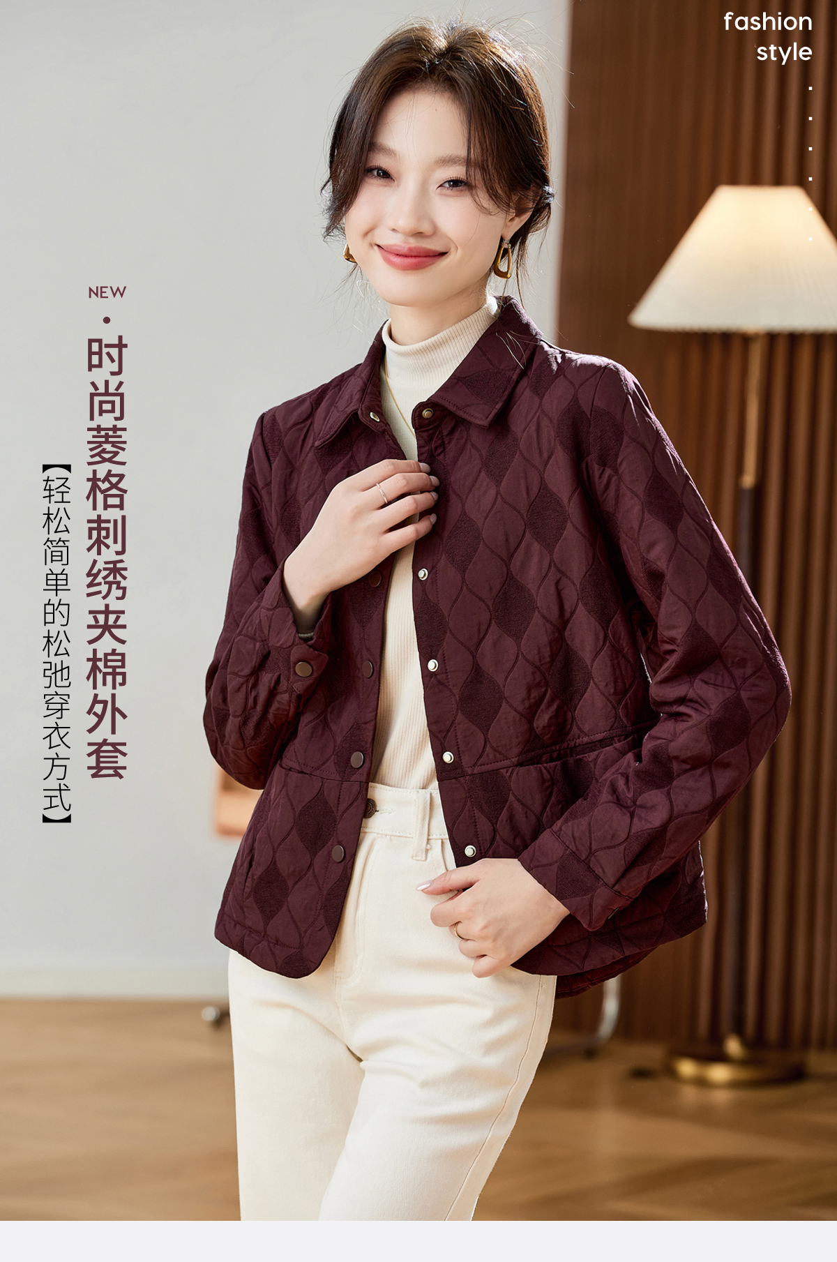 夹棉菱格外套,短款小香风洋气减龄轻薄小棉袄HR-JYJ25103