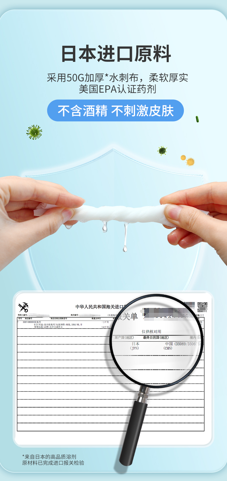 【产品信息】尺寸:140*190mm,原料成分: 无纺布