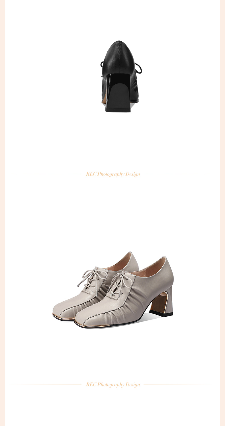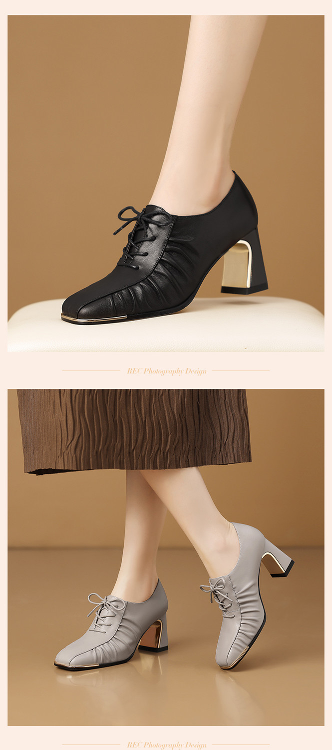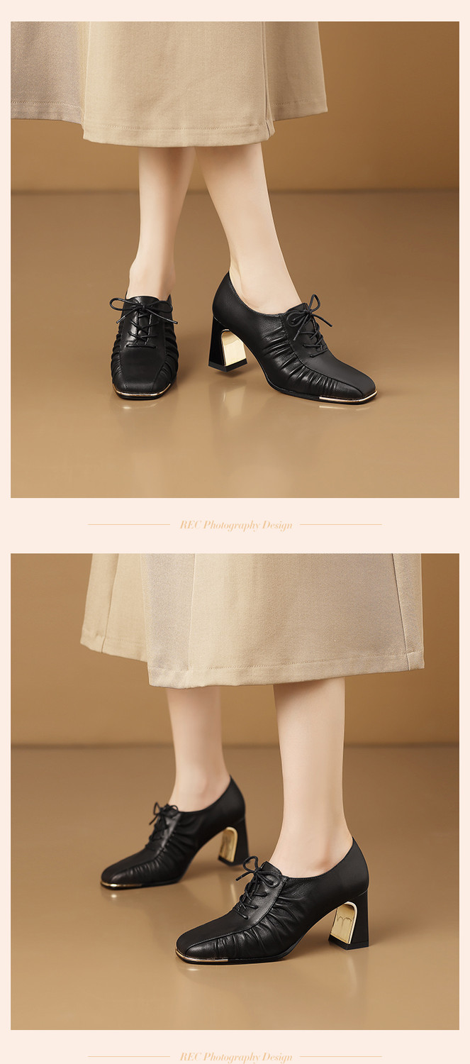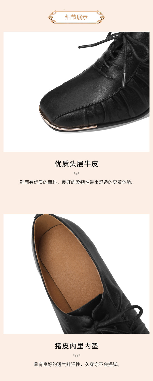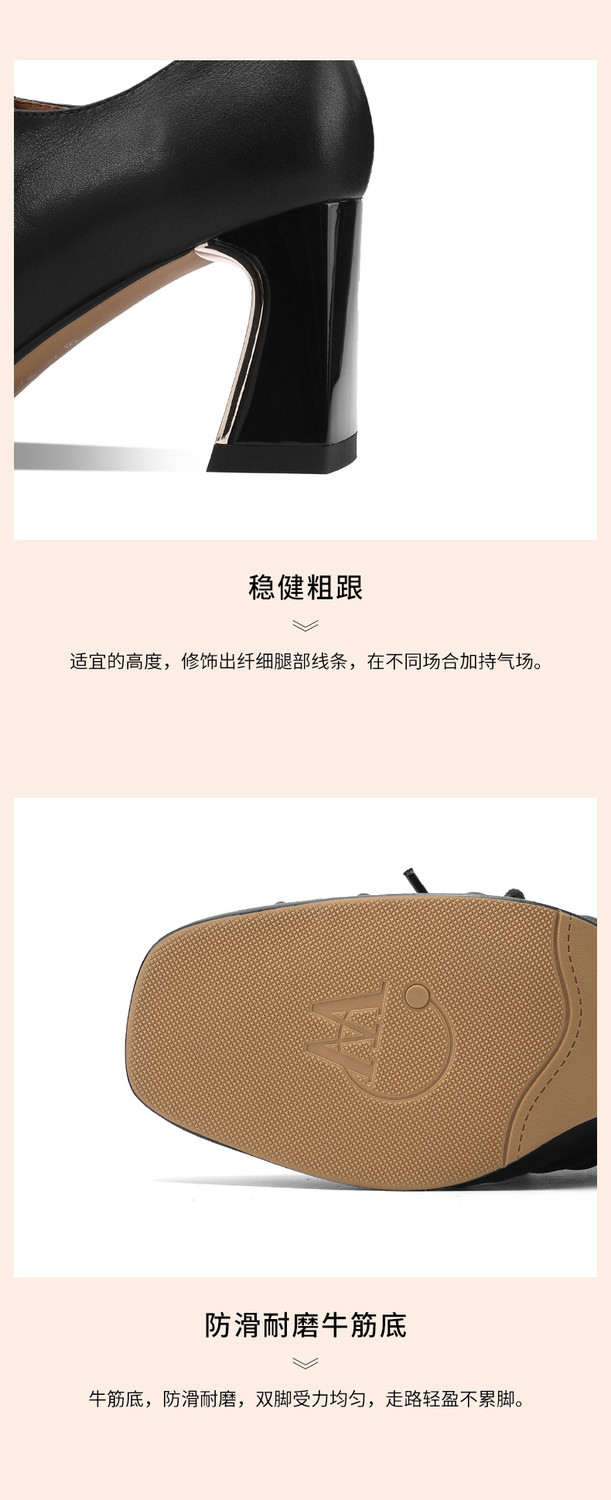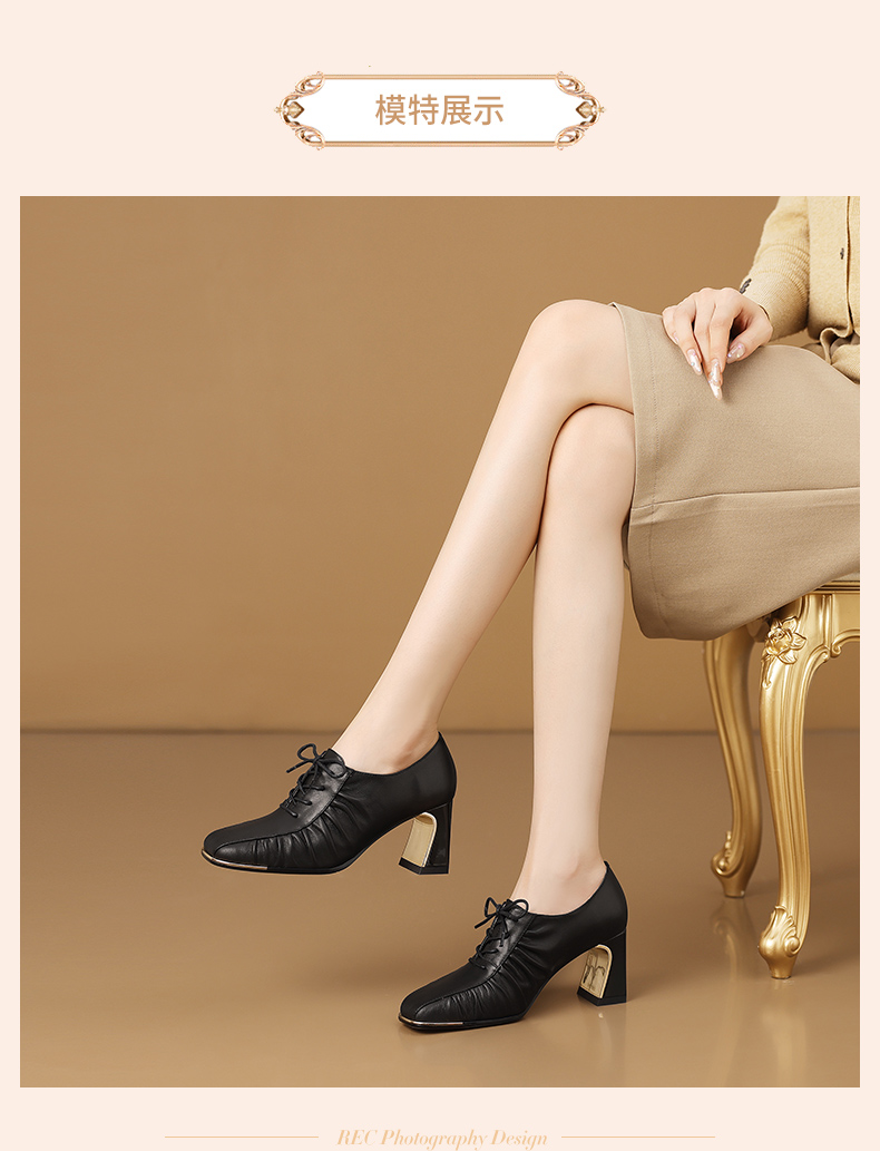 【预售5天】复古英伦系带真皮粗跟深口单鞋女春秋新款方头高跟鞋女HY&H3726