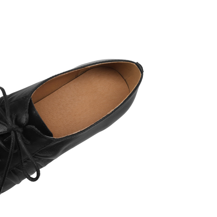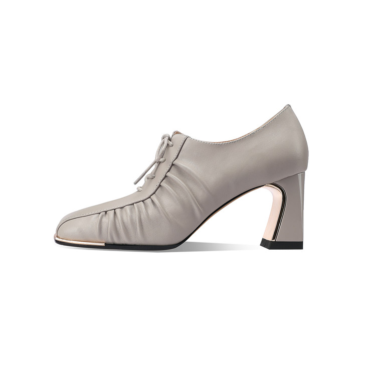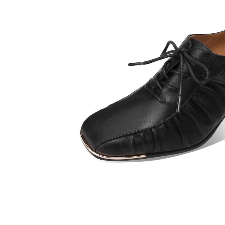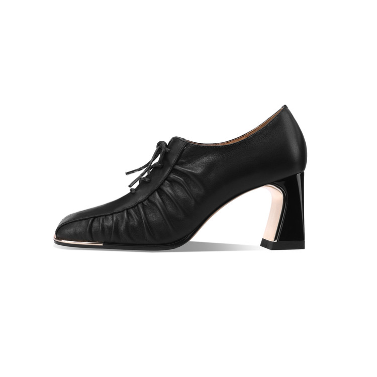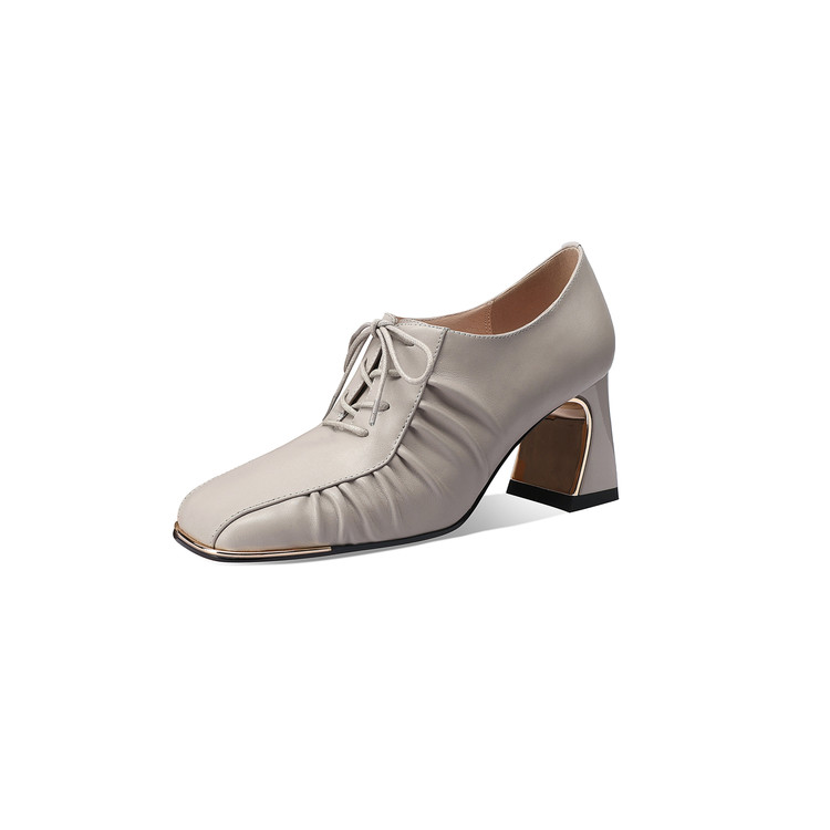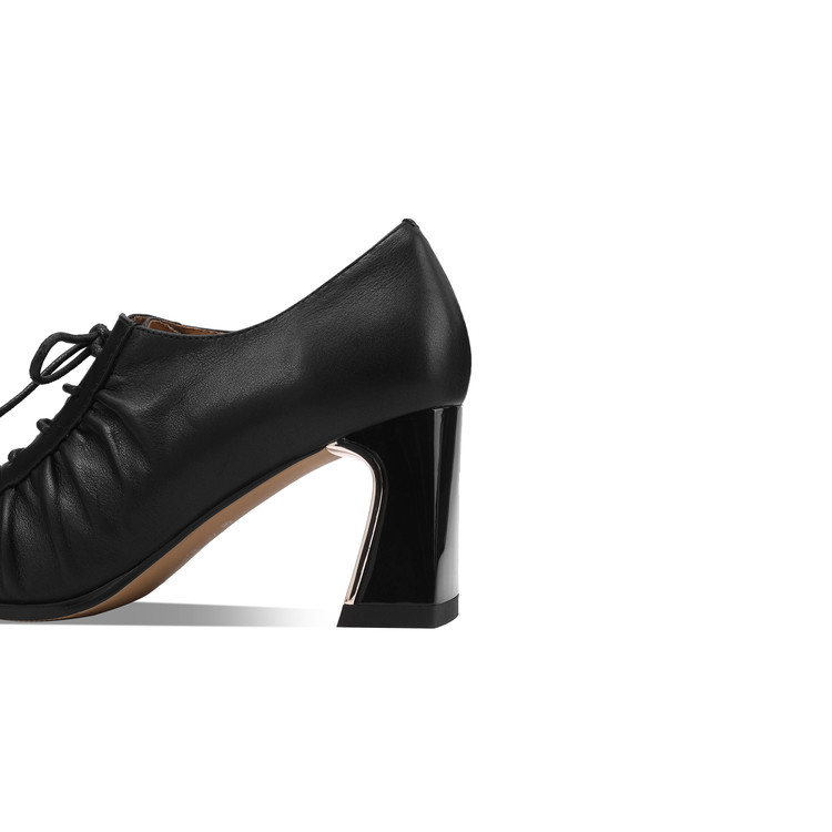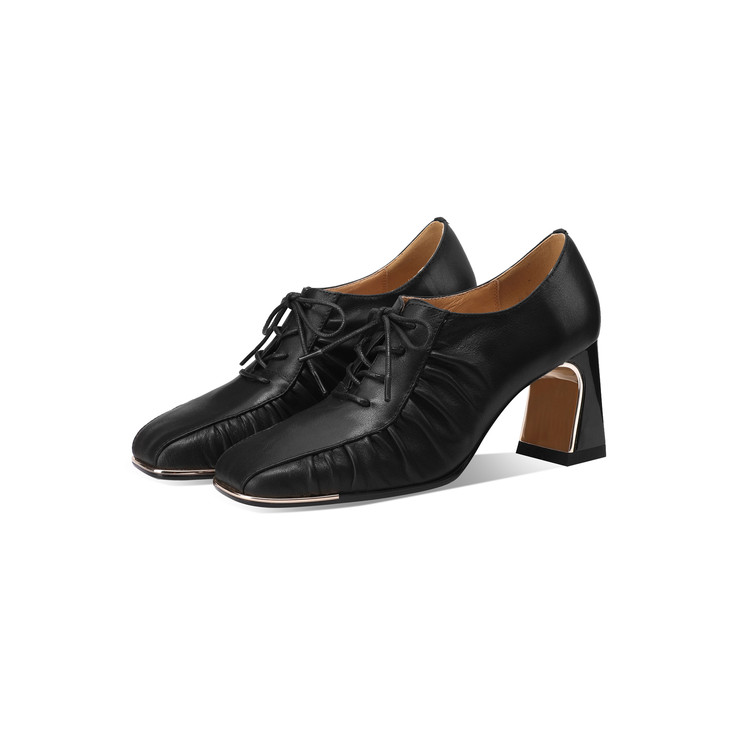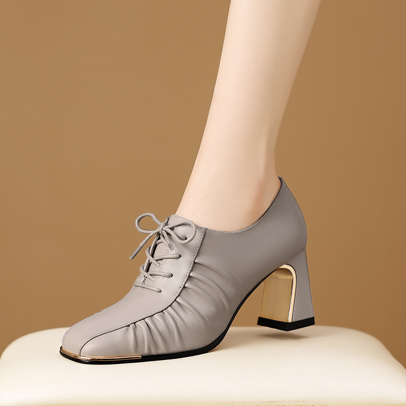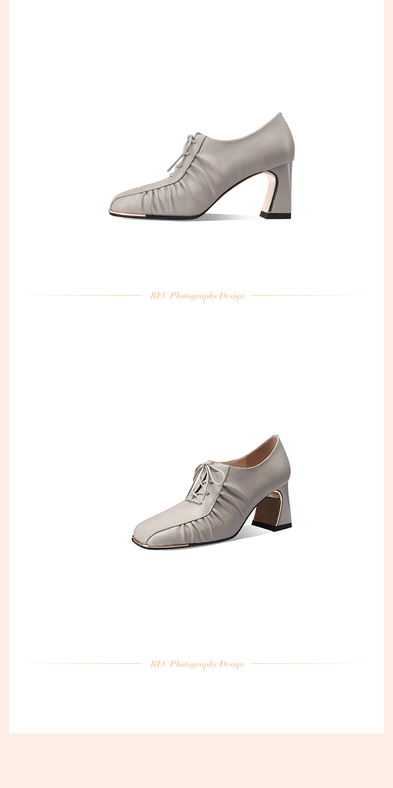 【预售5天】复古英伦系带真皮粗跟深口单鞋女春秋新款方头高跟鞋女HY&H3726