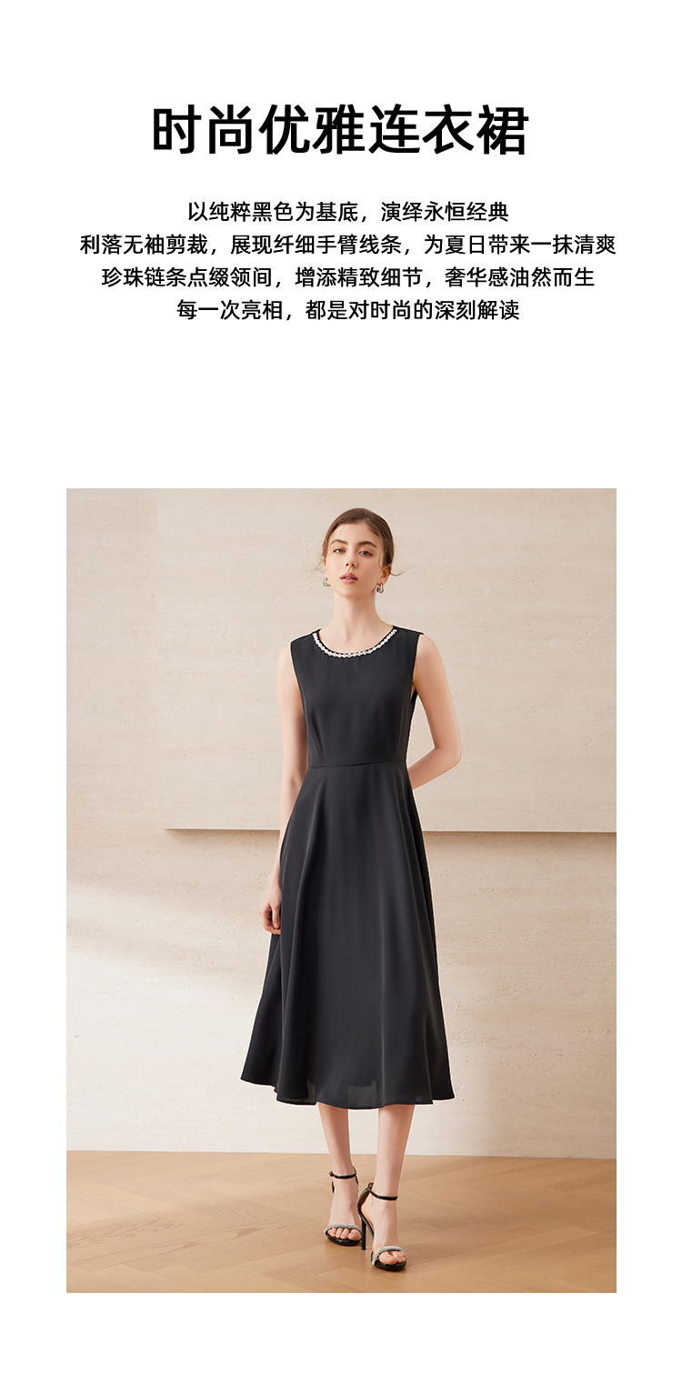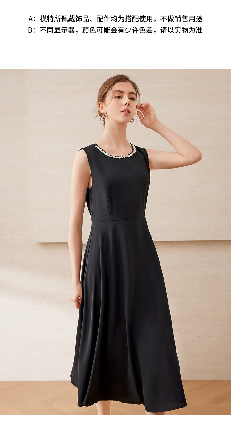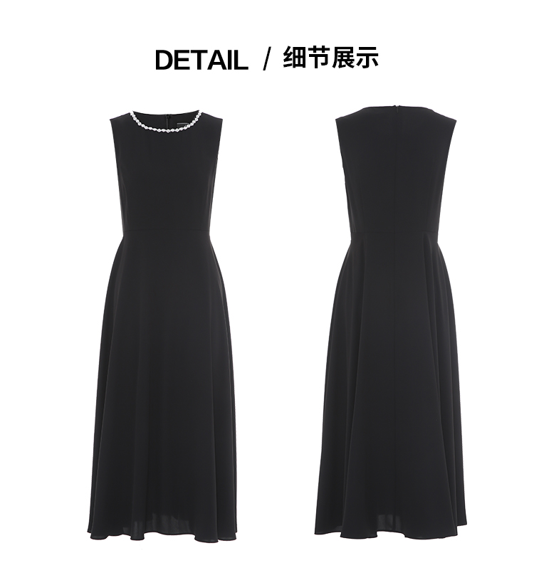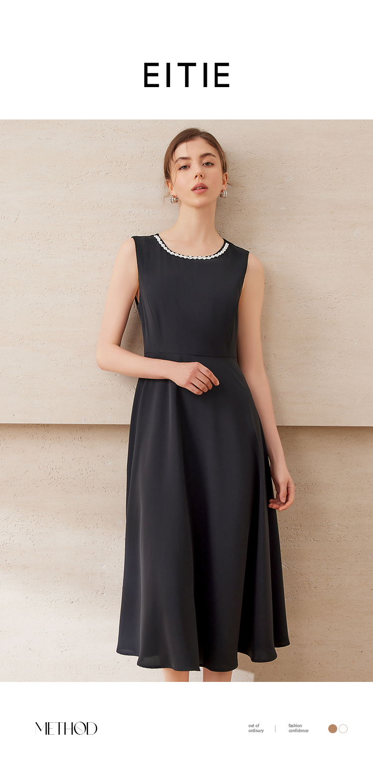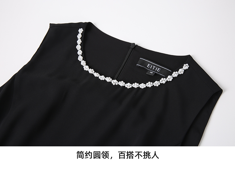 EITIE爱特爱轻礼服钉珠圆领无袖收腰大裙摆黑色连衣裙2025夏新款B2507618