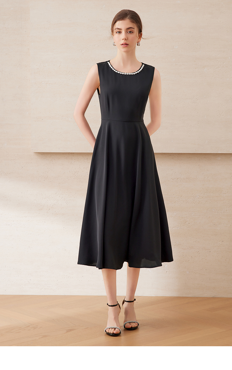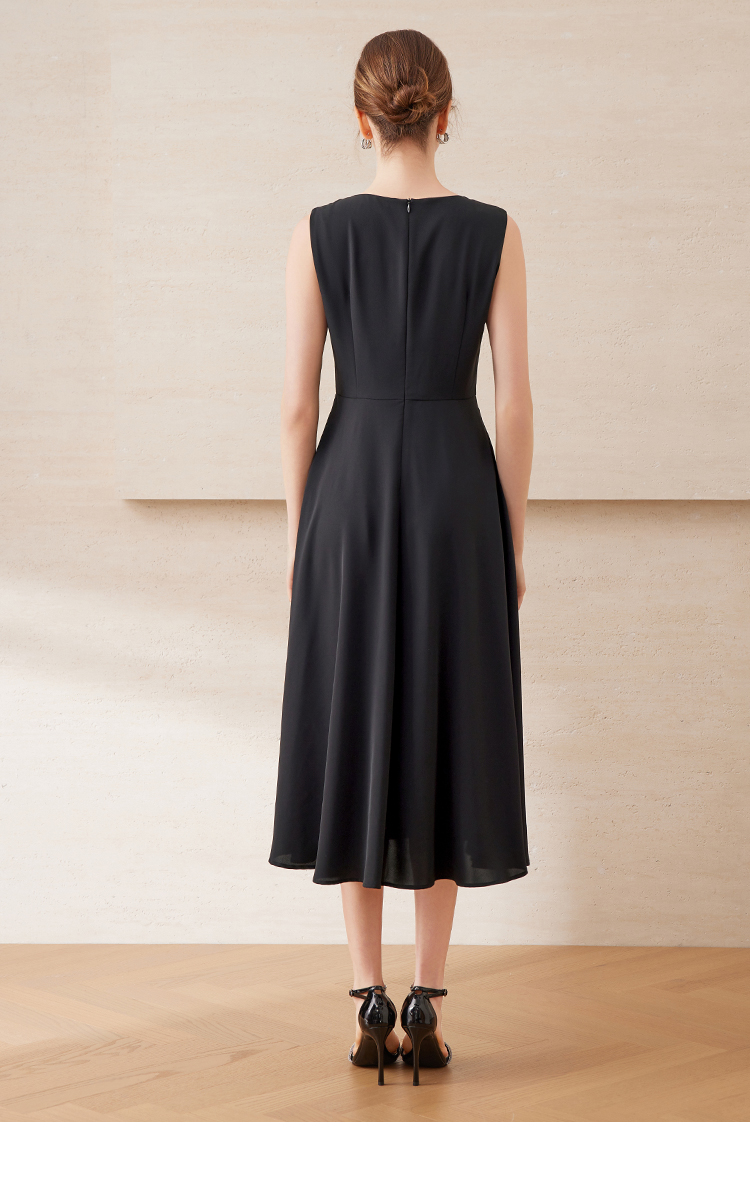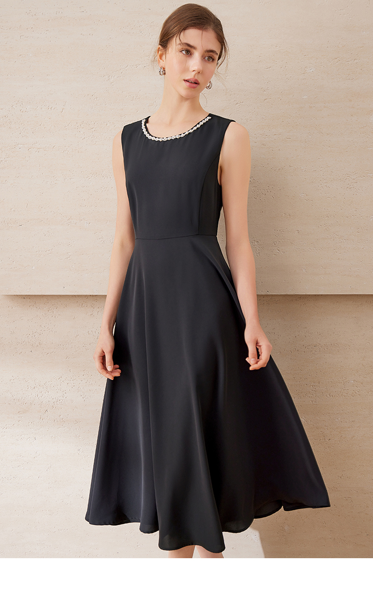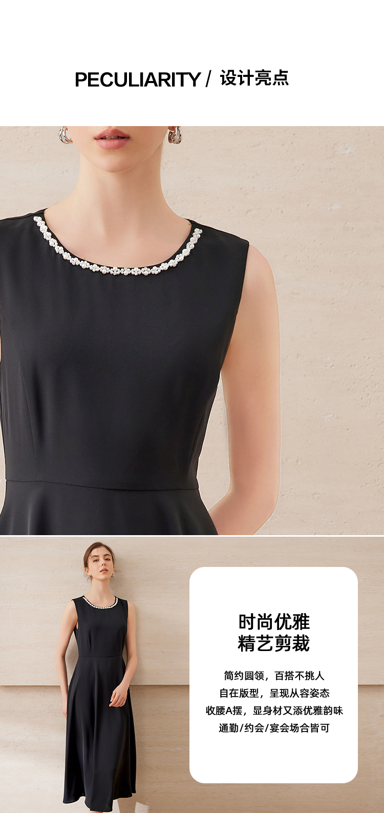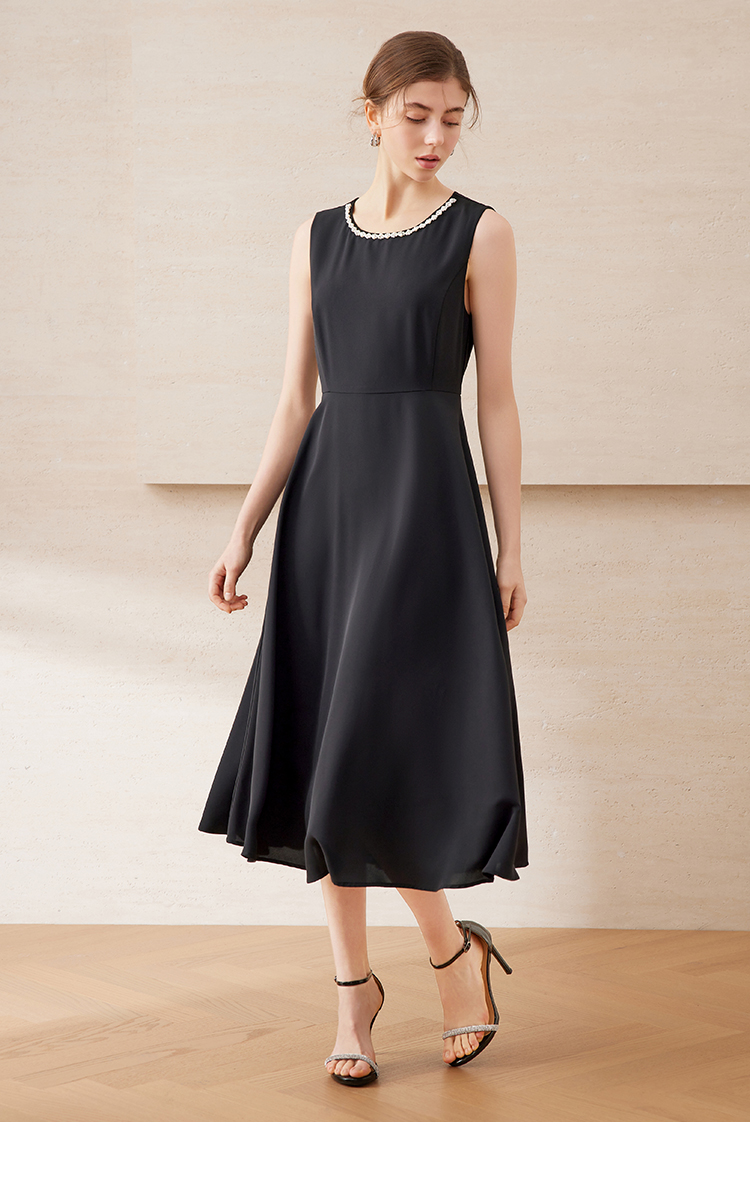 EITIE爱特爱轻礼服钉珠圆领无袖收腰大裙摆黑色连衣裙2025夏新款B2507618
