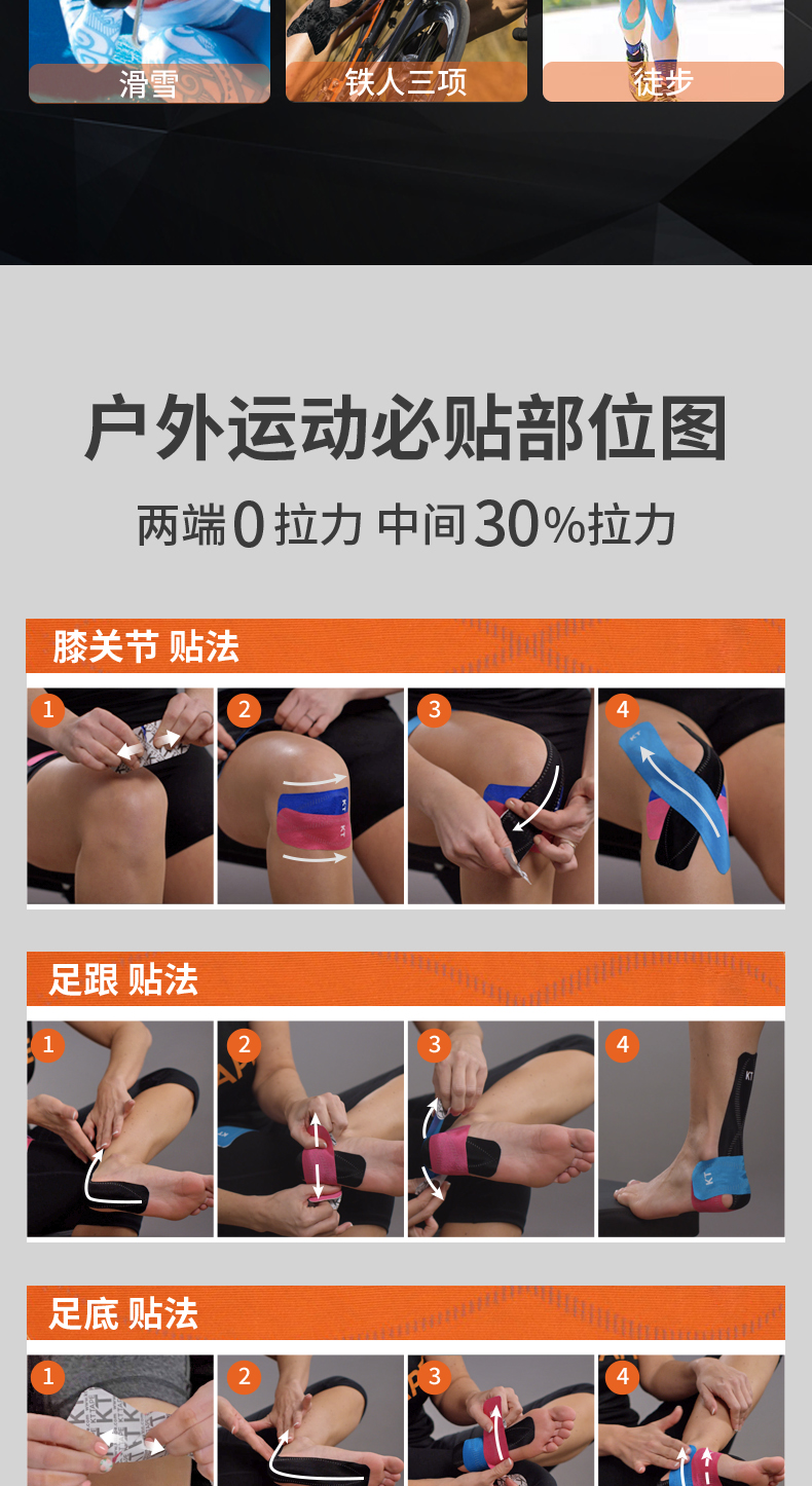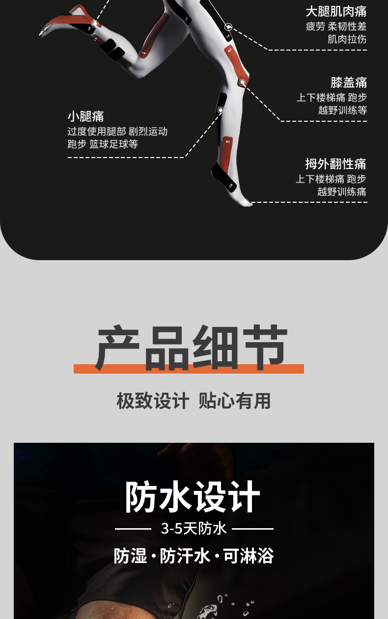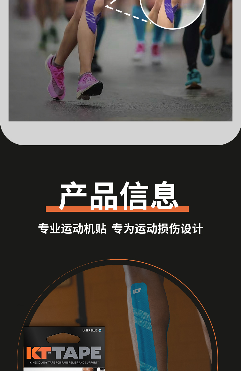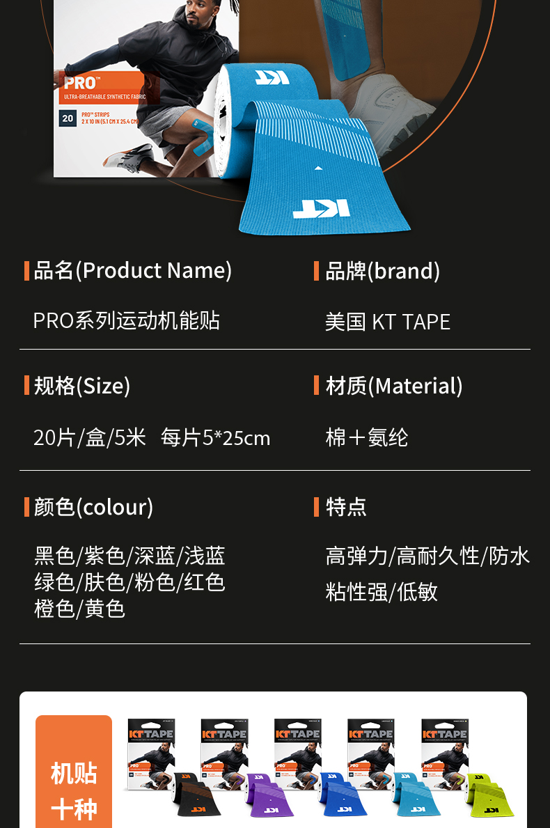 【原装进口】美国KTtape PRO运动防水肌贴 关节保护肌肉拉伤运动员专用贴布(预切20片)
