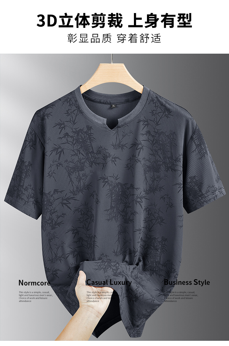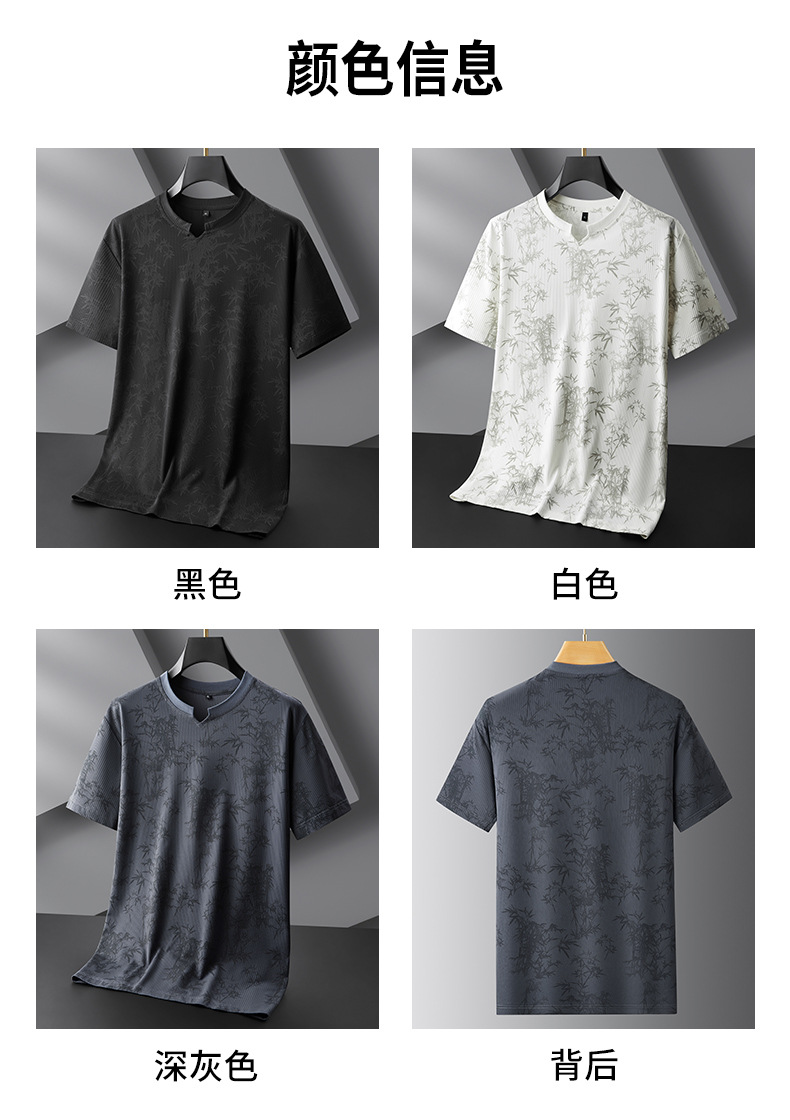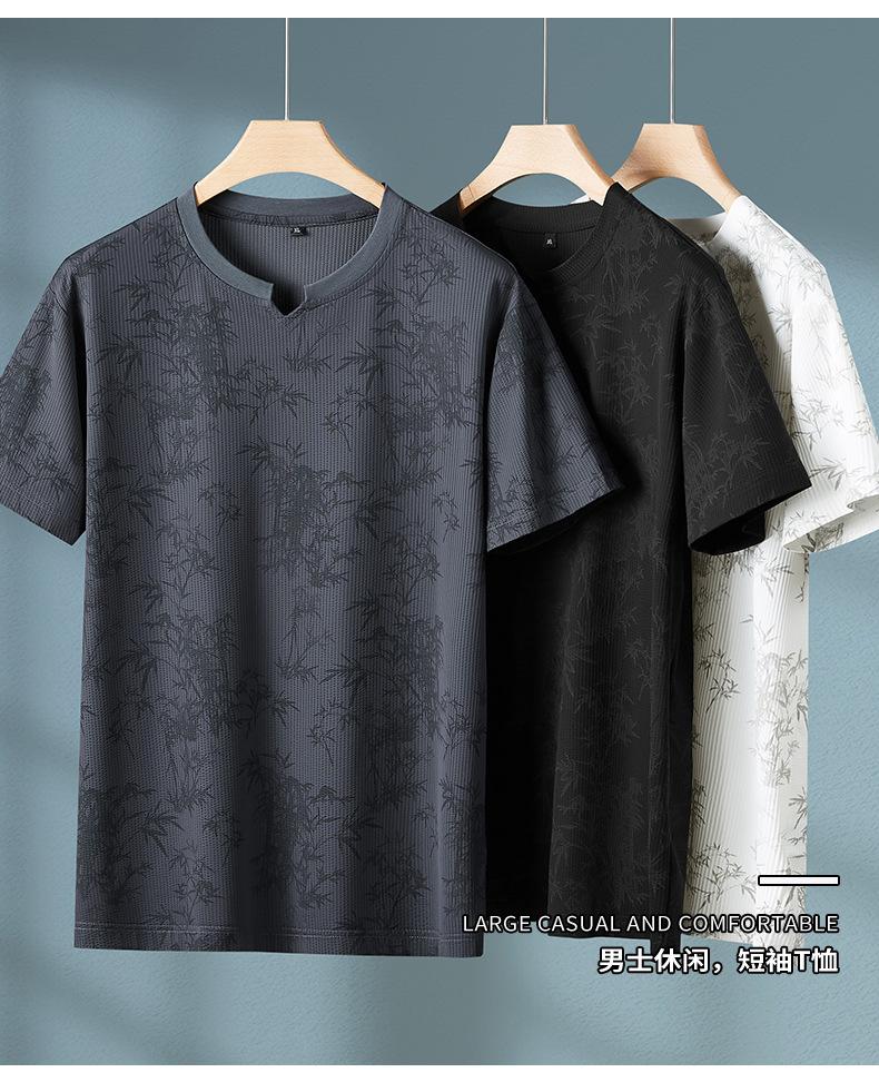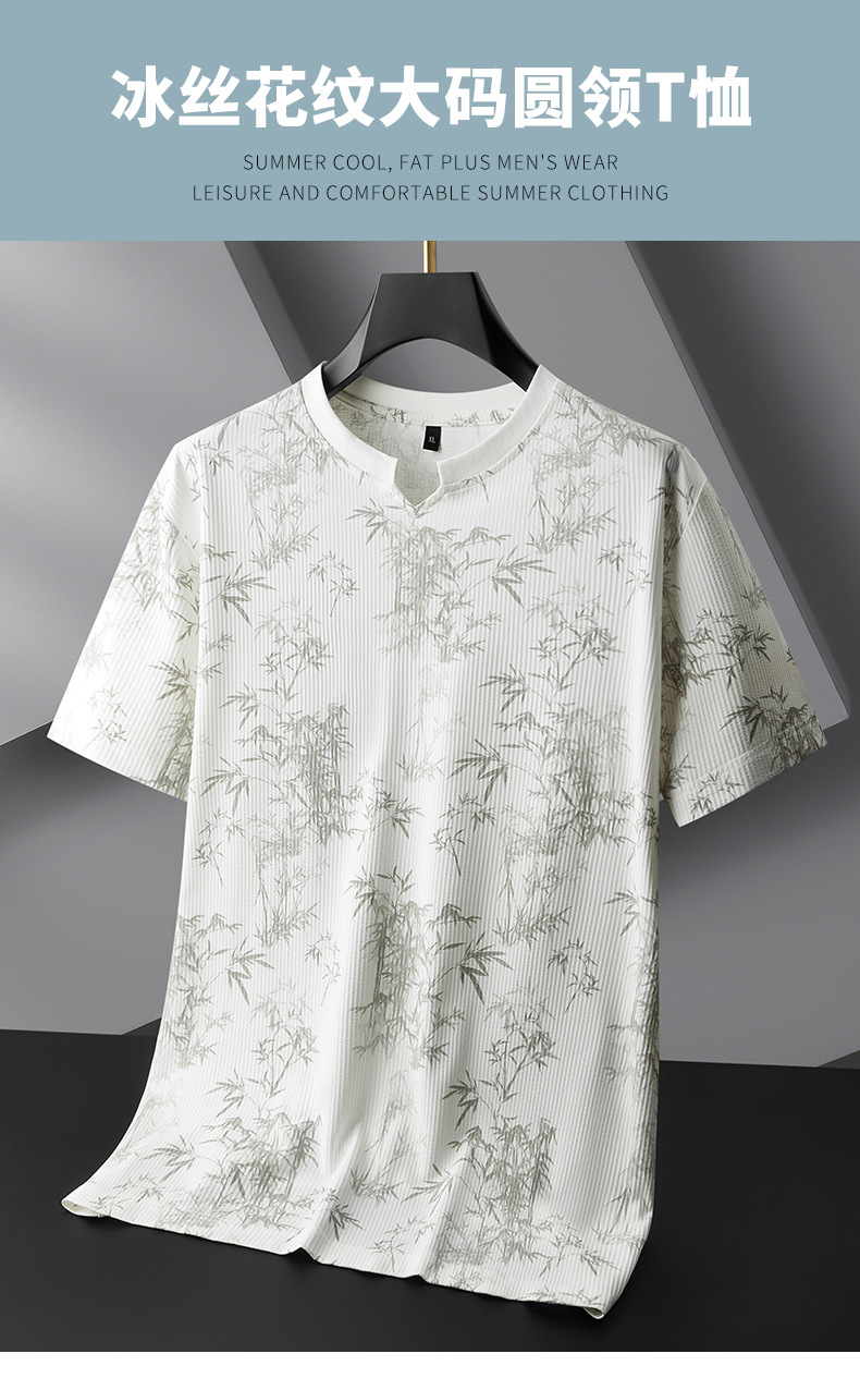 【冰丝】【DPF】大依优型大码短袖T恤圆领宽松国风印花半袖夏季男士加肥加大胖子上衣男士