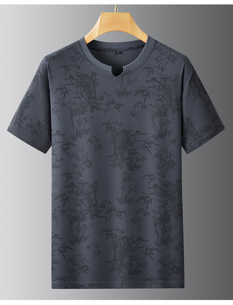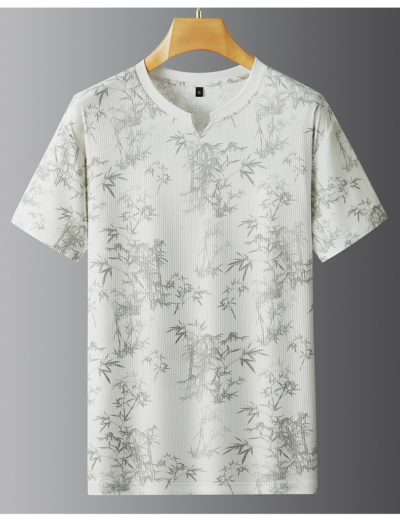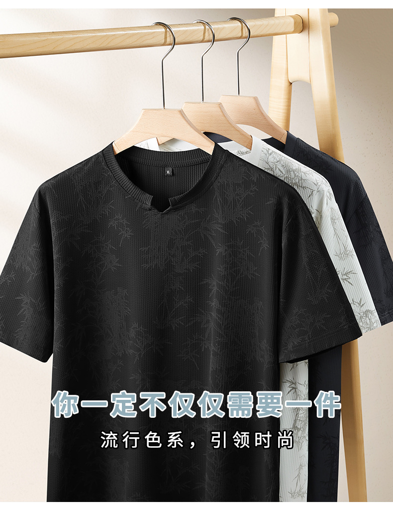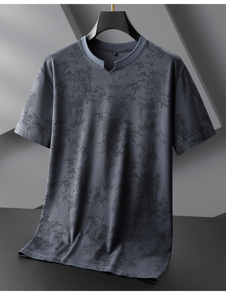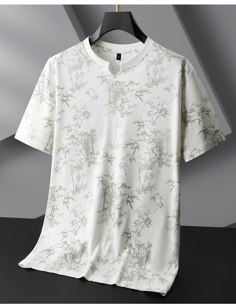 【冰丝】【DPF】大依优型大码短袖T恤圆领宽松国风印花半袖夏季男士加肥加大胖子上衣男士