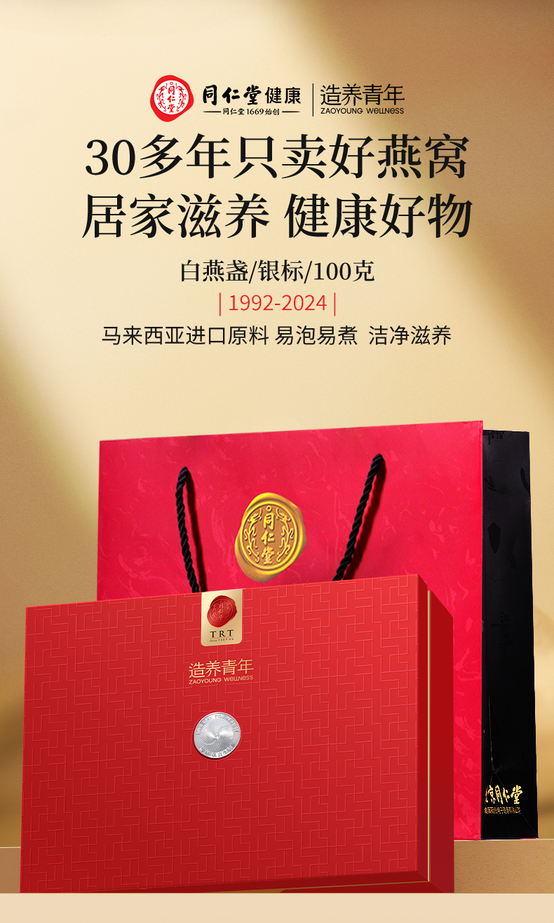 【正宗同仁堂品牌】北京同仁堂 干燕窝(银标款)100克送礼盒 马来西亚原产 干盏溯源干燕盏 送长辈 孝敬父母SY