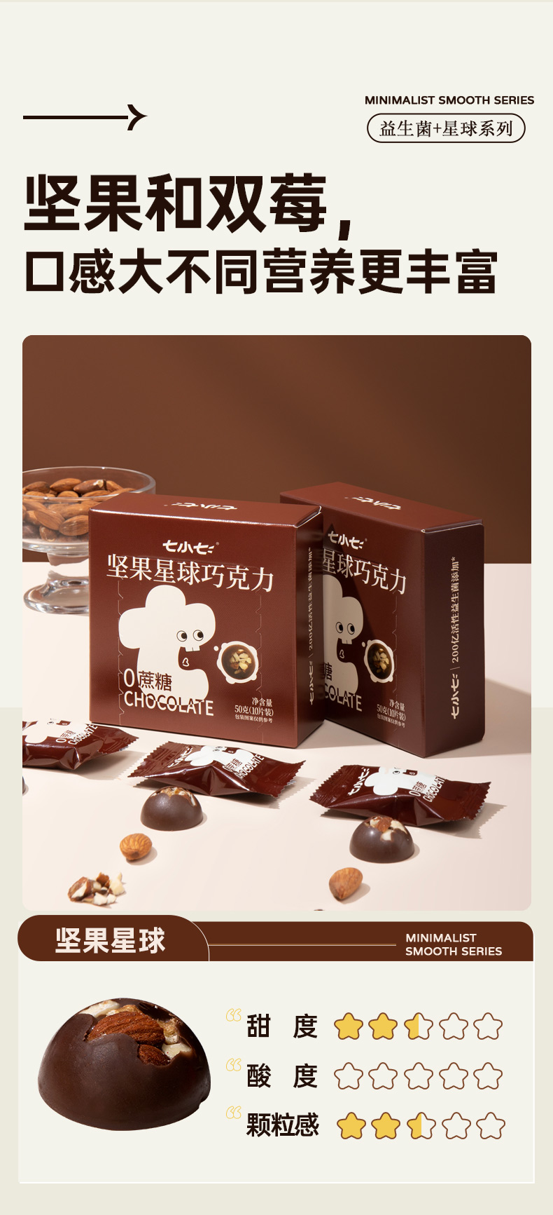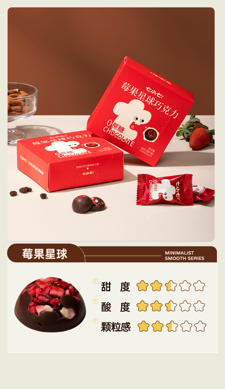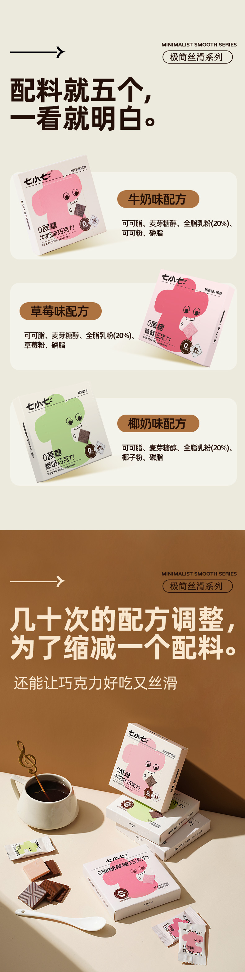 【下单方式见详情页】七小七无蔗糖巧克力纯可可脂健康解馋零食牛奶草莓椰奶组合装40g盒 商品图0