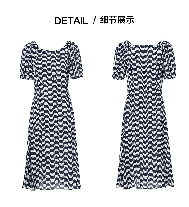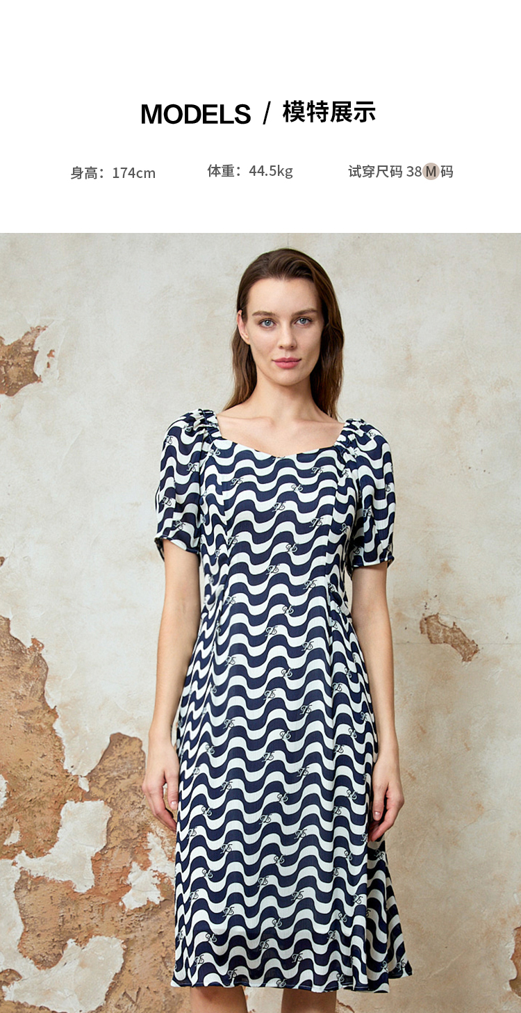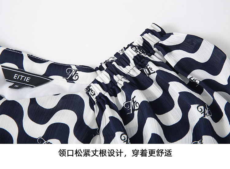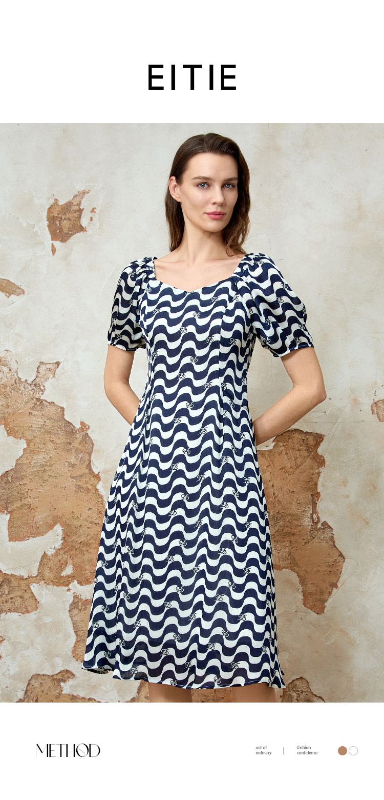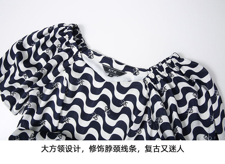 EITIE爱特爱夏季新款气质收腰显瘦通勤百搭a字印花连衣裙8207913