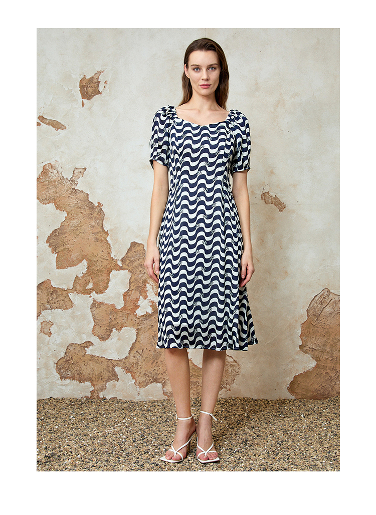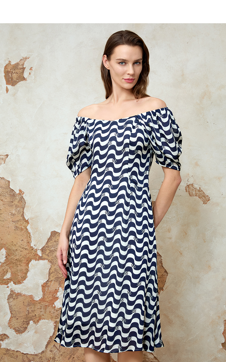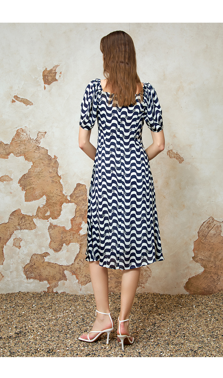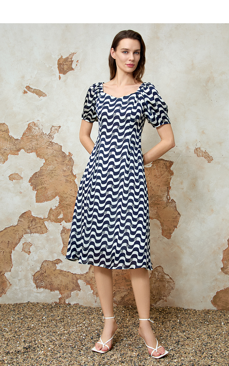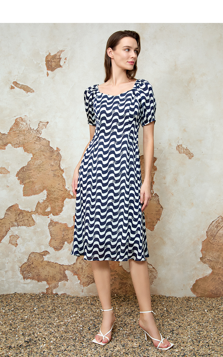 EITIE爱特爱夏季新款气质收腰显瘦通勤百搭a字印花连衣裙8207913