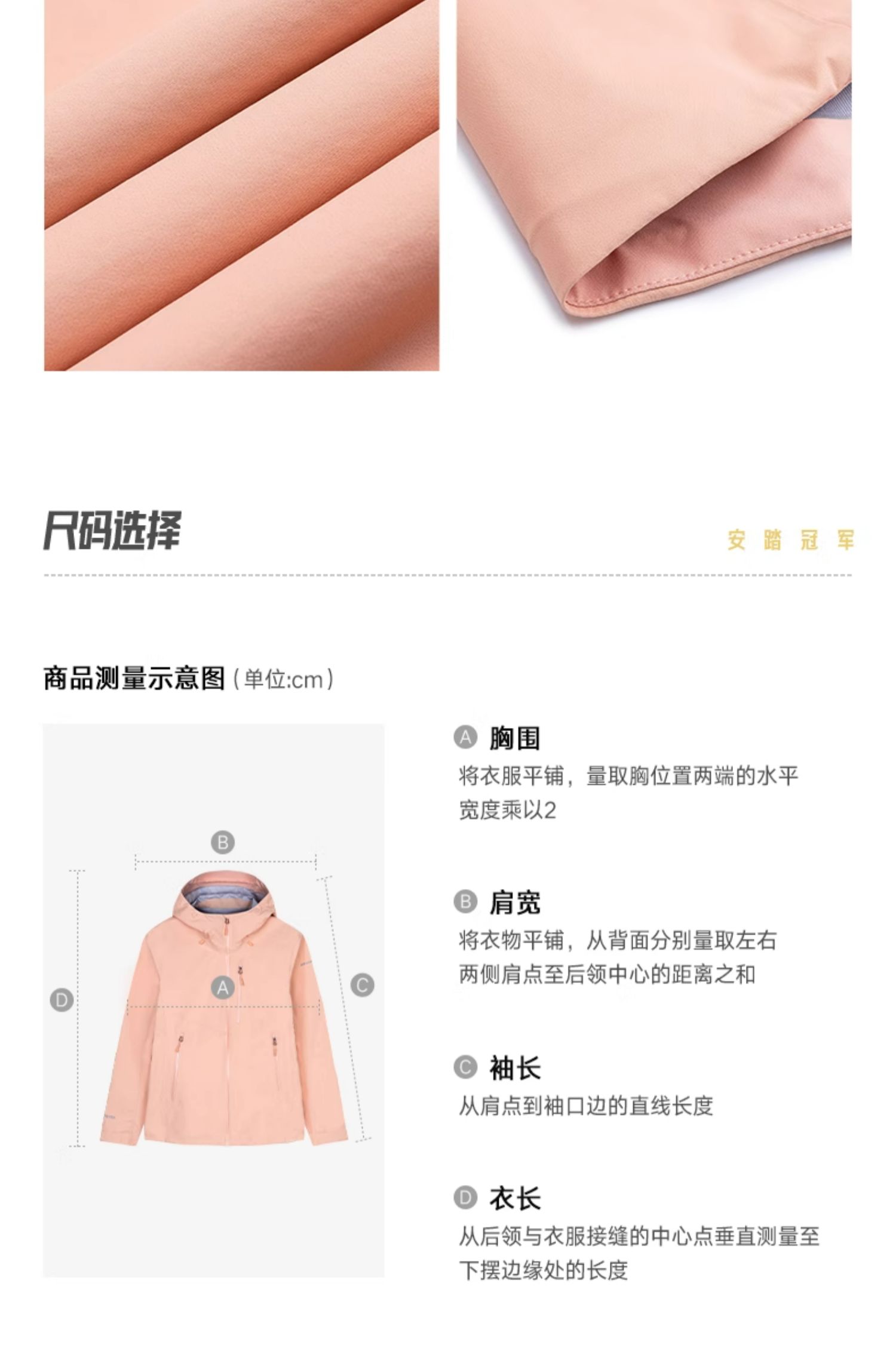 【S/M/L/XL/2XL断码】安踏冠军户外系列丨冲锋衣女款透气防水连帽外套登山服162440602【库存有限,如无货将做退款,介意慎拍!】
