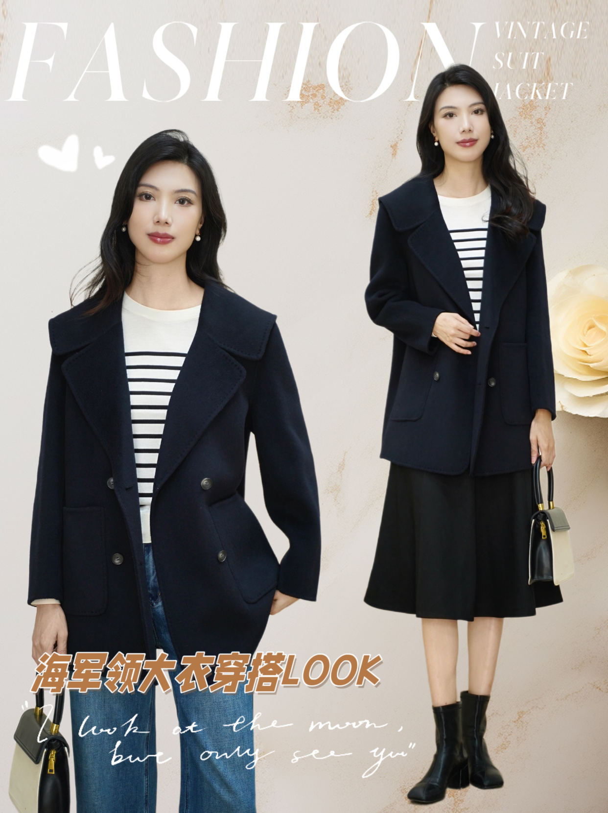 焕新·海军领大衣[爱心]一件打破沉闷的减龄利器。[玫瑰]俏皮海军领加持,搭配合身廓形,穿出复古学院气息。[烟花]显瘦显高,时髦毫不费力,到手689[礼物]