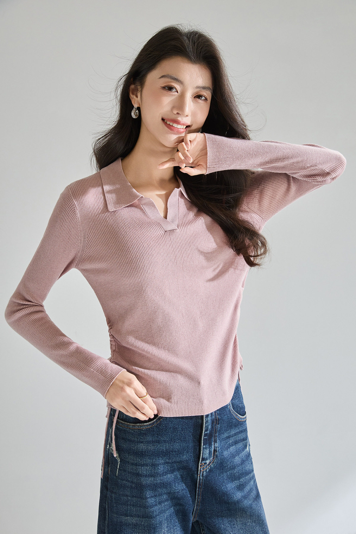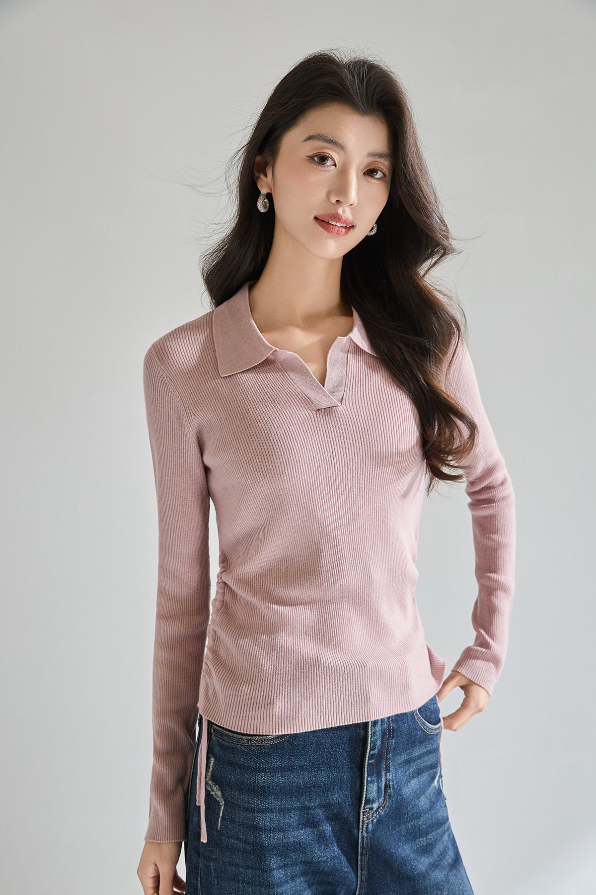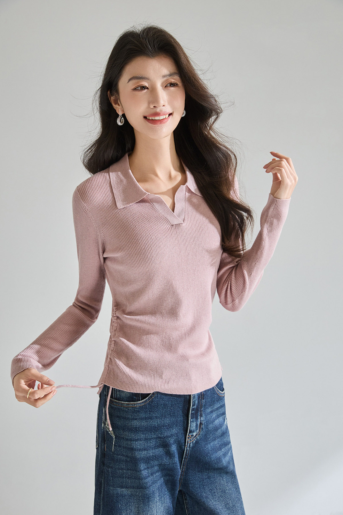 「高货sh」全新升级【铂金会员247/天猫329/差价82】(95918)洛诗琳轻薄抽绳小蛮腰针织衫2026春季显瘦气质翻领针织上衣女