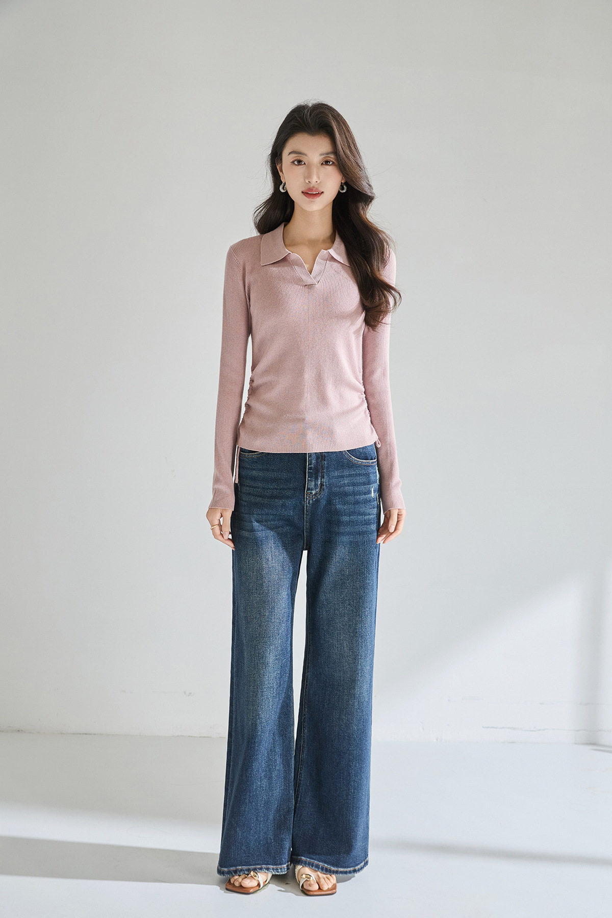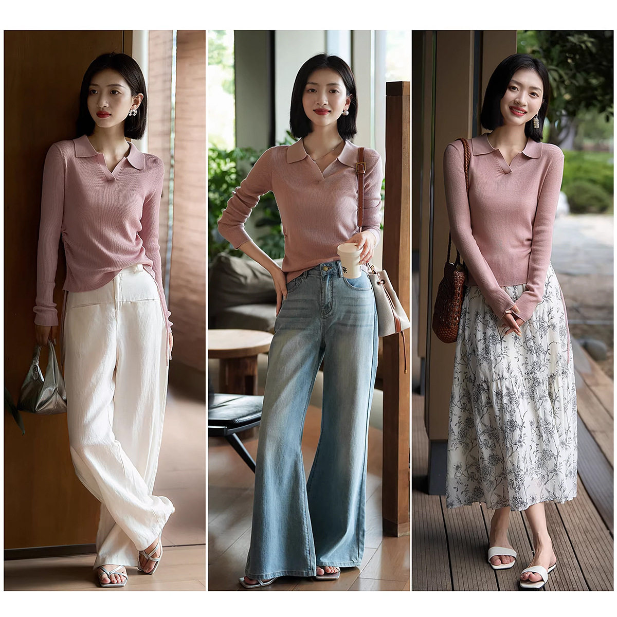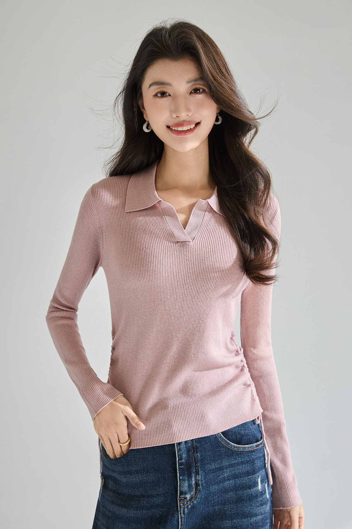 「高货sh」全新升级【铂金会员247/天猫329/差价82】(95918)洛诗琳轻薄抽绳小蛮腰针织衫2026春季显瘦气质翻领针织上衣女