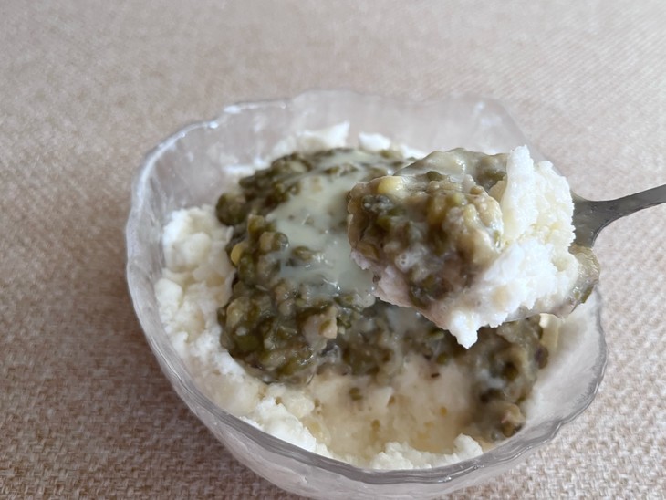 起锅放凉后冰镇一小时是当季防暑的好甜品,冰镇后的口感比较清新,绿豆味厚重,这样的口感非常适合炎炎夏日喝一碗下去,就像给自己疲惫的身体快速充电一样的惬意。