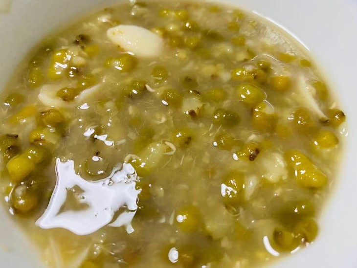 我加了百合干和绿豆一起煮,中火大概半个多小时,香味弥漫着整个家,绿豆也已经完全变酥软了,根据自己的口味加入冰糖。