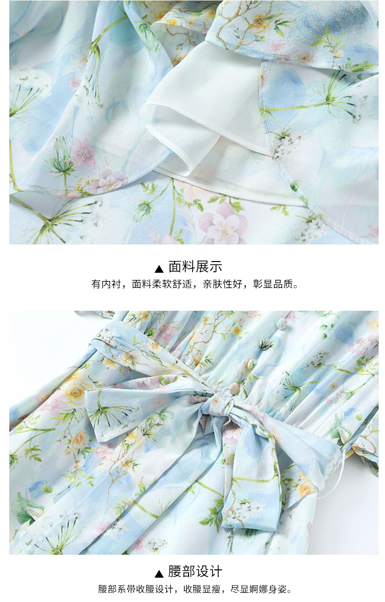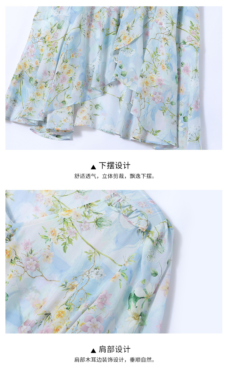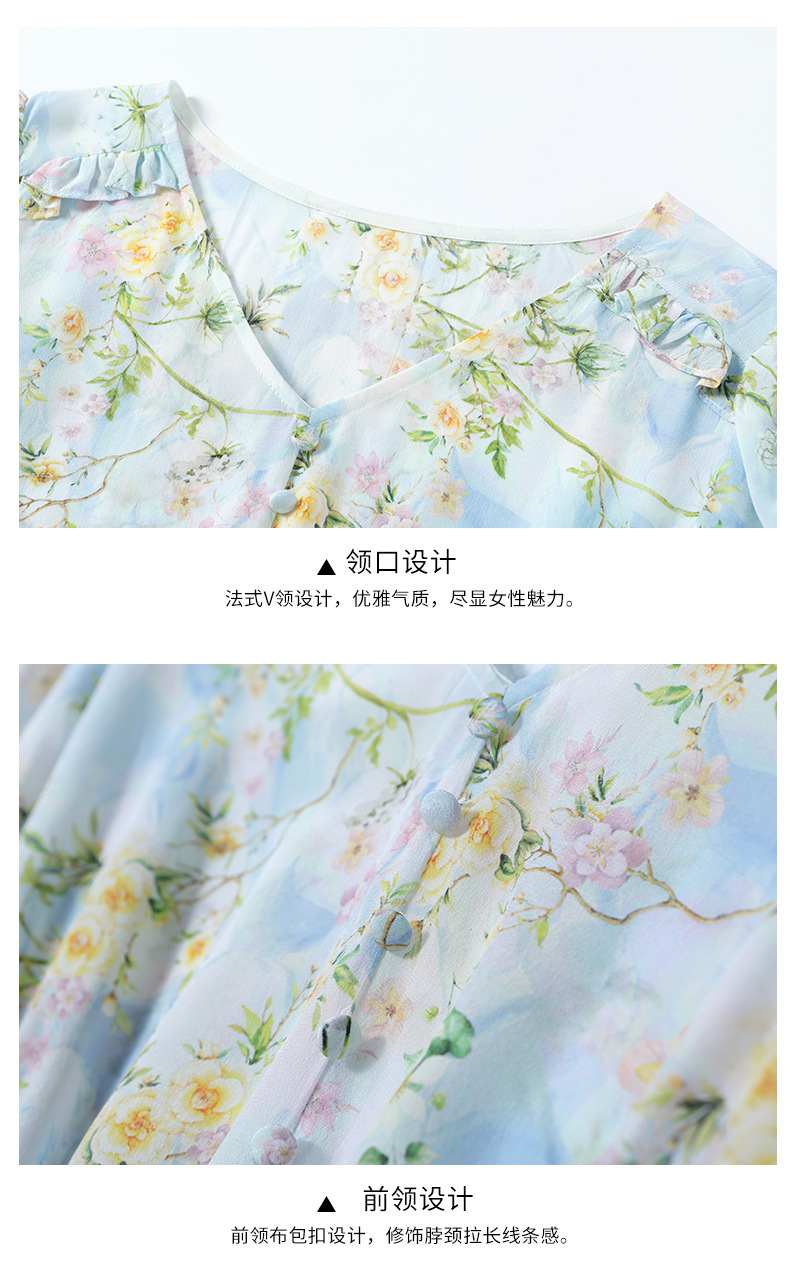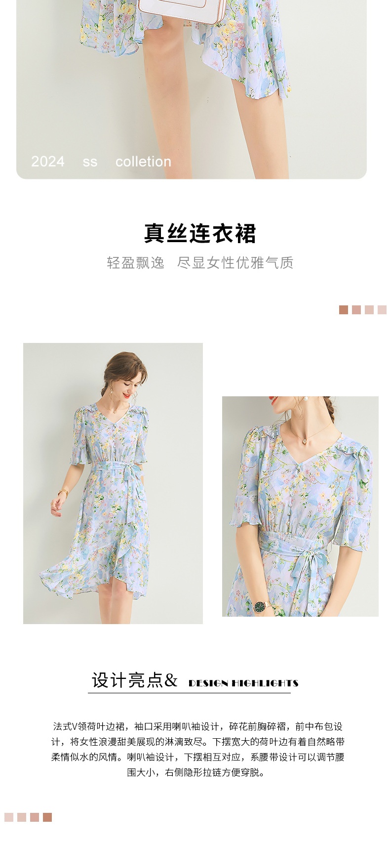 「高货kbnq」全新升级【铂金会员514/天猫689/差价175】(45557)洛诗琳法式真丝印花连衣裙2025夏季新款V领荷叶边真丝裙