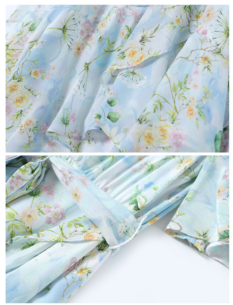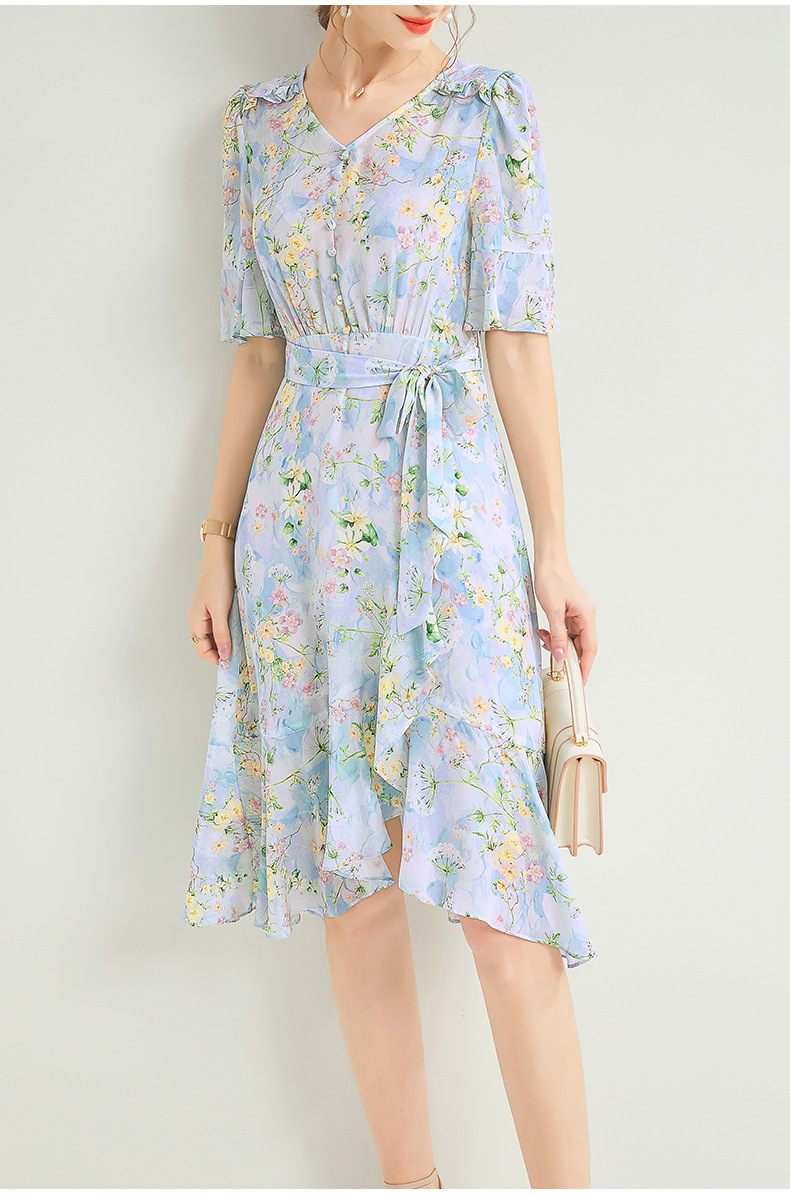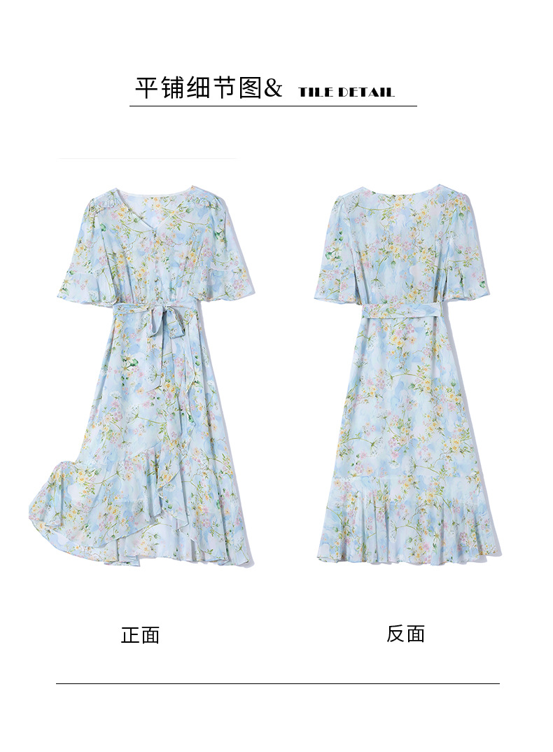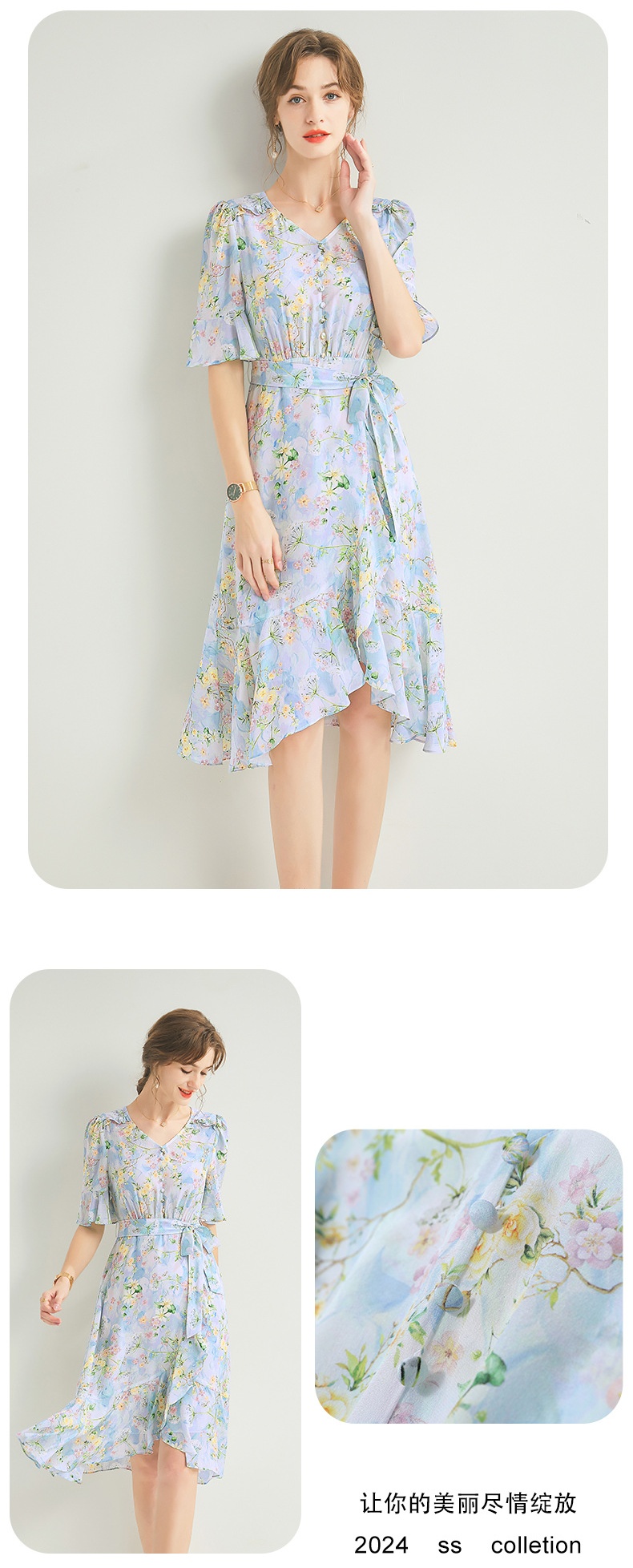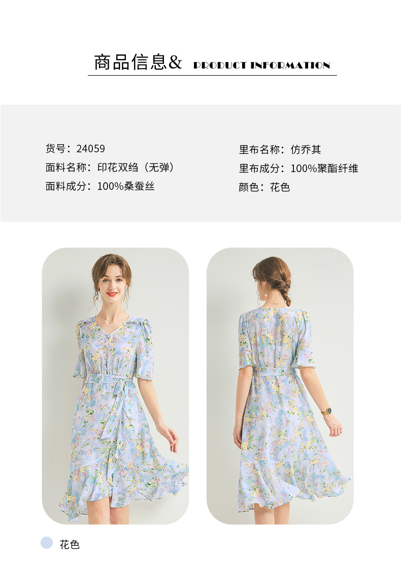 「高货kbnq」全新升级【铂金会员514/天猫689/差价175】(45557)洛诗琳法式真丝印花连衣裙2025夏季新款V领荷叶边真丝裙