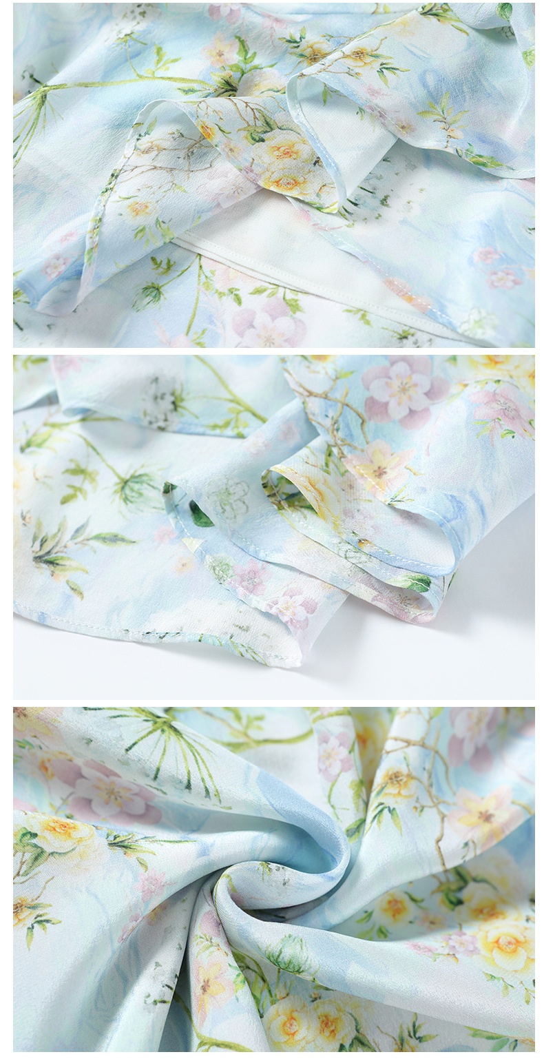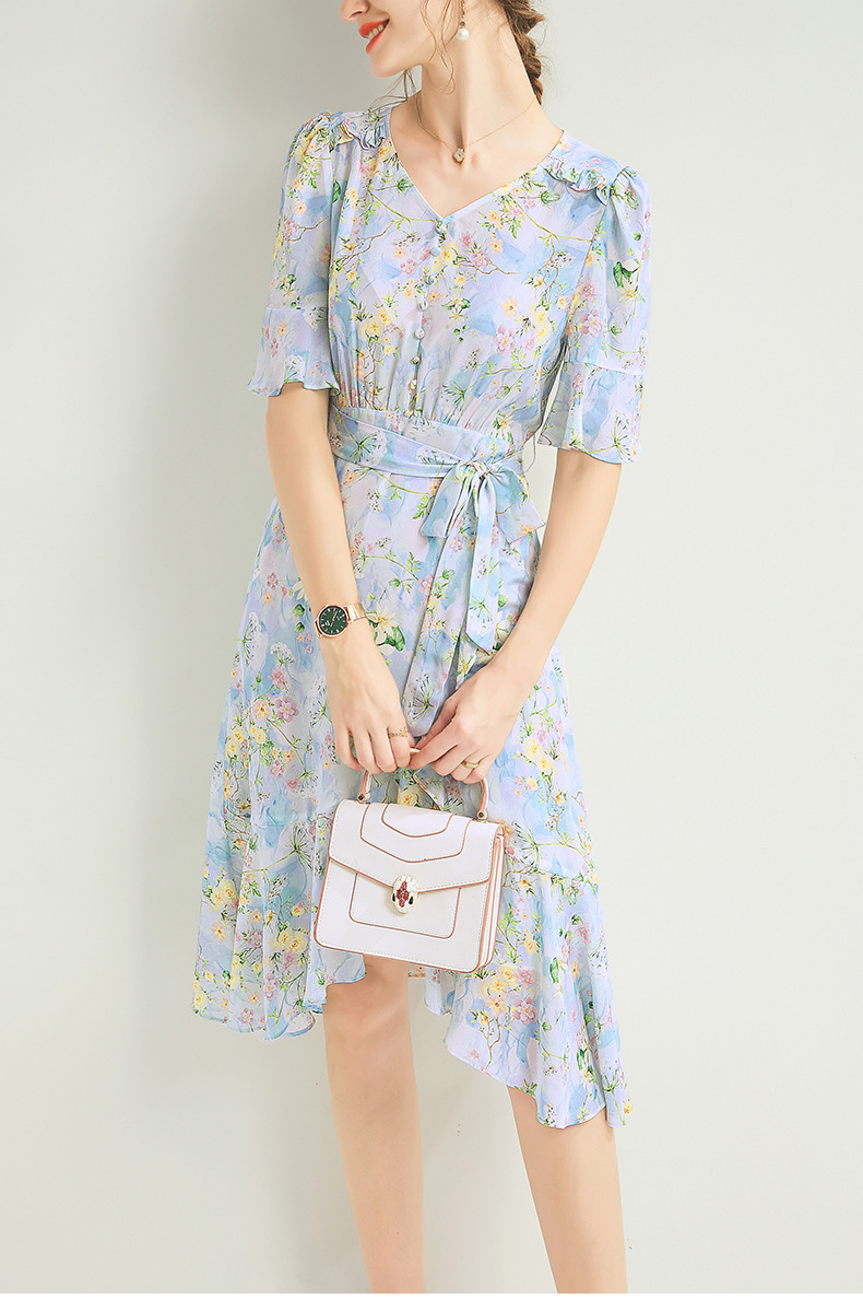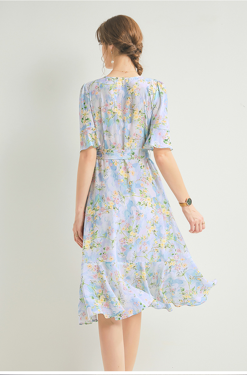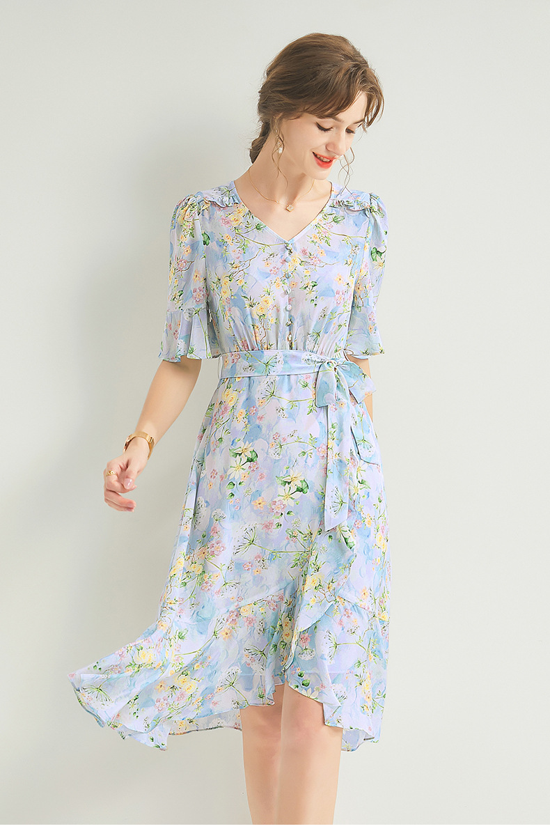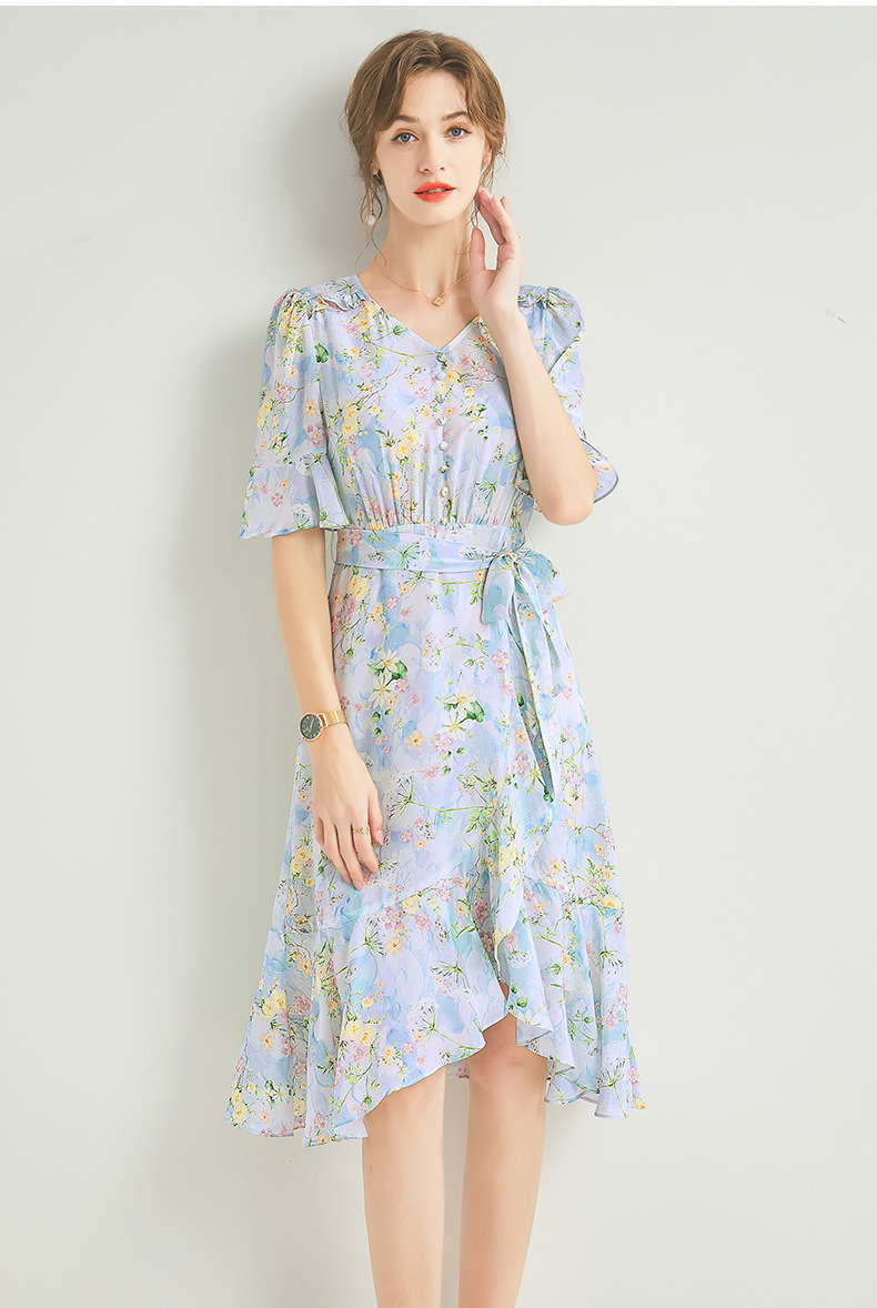 「高货kbnq」全新升级【铂金会员514/天猫689/差价175】(45557)洛诗琳法式真丝印花连衣裙2025夏季新款V领荷叶边真丝裙