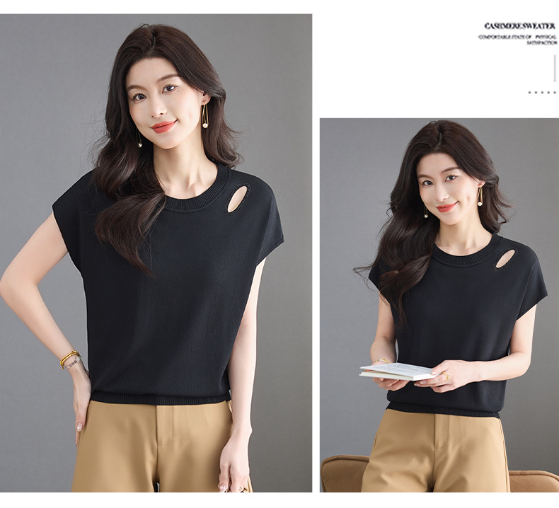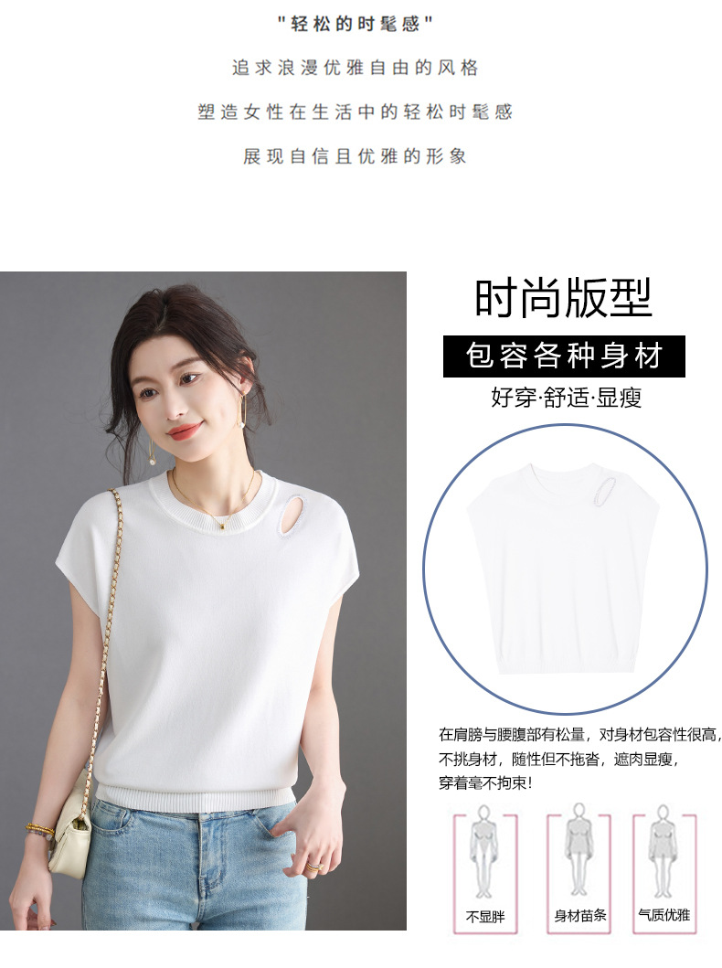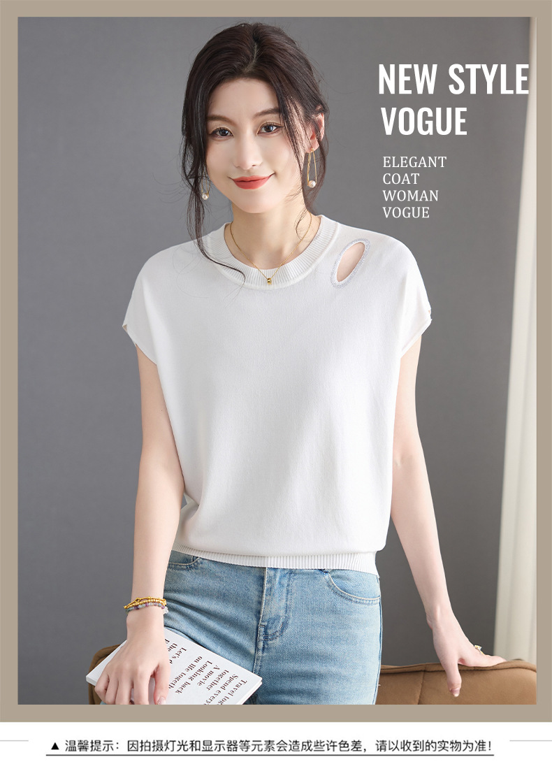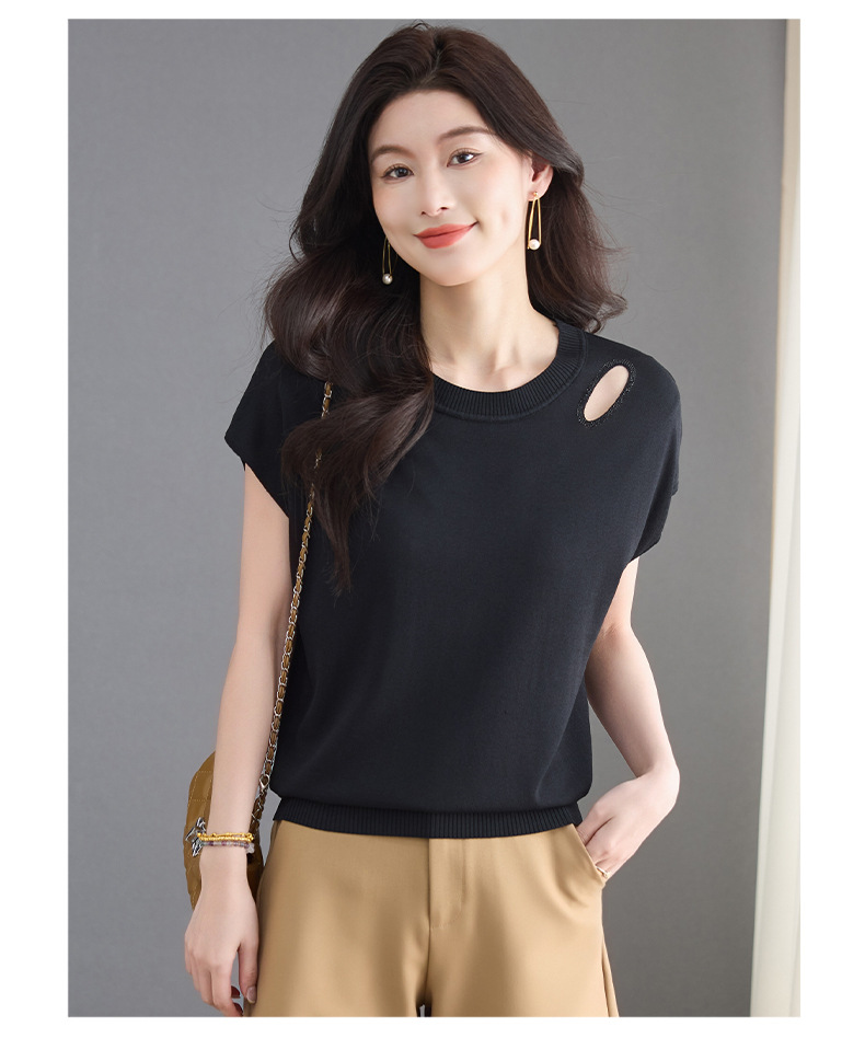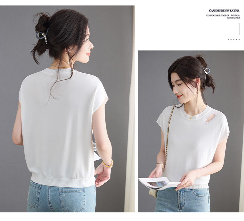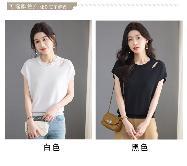 CC-LL-1648冰丝短袖t恤女士2025新款夏季洋气破洞宽松遮肚子显瘦上衣针织衫
