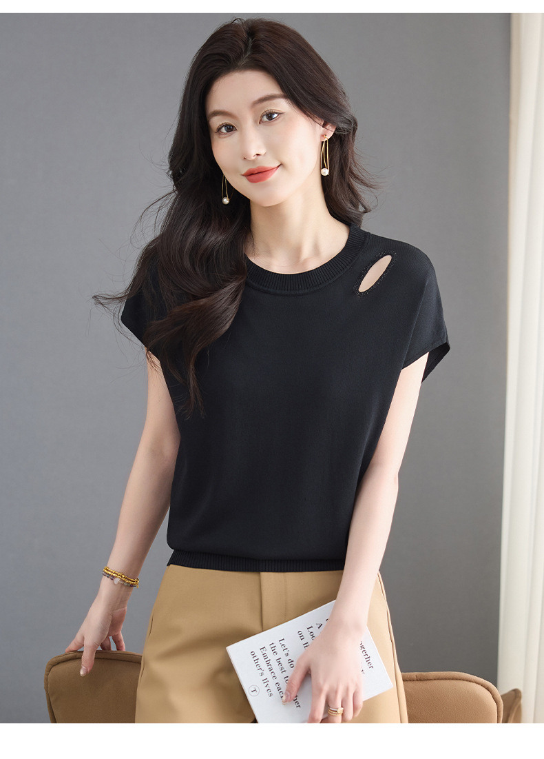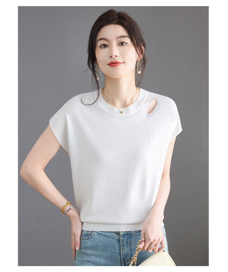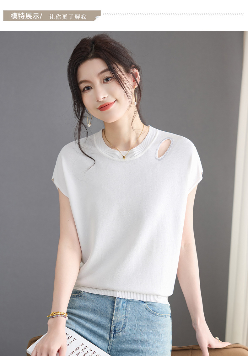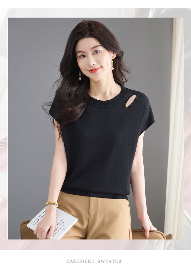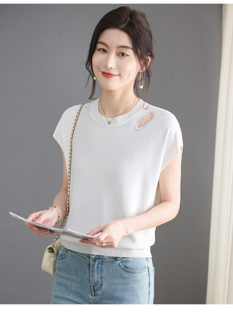 CC-LL-1648冰丝短袖t恤女士2025新款夏季洋气破洞宽松遮肚子显瘦上衣针织衫