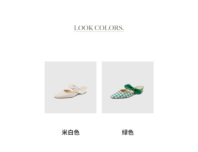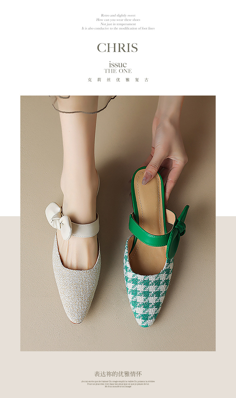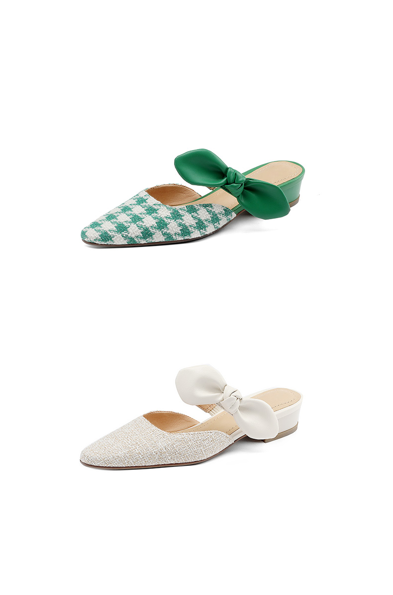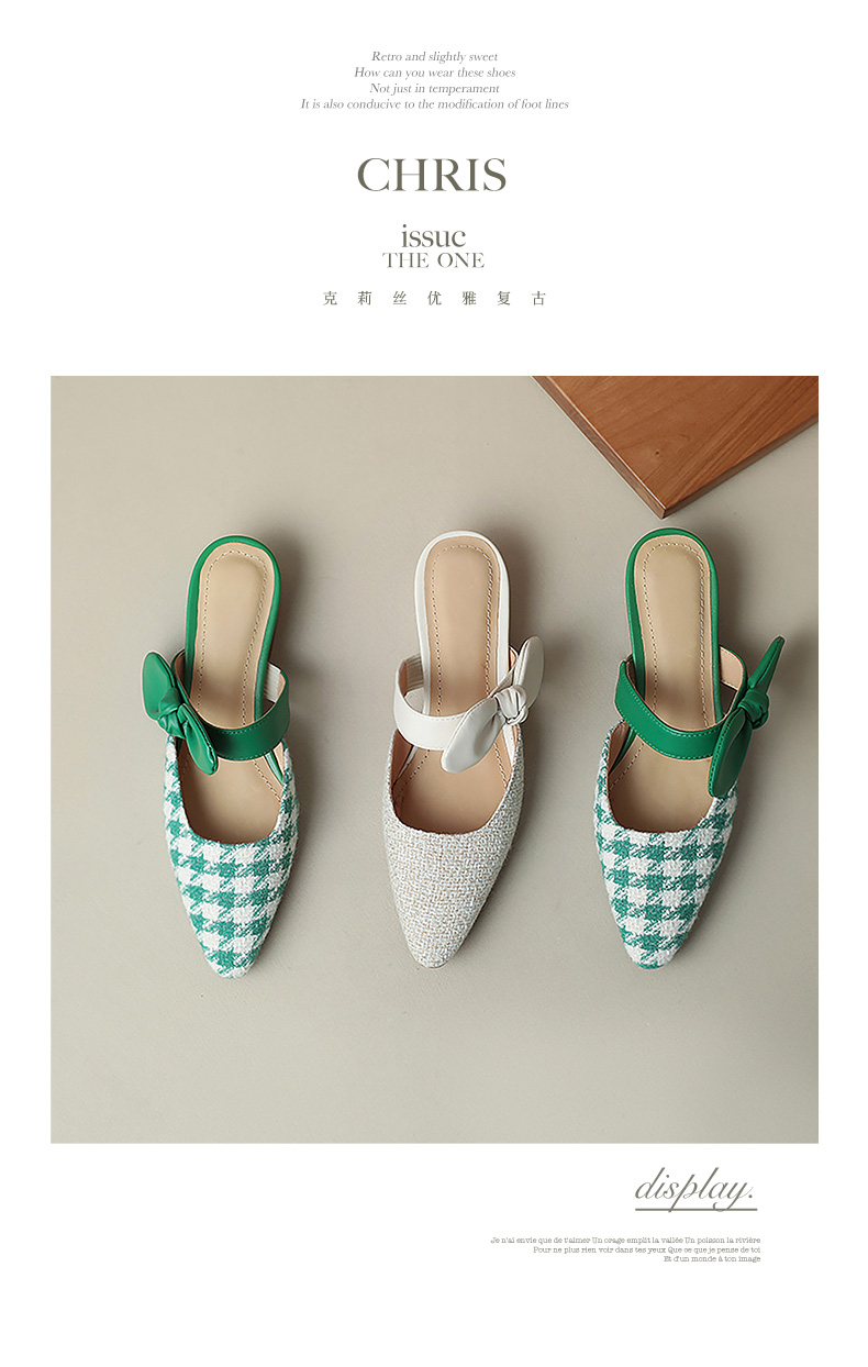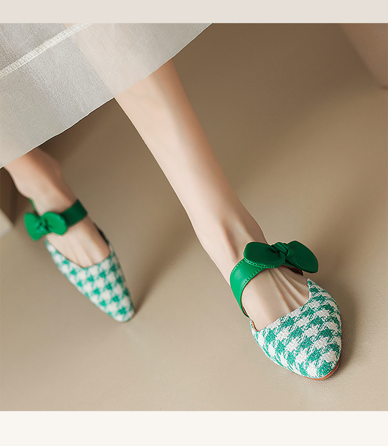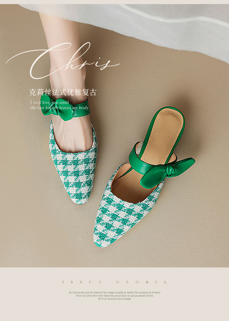 清新田园风,千鸟格纹尖头蝴蝶结拖鞋MT-ML8286