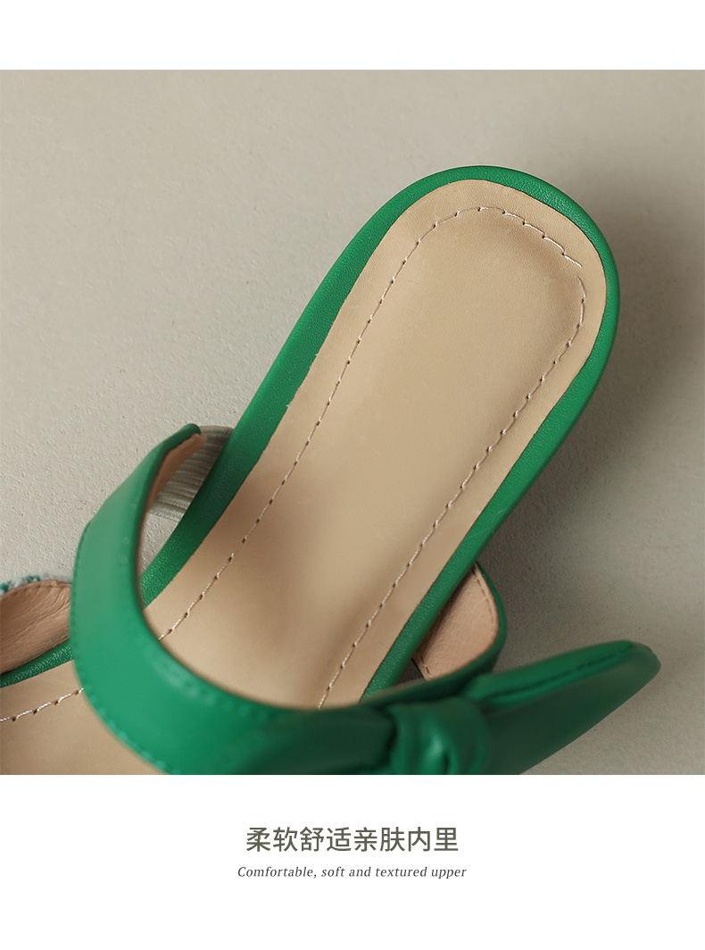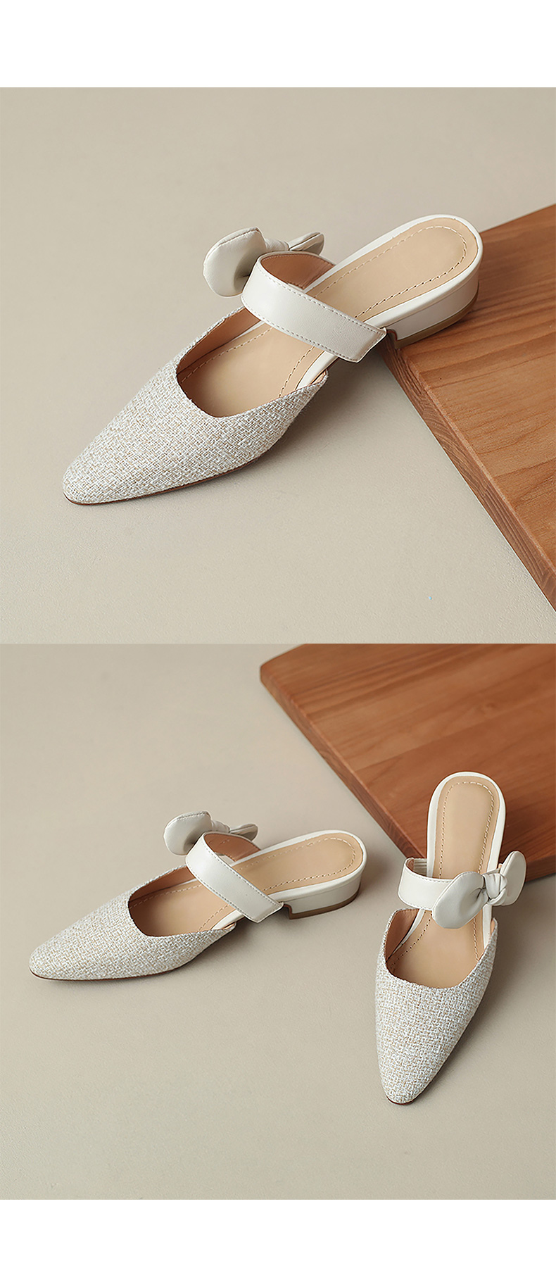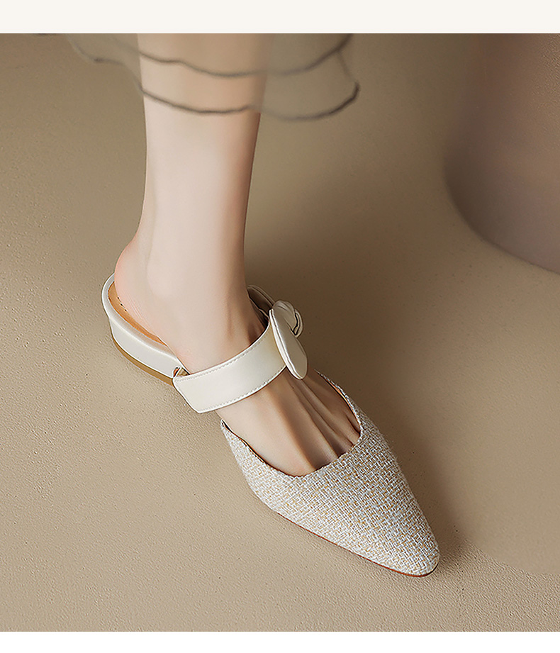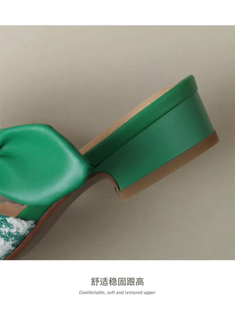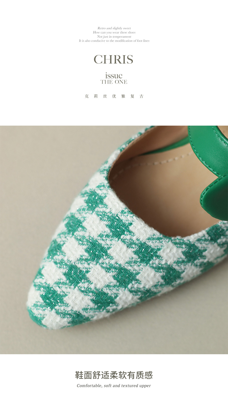 清新田园风,千鸟格纹尖头蝴蝶结拖鞋MT-ML8286