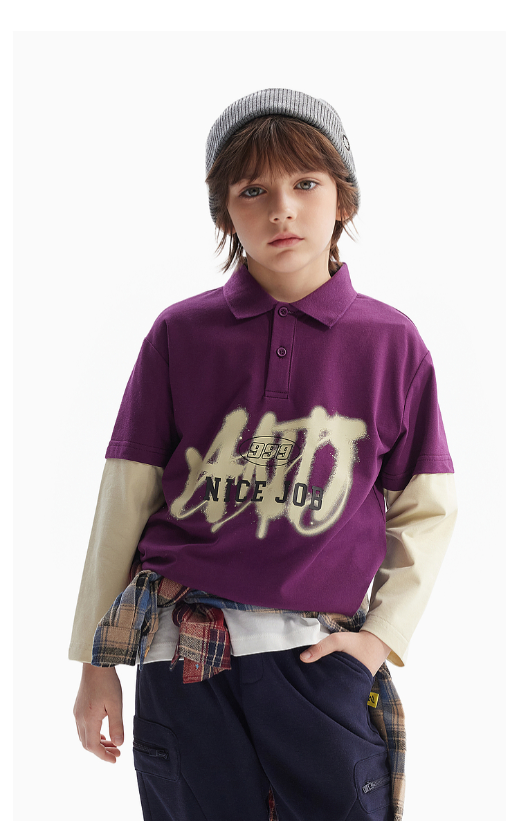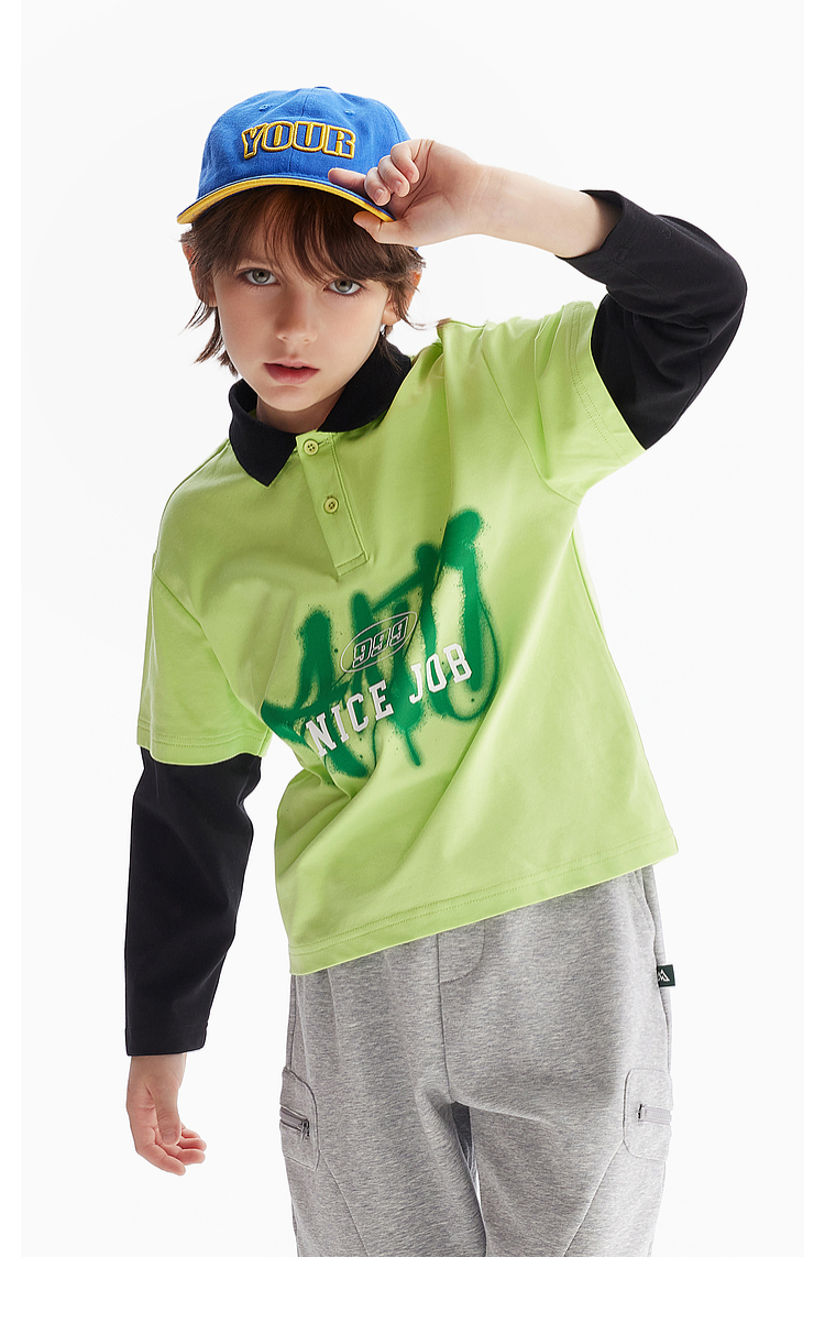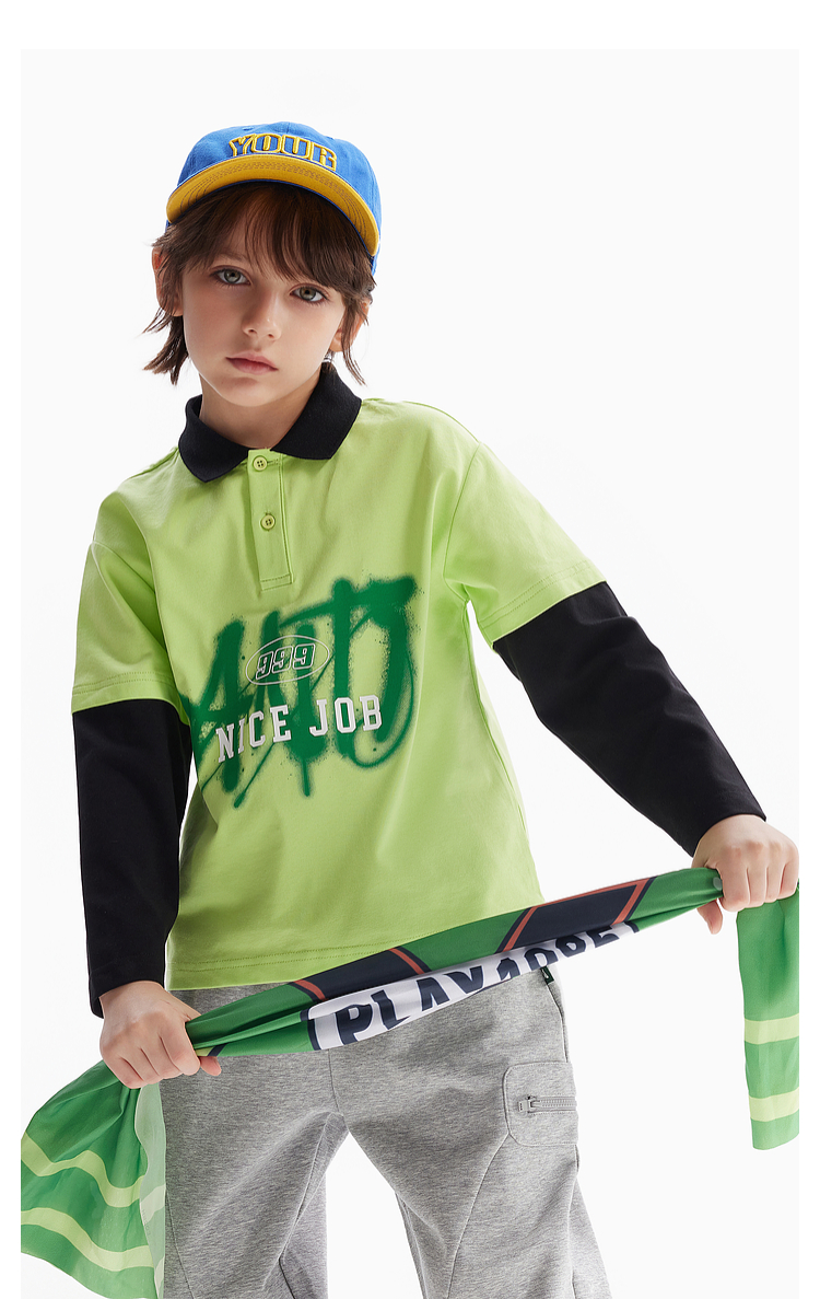 【MQD】童装男童长袖t恤春秋季款翻领polo衫假两件儿童打底衫宝宝