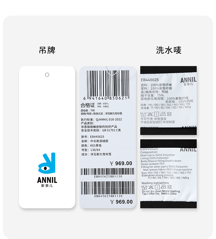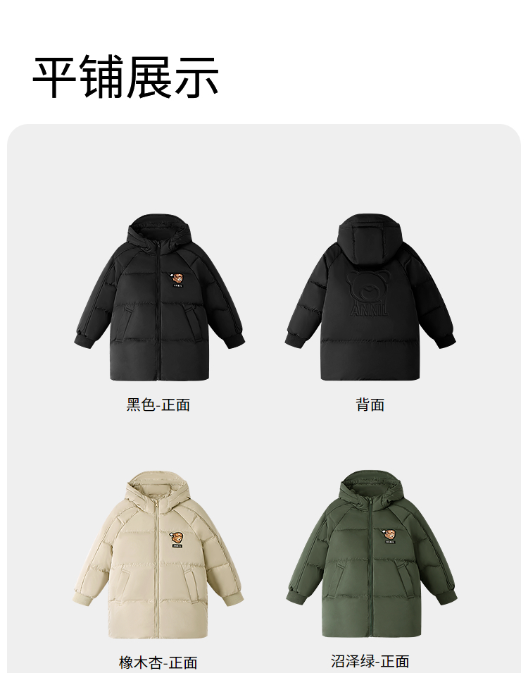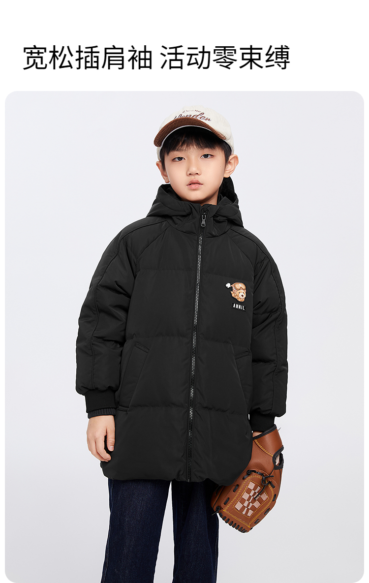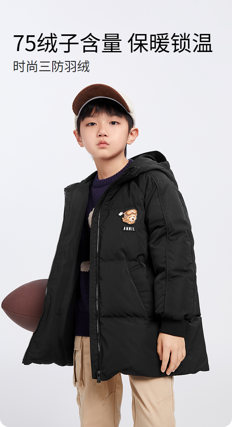 【轻暖0~10℃】男童三防中长款羽绒服冬季新款安奈儿童装EB445625