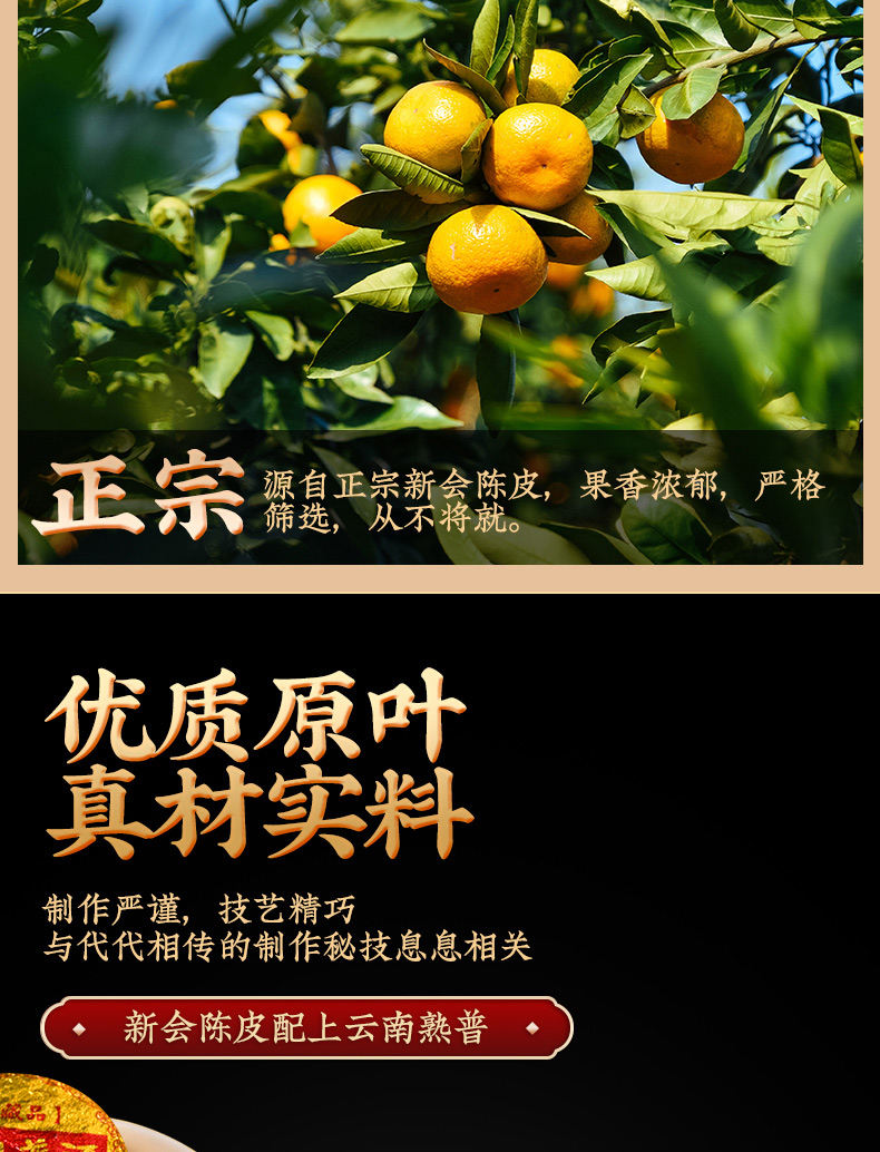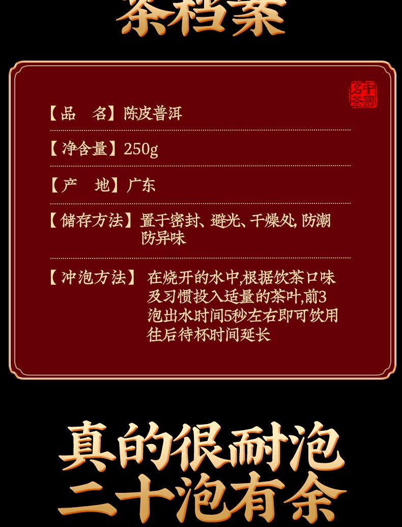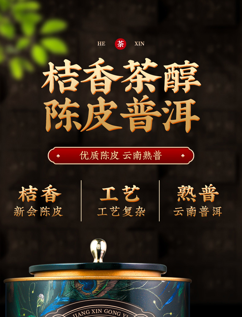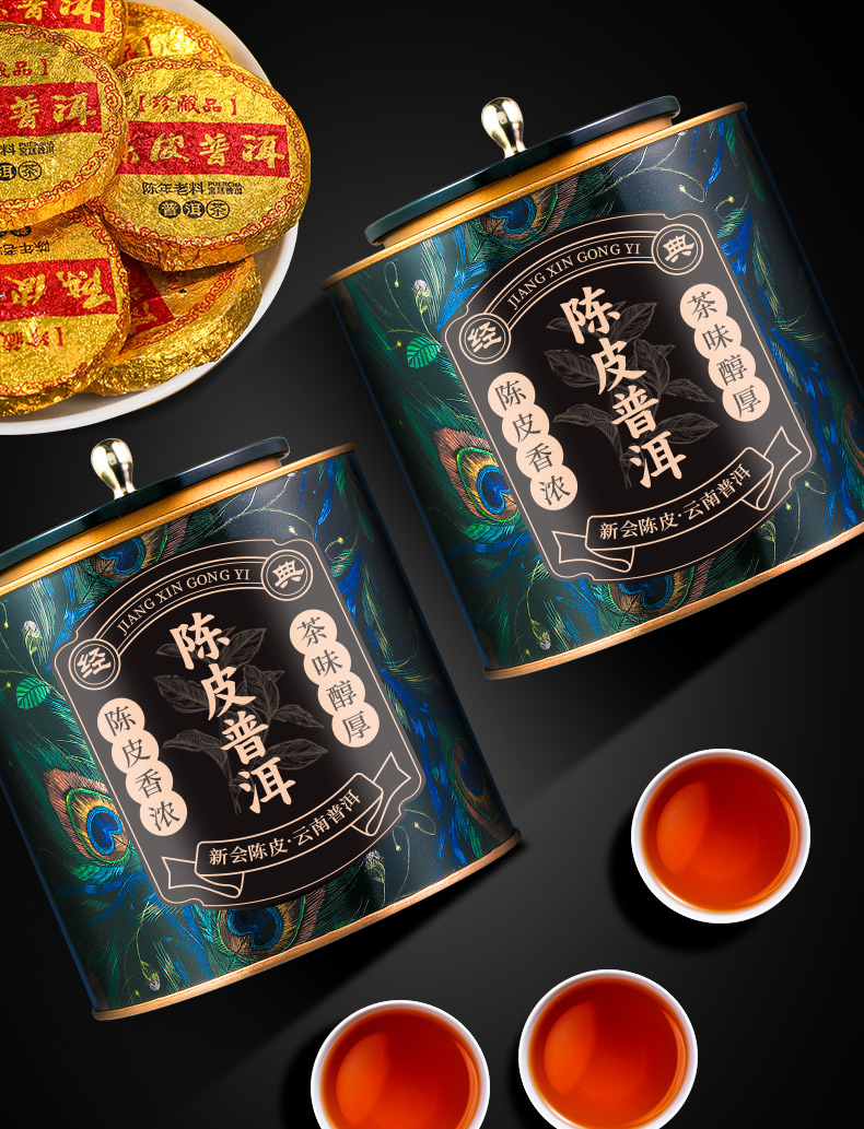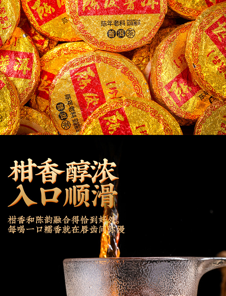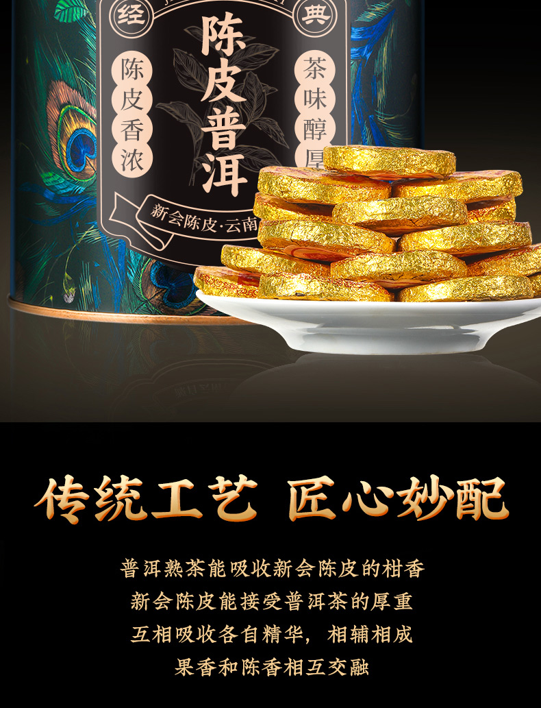 【中秋好礼】天洲溪 陈皮普洱 正宗新会陈皮 熟茶叶 十二年普洱茶 糯米香 小茶饼一罐250g 一罐装250g 两罐装