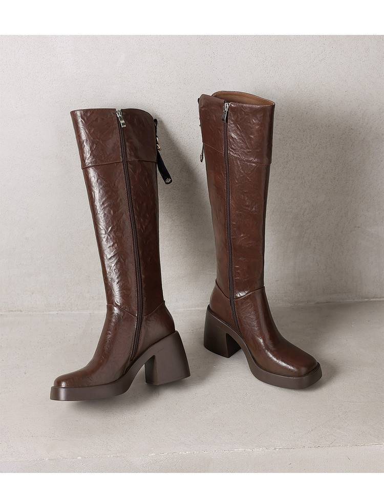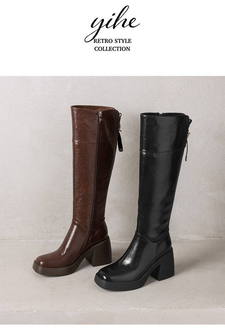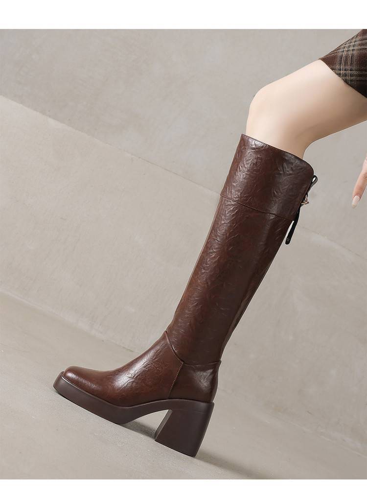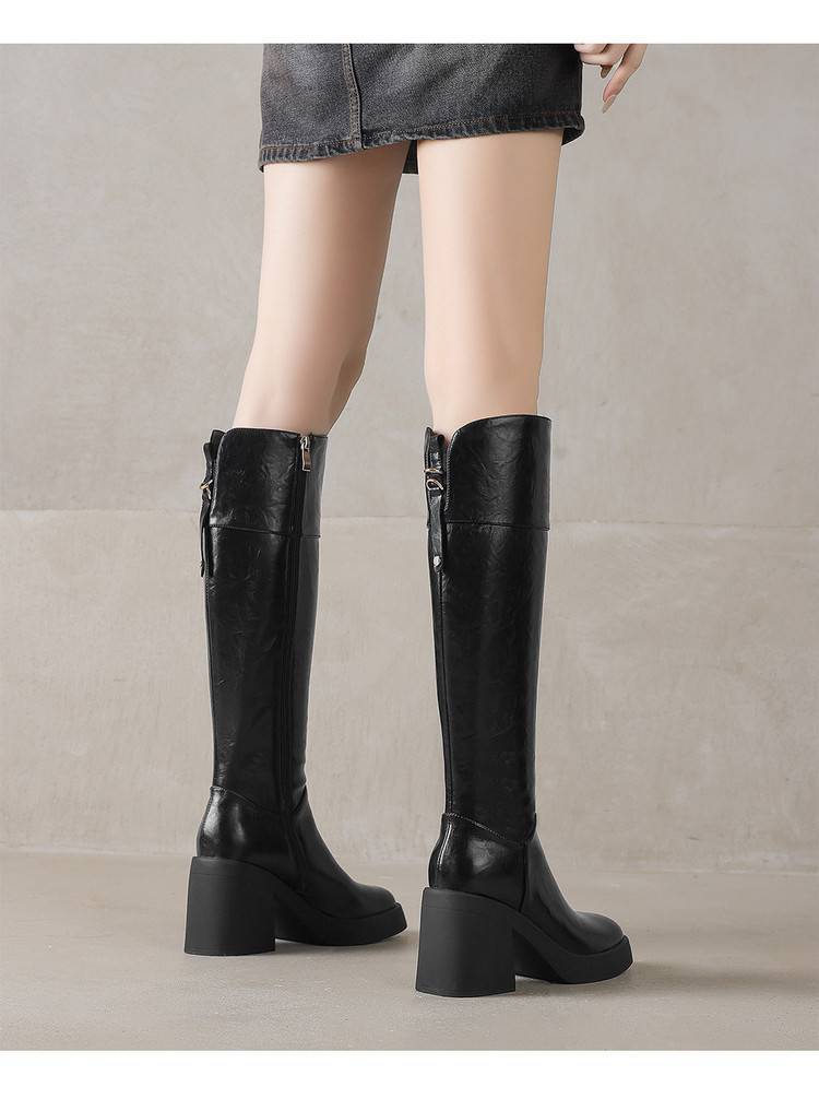 【预售5天】厚底及膝长靴女真皮粗跟骑士瘦瘦靴2025新款秋冬季高跟高筒靴CFE&C6337