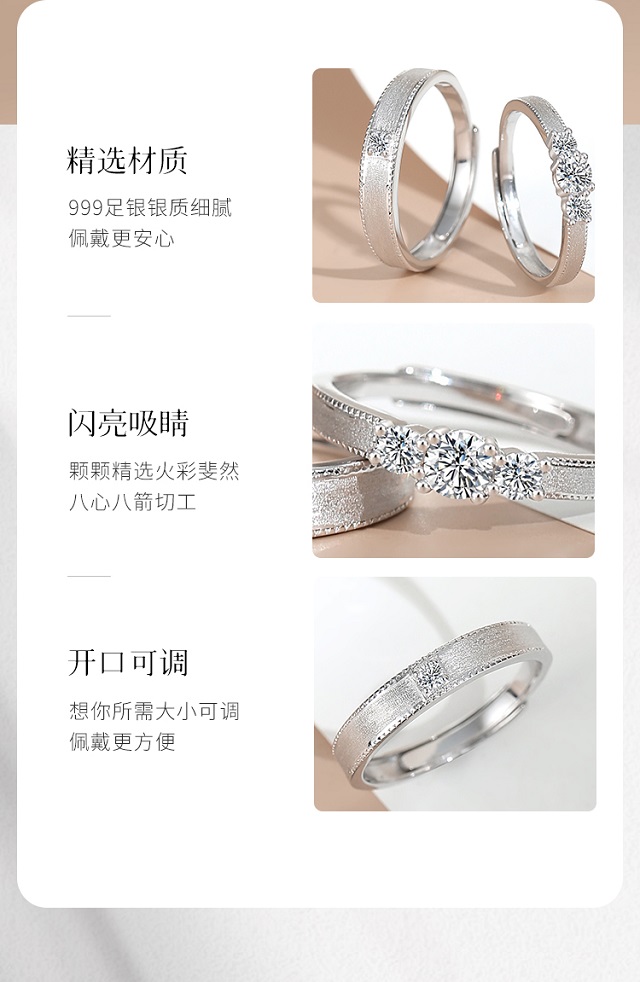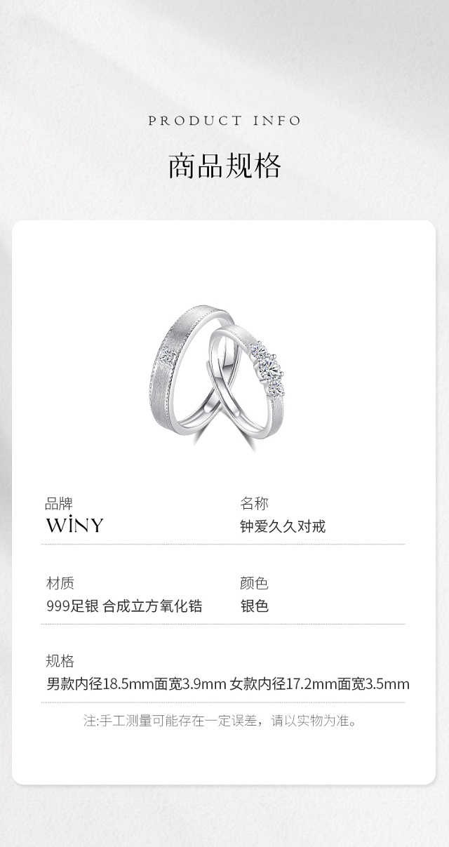 Winy999足银钟爱久久对戒送女友闺蜜节日生日礼物