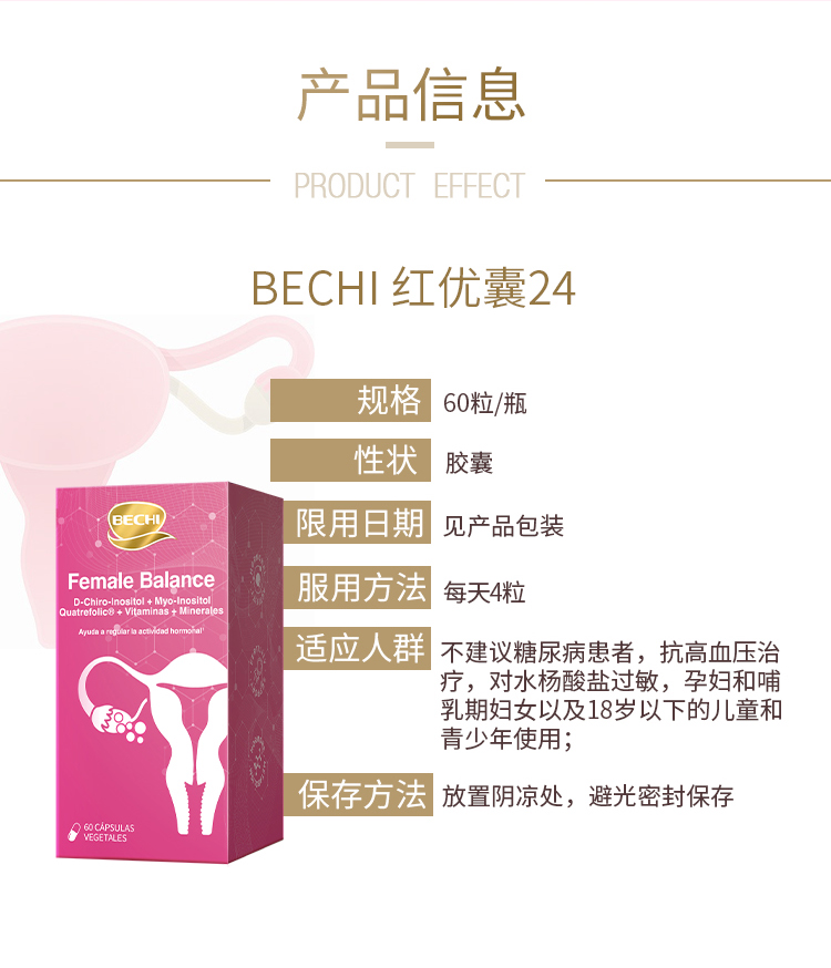 西班牙BECHI拜其 红优囊 多囊肌醇维生素胶囊 保税仓发货