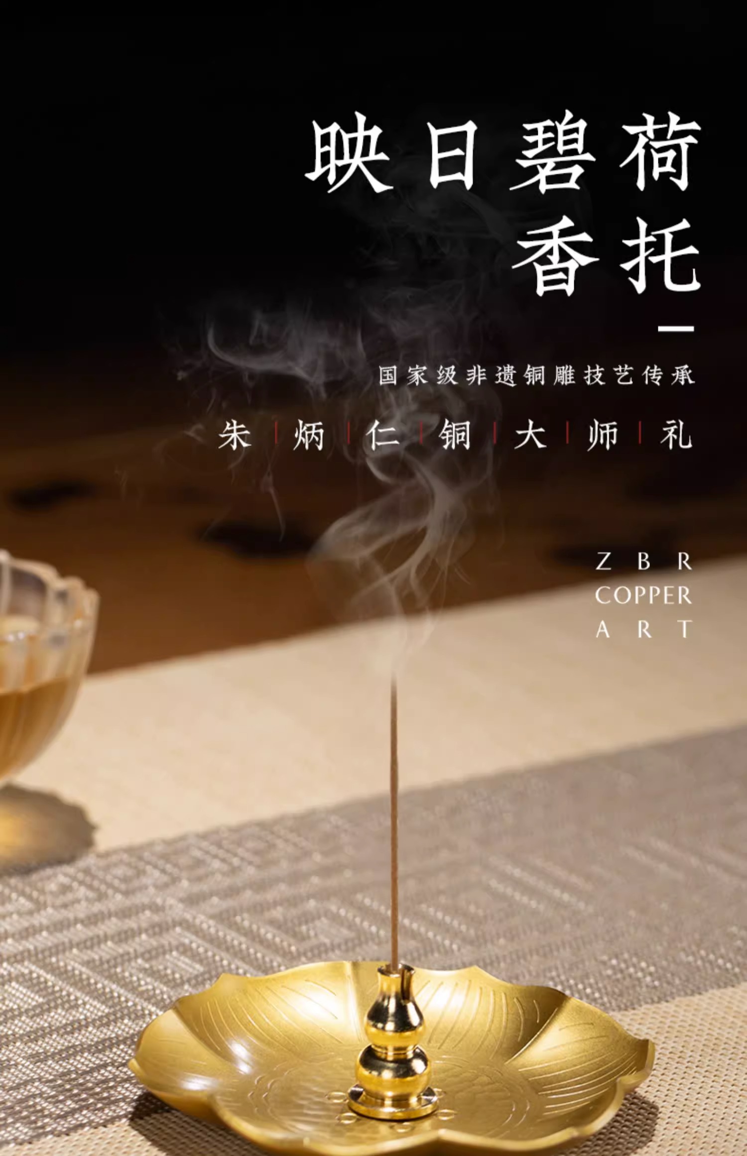 朱炳仁铜映日碧荷香托荷花边线香盘香熏香用送香插礼品办公桌摆件