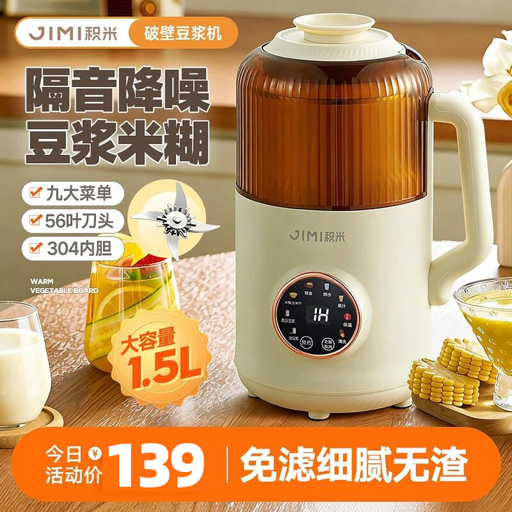 【99特惠】积米1.2升大容量破壁豆浆机,一台它=豆浆机+果汁机+烧水壶+煲汤+辅食机,不用提前泡豆,不用滤渣