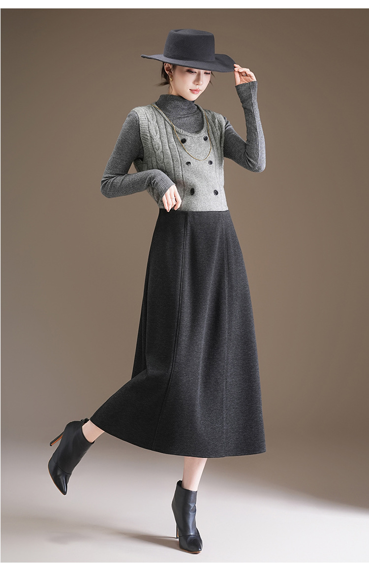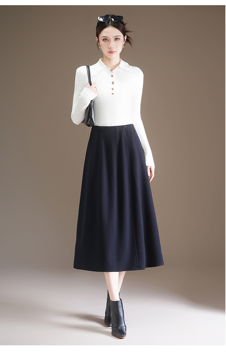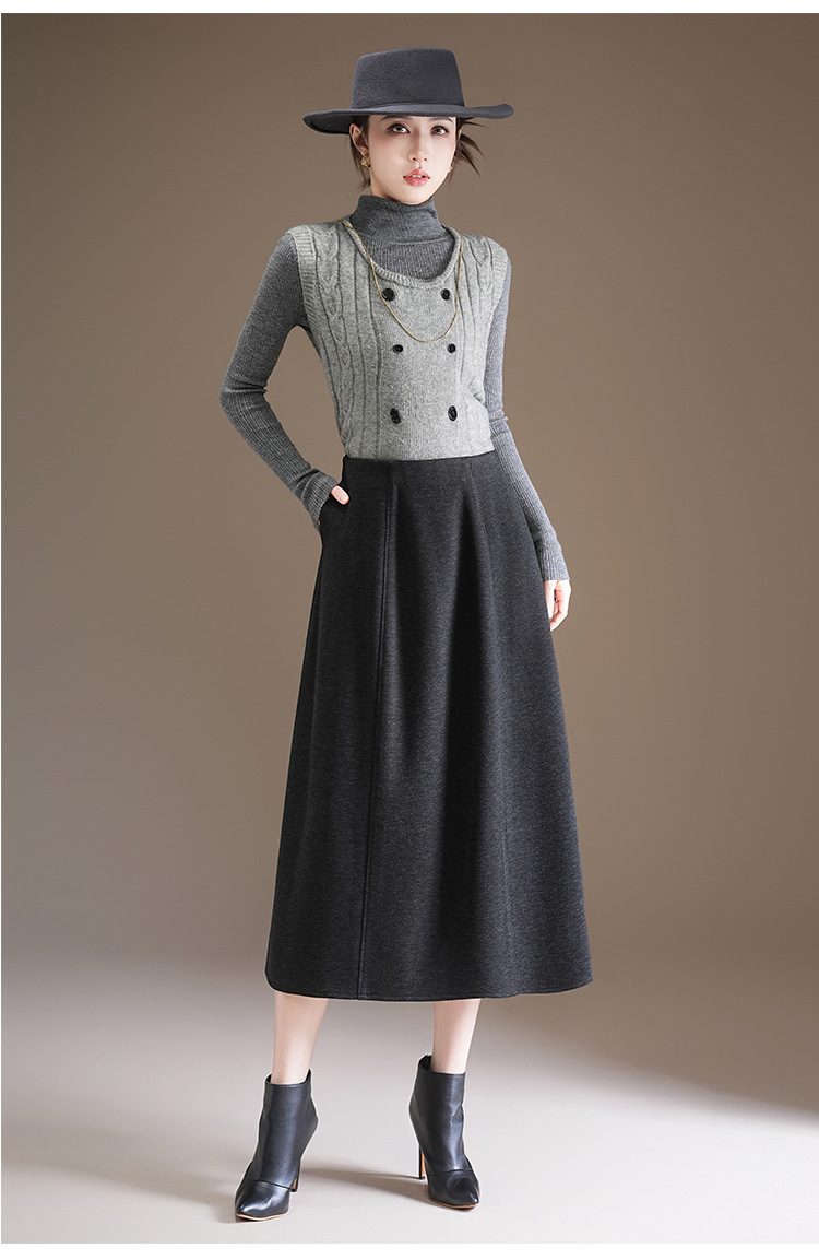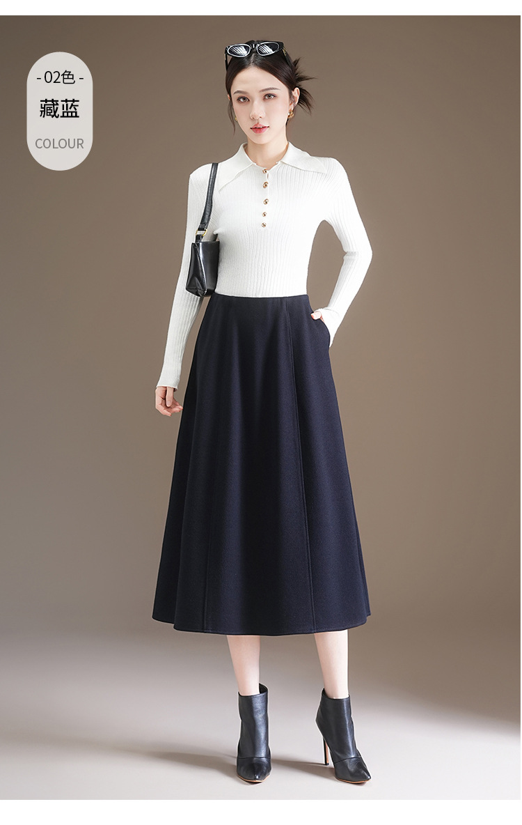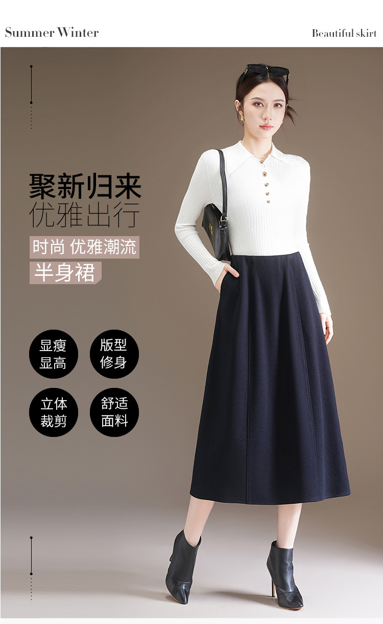 QYM 7108-Y简约休闲A字裙松紧高腰遮胯显瘦半身裙 商品图3