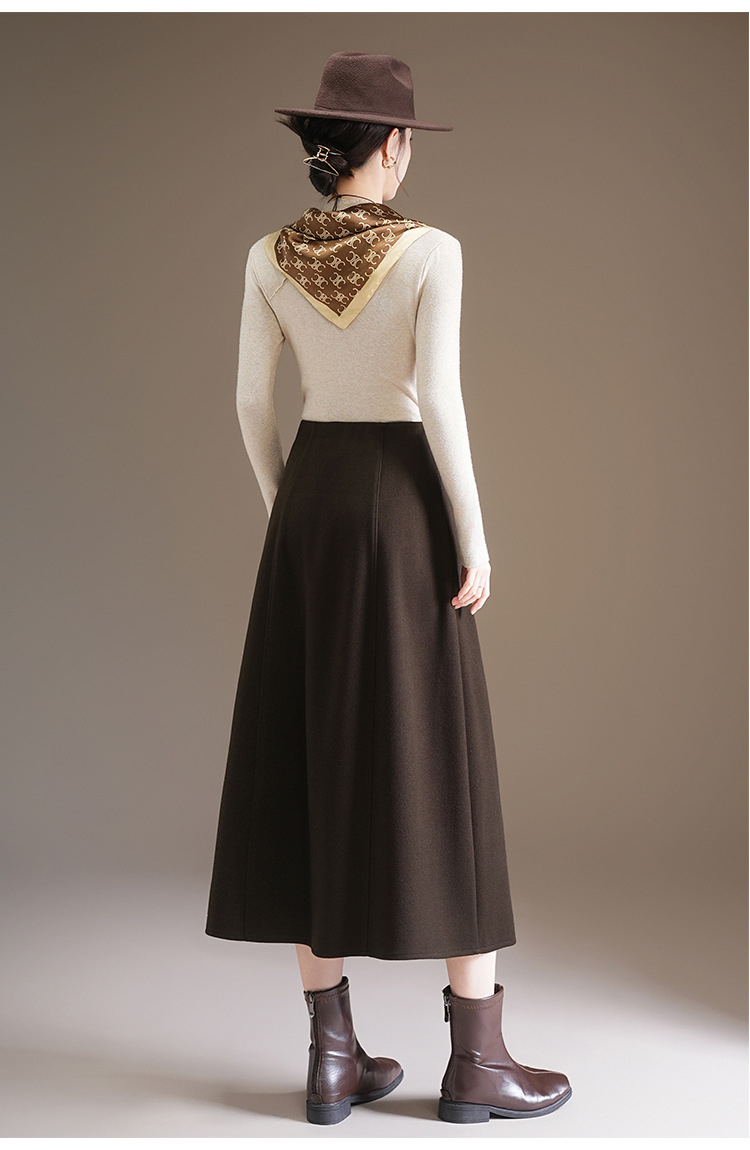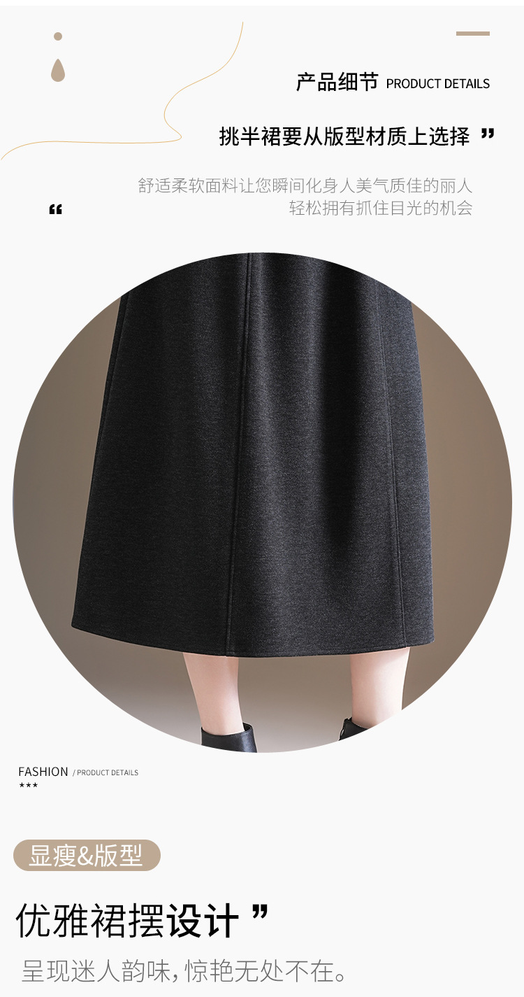 QYM 7108-Y简约休闲A字裙松紧高腰遮胯显瘦半身裙 商品图4