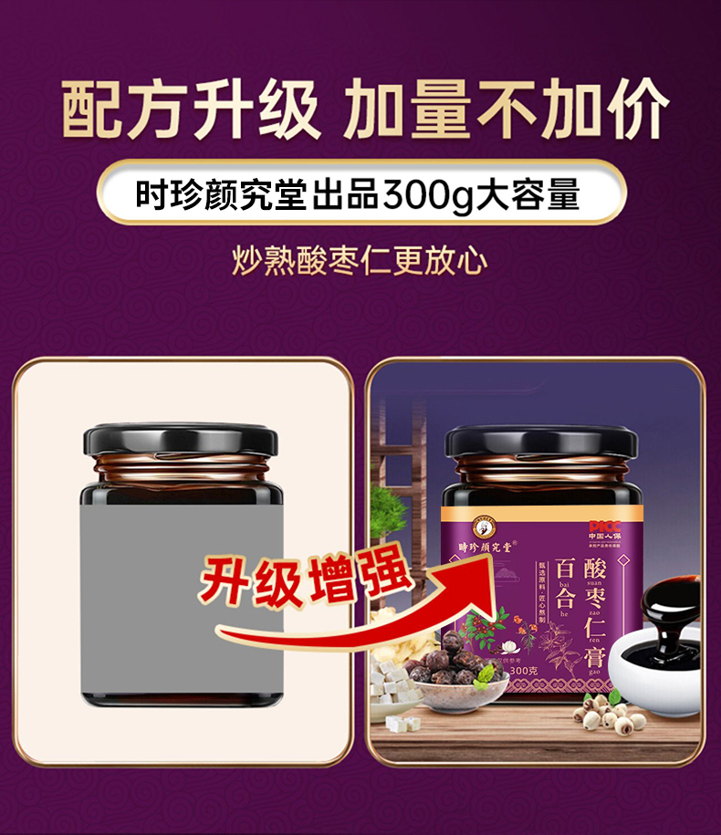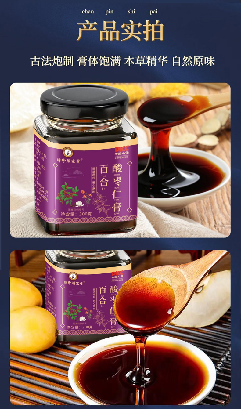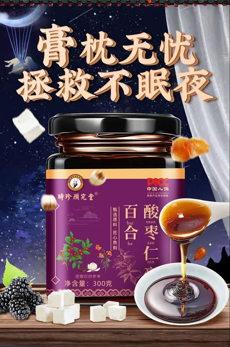 推荐款!!【胡维勤教授非遗传承 北京名仕医院院长联合传承指导亲研】源自1921年时珍颜究堂百合酸枣仁膏 安舒焦虑多梦易醒睡眠伴侣 多道工序古法熬膏 睡前来一杯好睡眠!300g/罐