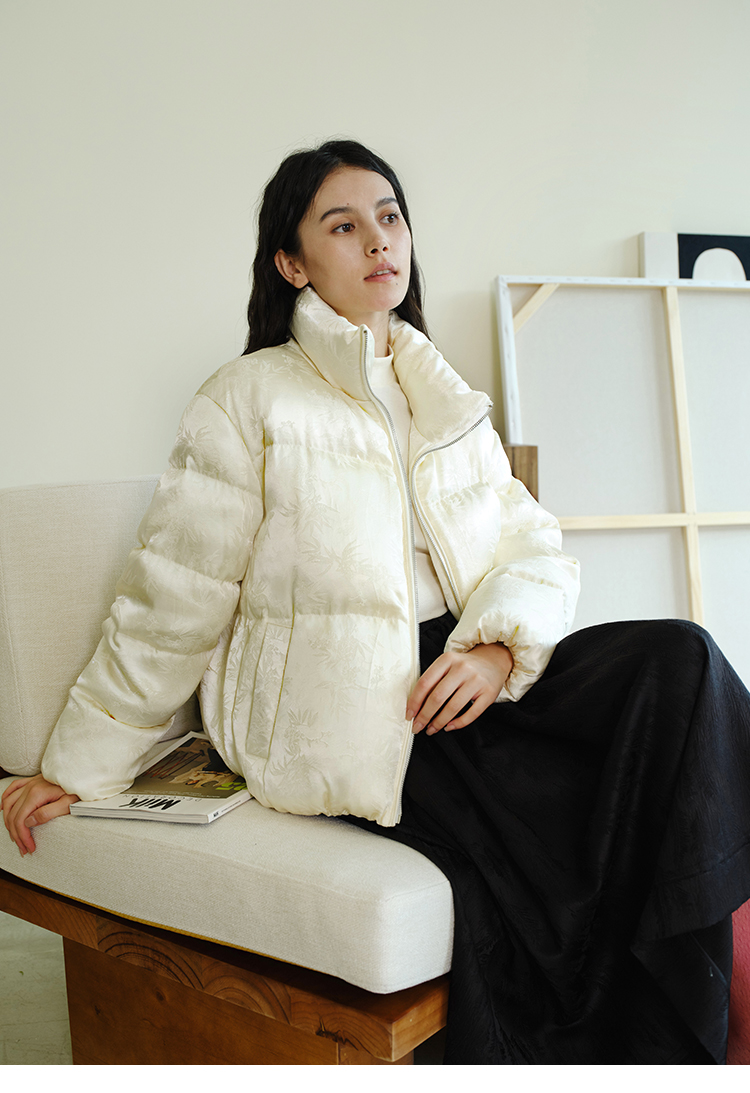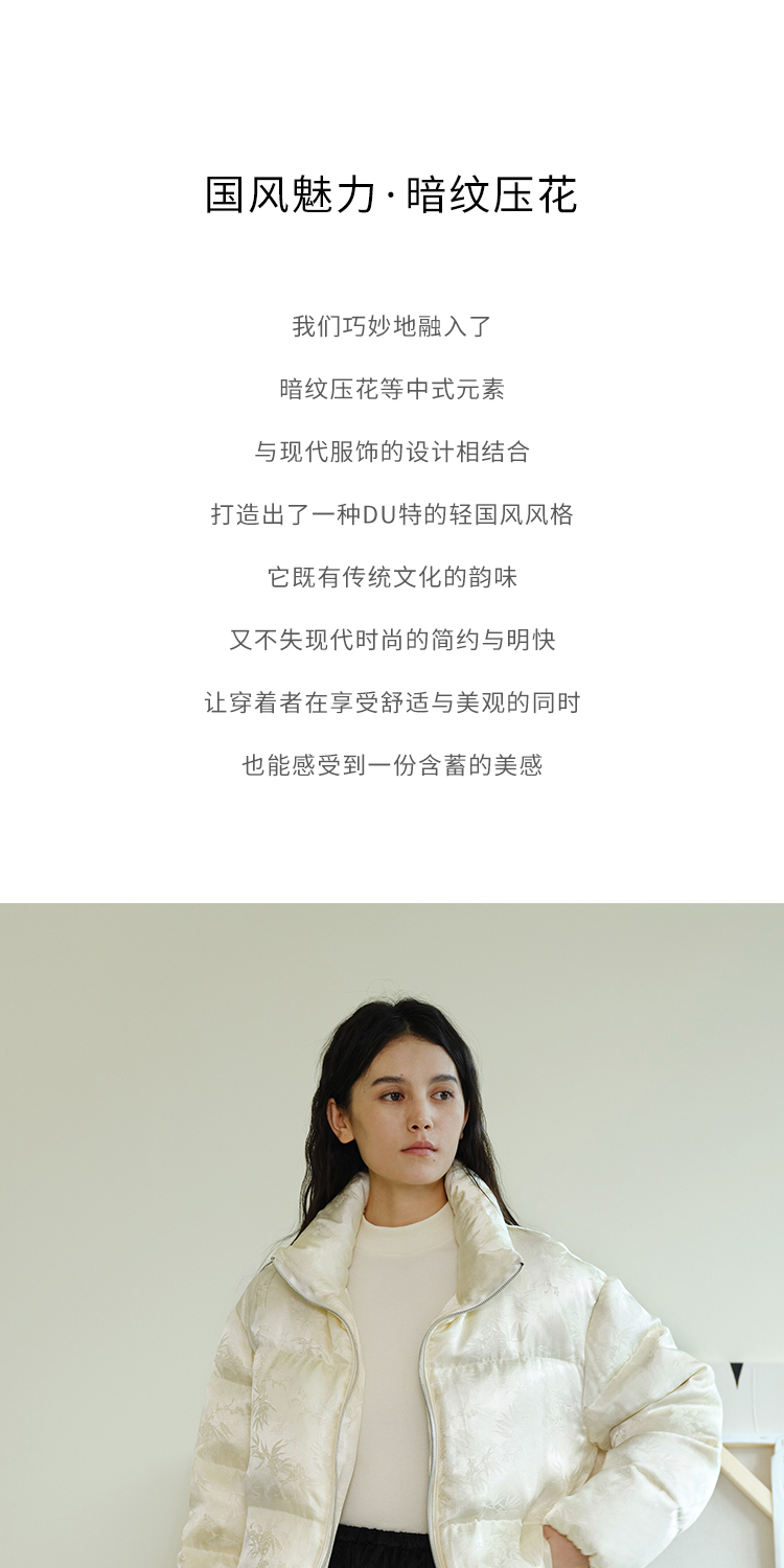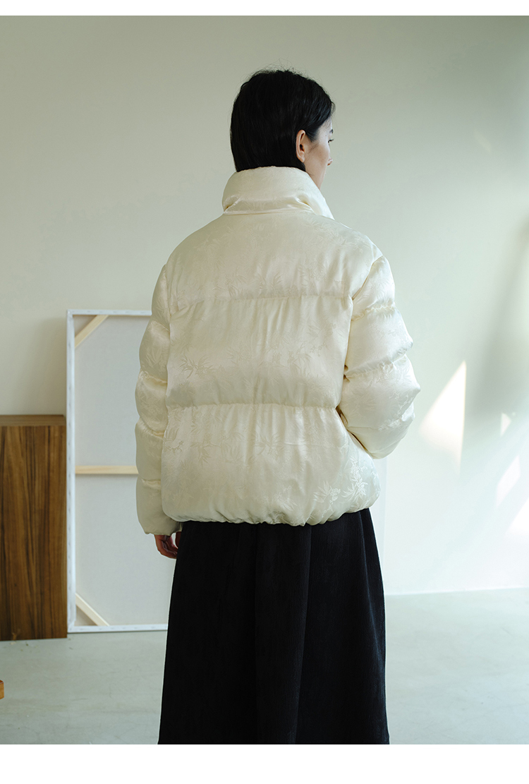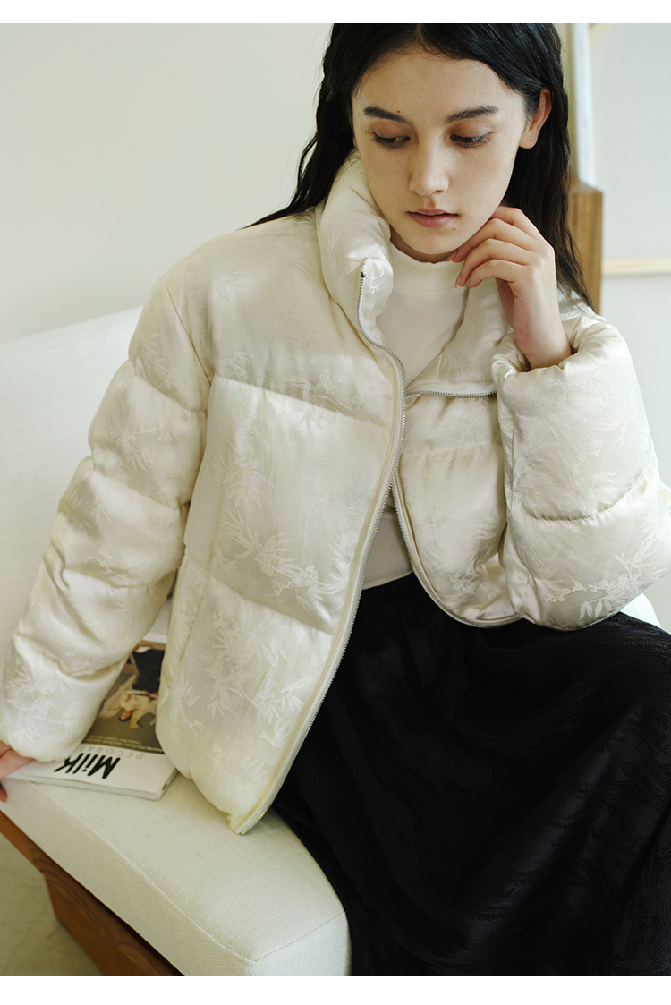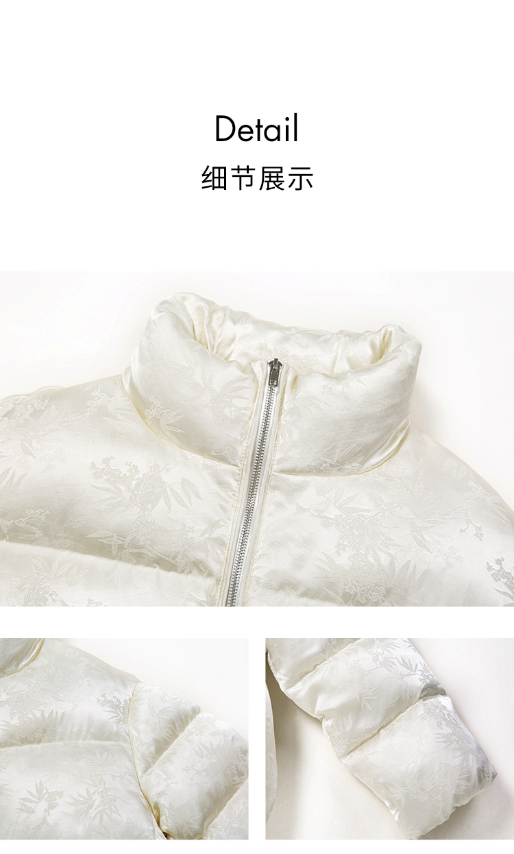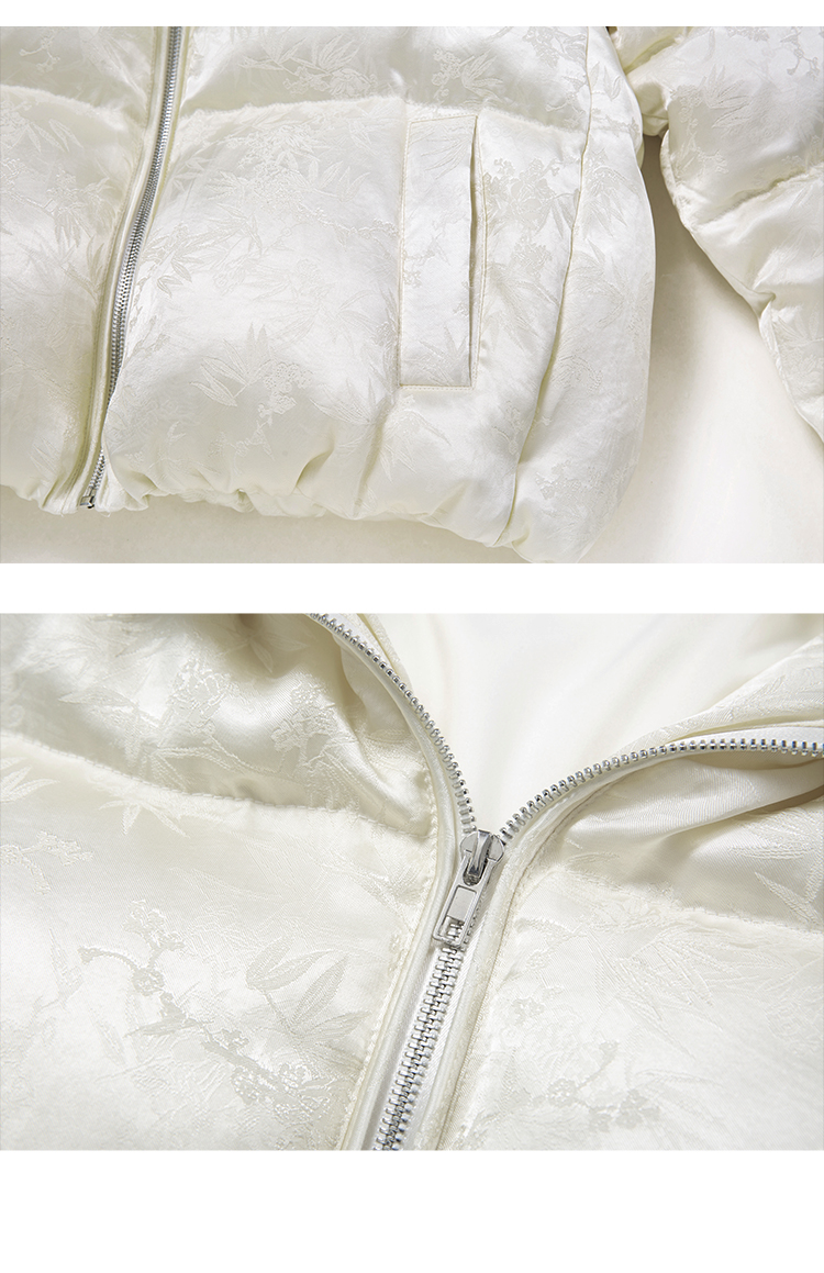 HeyDress新中式提花羽绒服女冬季短款白鸭绒暗纹压花保暖白色外套