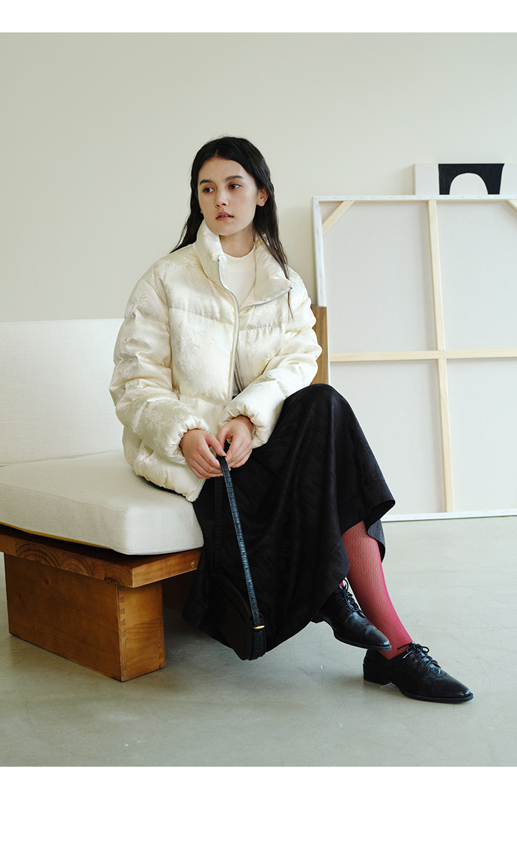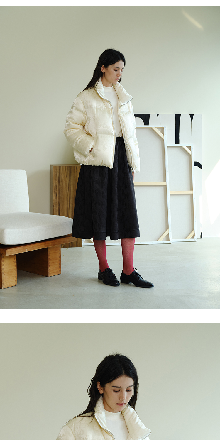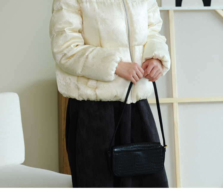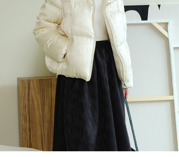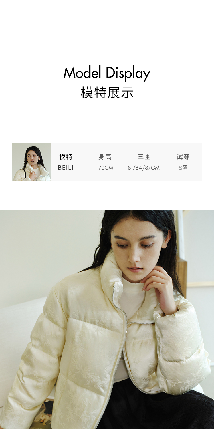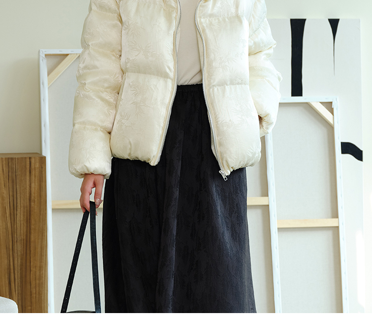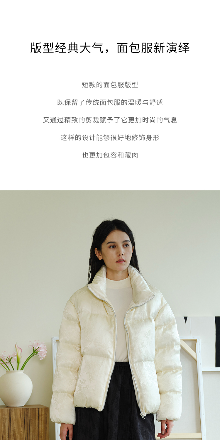 HeyDress新中式提花羽绒服女冬季短款白鸭绒暗纹压花保暖白色外套