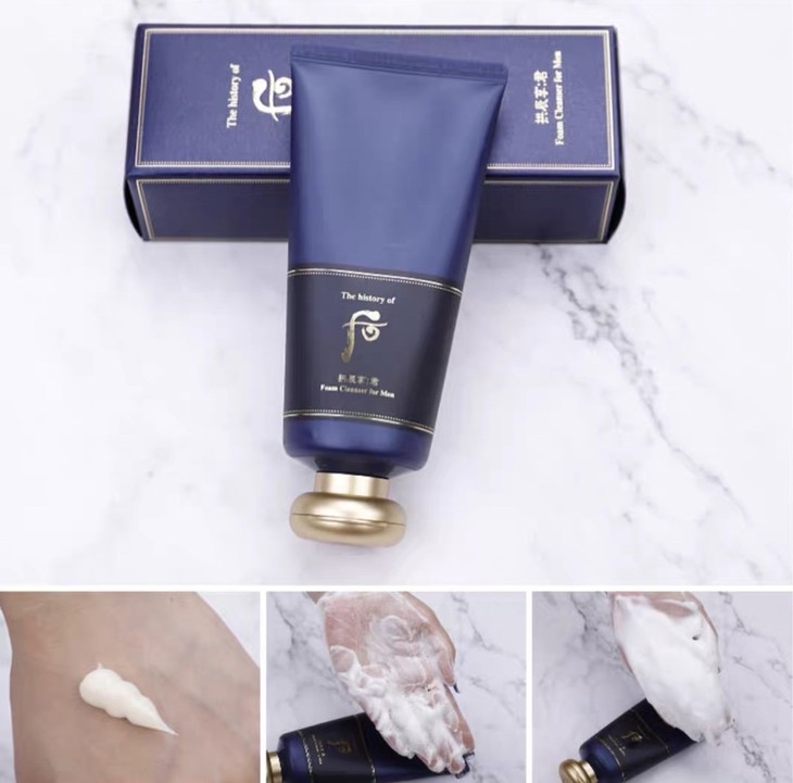 WHOO拱辰享男士洗面乳 180ml👍男士专用洁面,针对男士的肌肤问题专门研制的🙇。含有珍贵“铂金”成分,抗氧化效果特别好👏,同时里面配以生姜、甘草、丁香、大枣等“龙颜不老方”成分😎,以及补充元气的韩药处方,能够彻底清除皮肤毛孔内的老化物质和污垢💦,还能预防过敏,抑制多余的皮脂,还能帮助皮肤恢复弹性和美白🌟,是一款效果很全面的洁面!味道也很好闻,有种古龙香水的赶脚😘,给男票或老公来一只,相信他会喜欢~