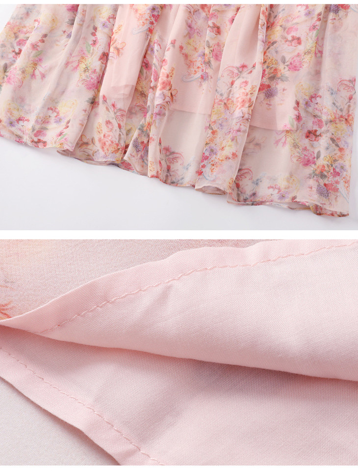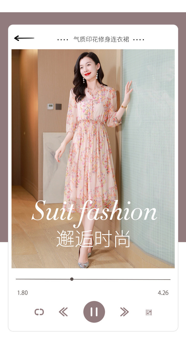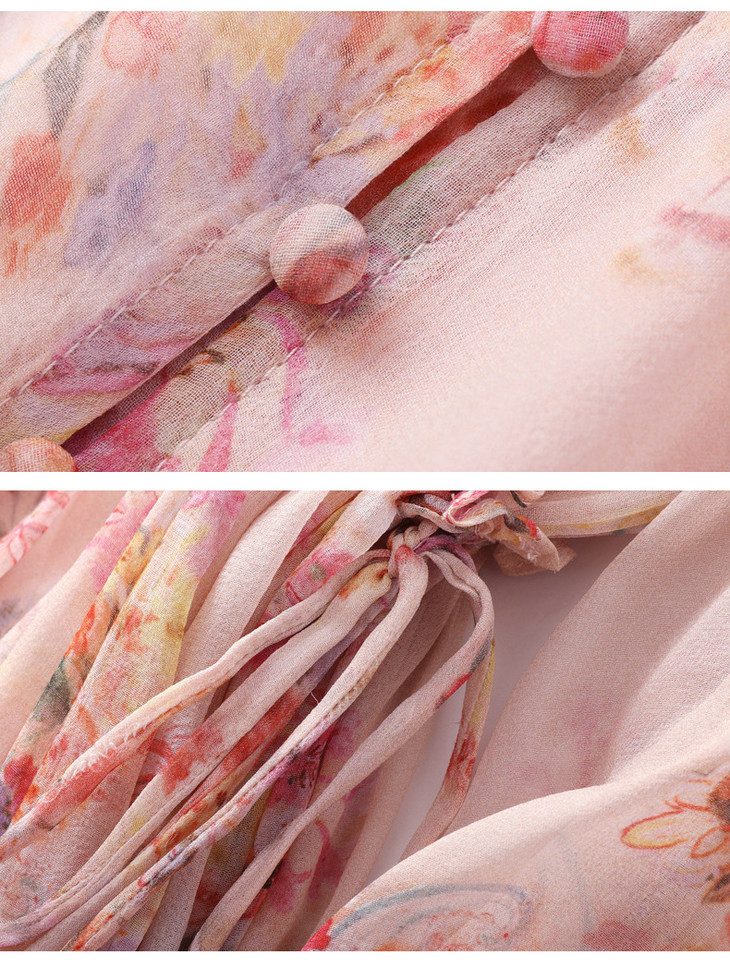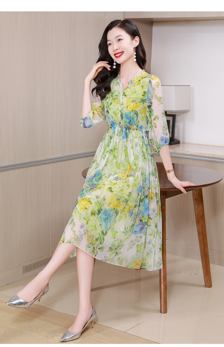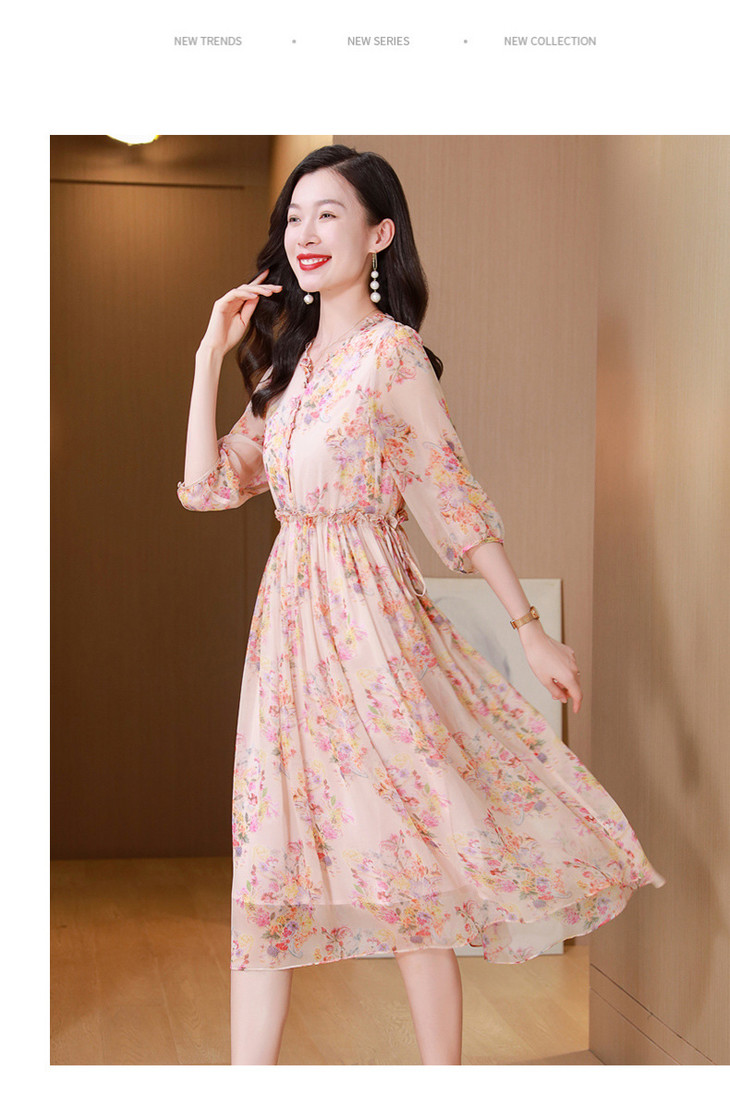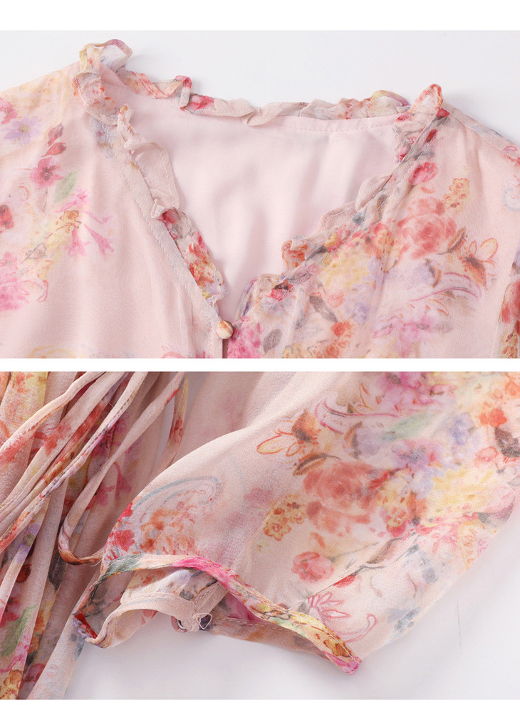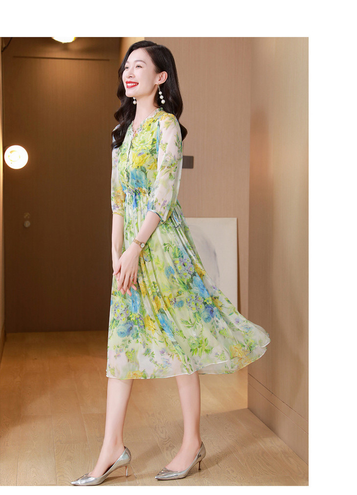 ASE重磅真丝2024夏季新款海边仙气风碎花调节腰九分袖V领真丝连衣裙