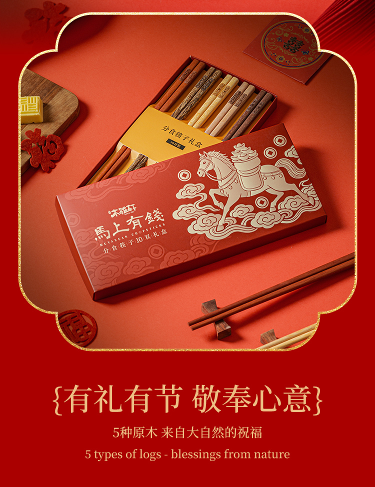 木雅轩 五木分食礼盒装 筷子健康分餐10双装