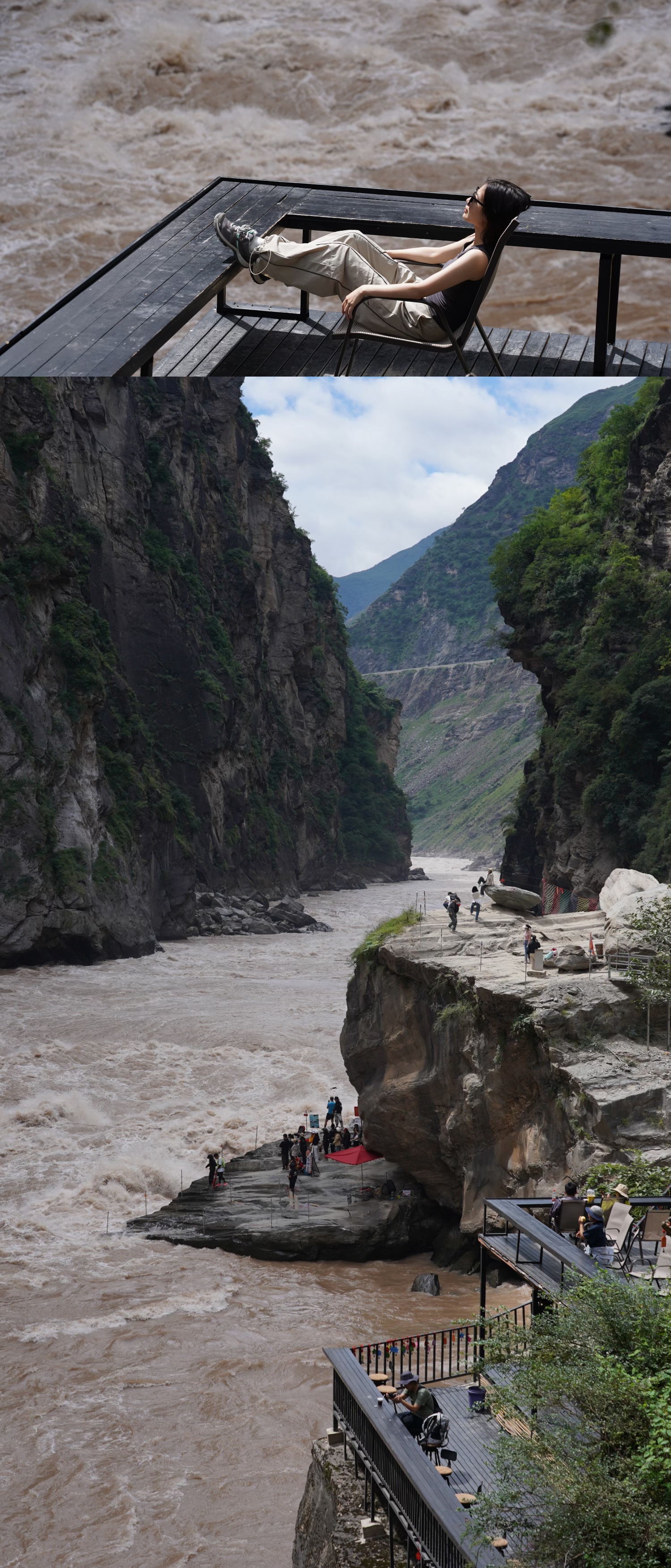 隔天从Halfway出发,继续穿行在哈巴雪山山腰之上,看对岸玉龙雪山群峰如聚,巍峨耸峙,而谷底金沙江水波涛如怒,奔涌不息。