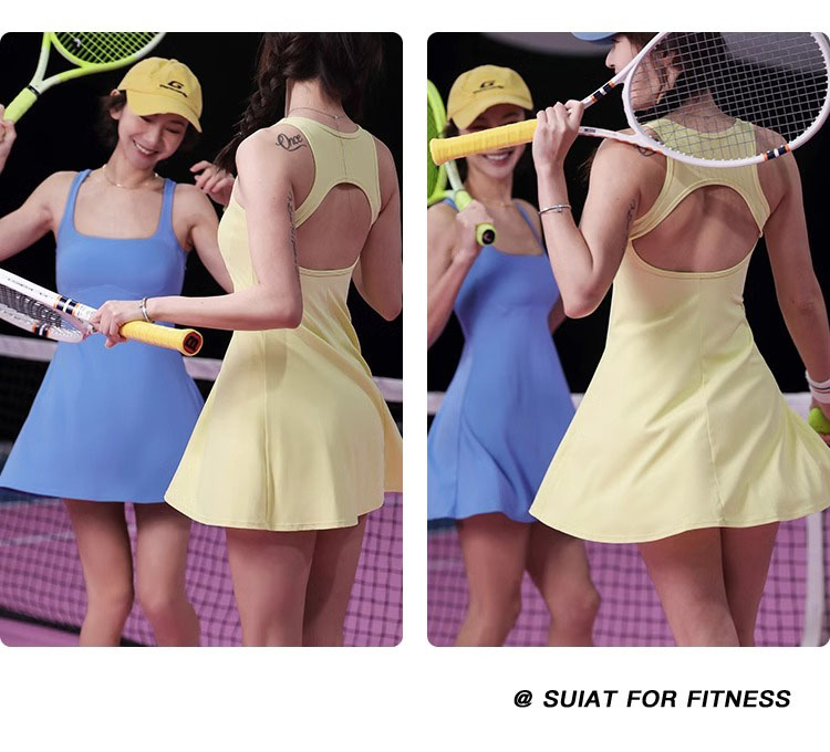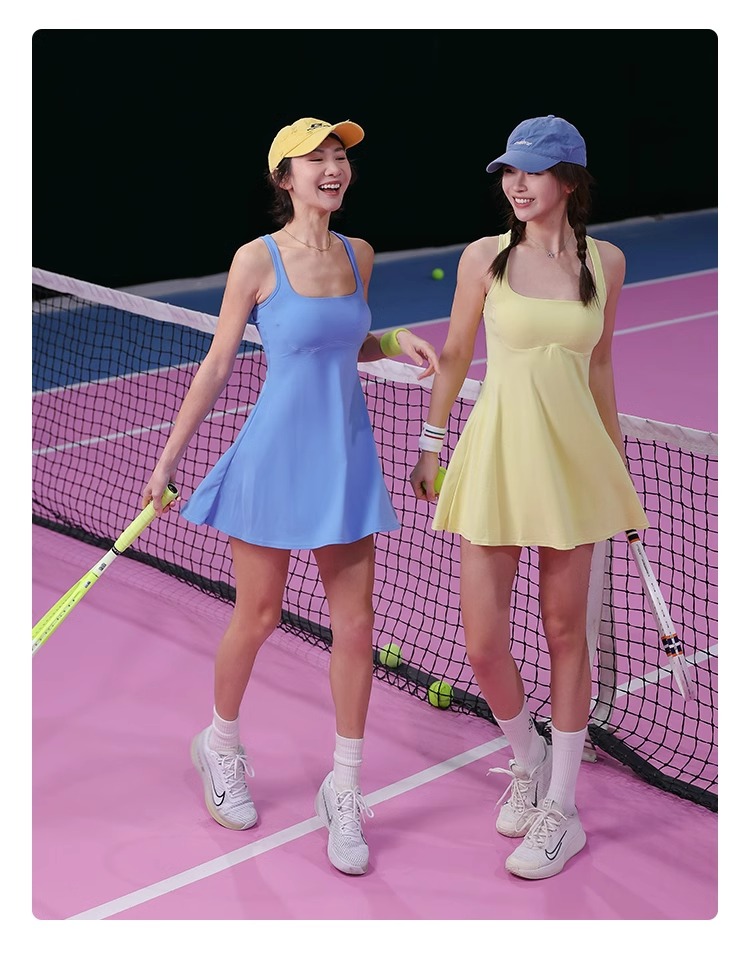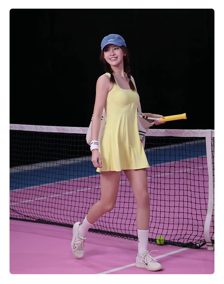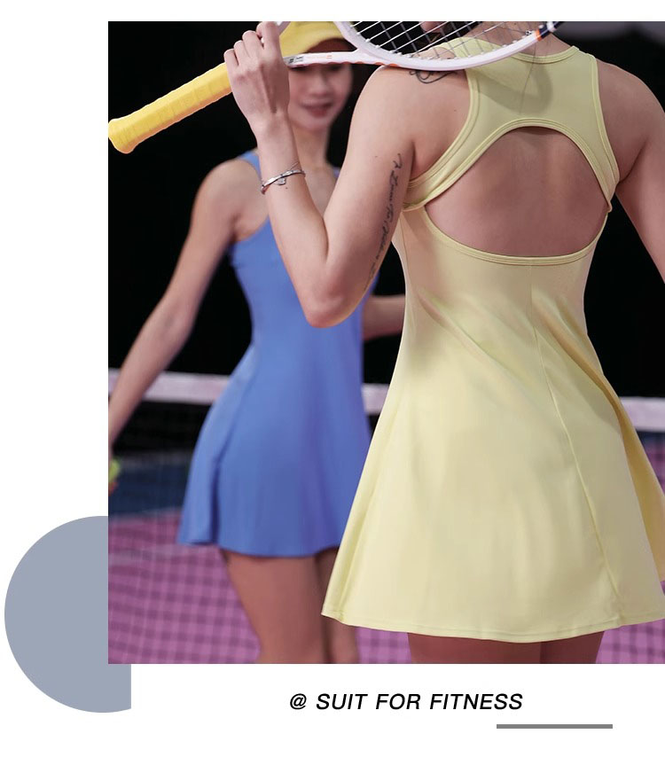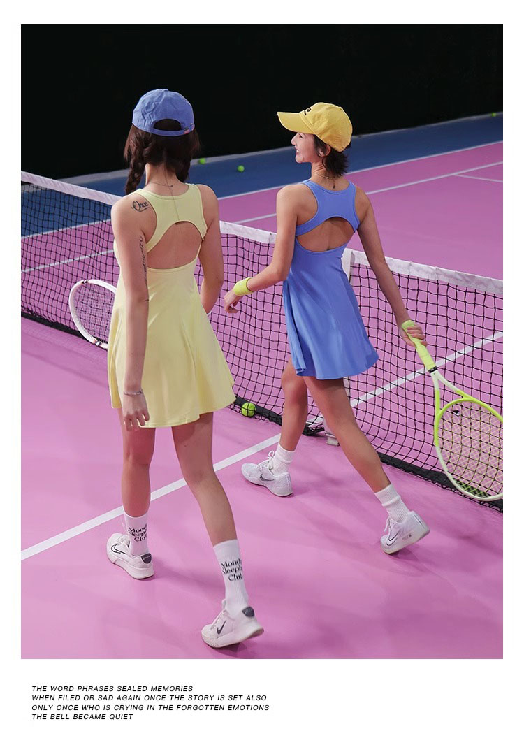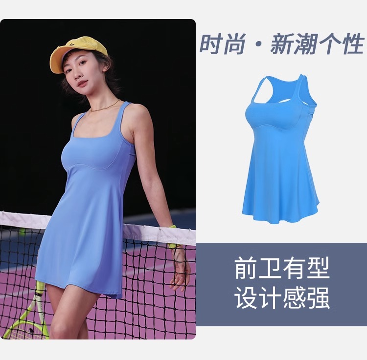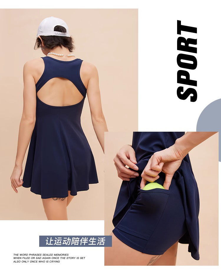 跃牌【禅语梵心】两件套裸感运动连衣裙美背防走光打底裤户外跑步健身网球裙YLT5176