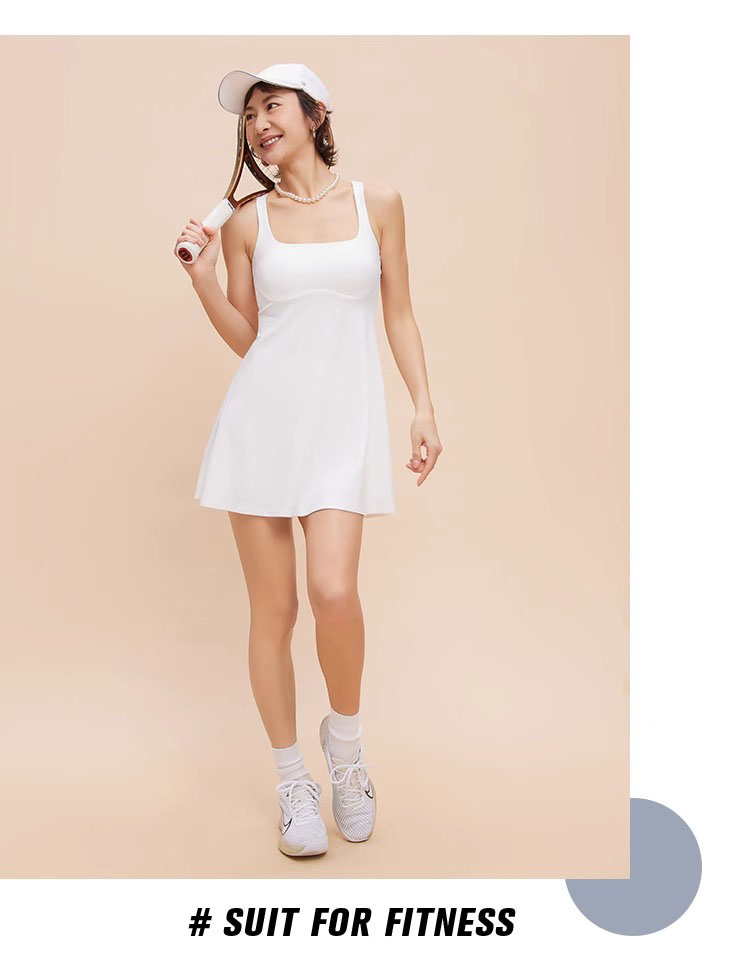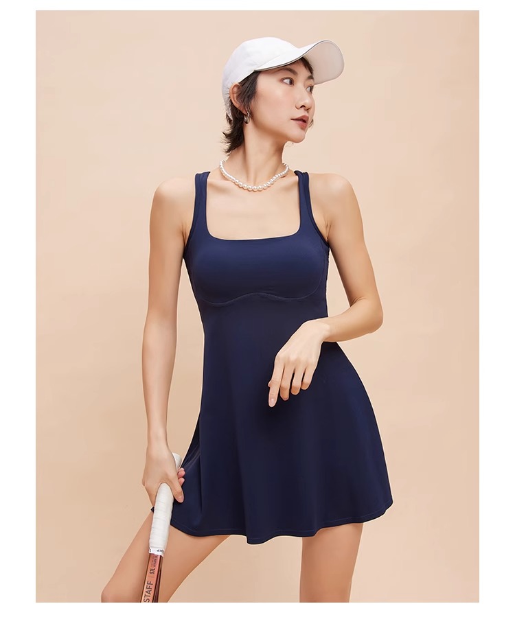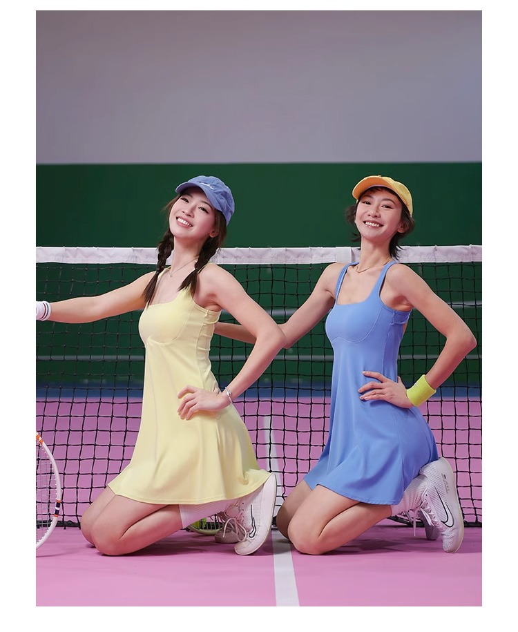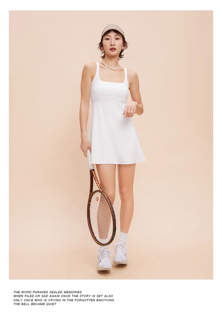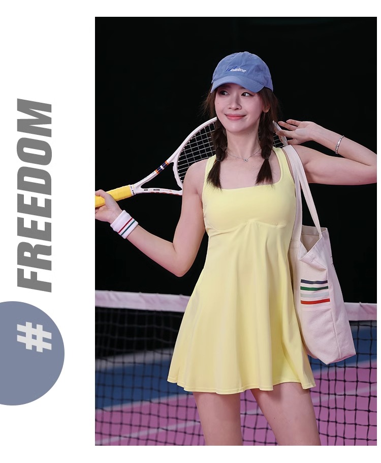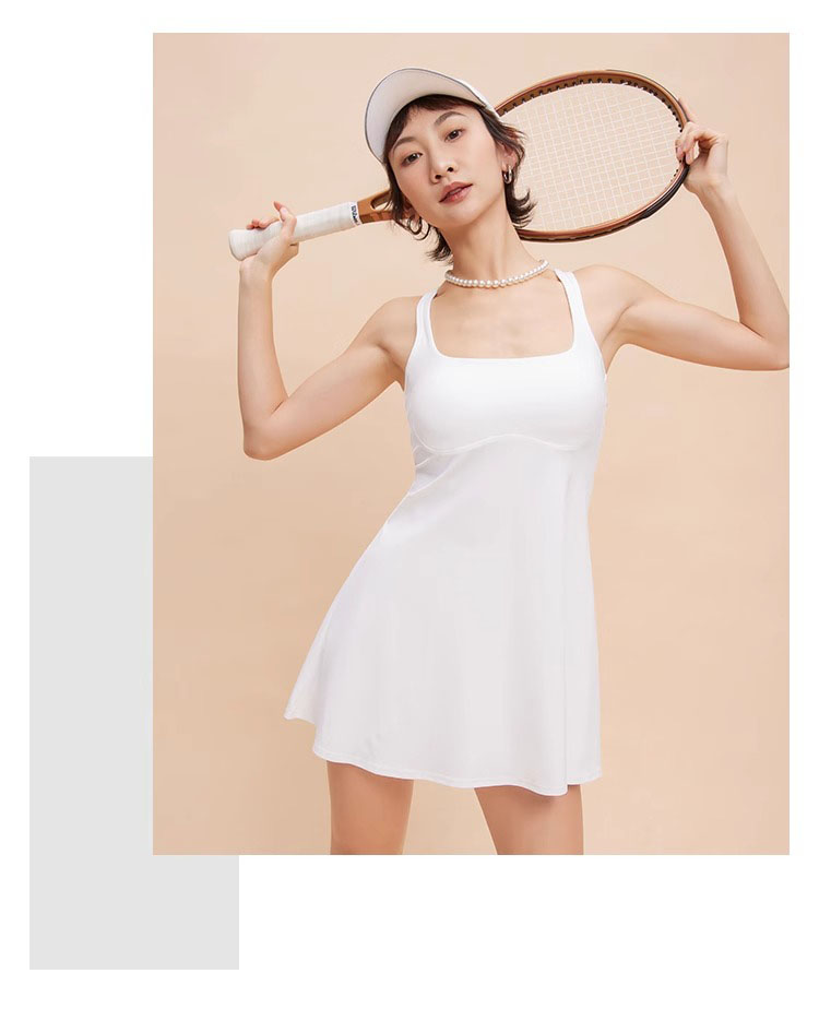 跃牌【禅语梵心】两件套裸感运动连衣裙美背防走光打底裤户外跑步健身网球裙YLT5176